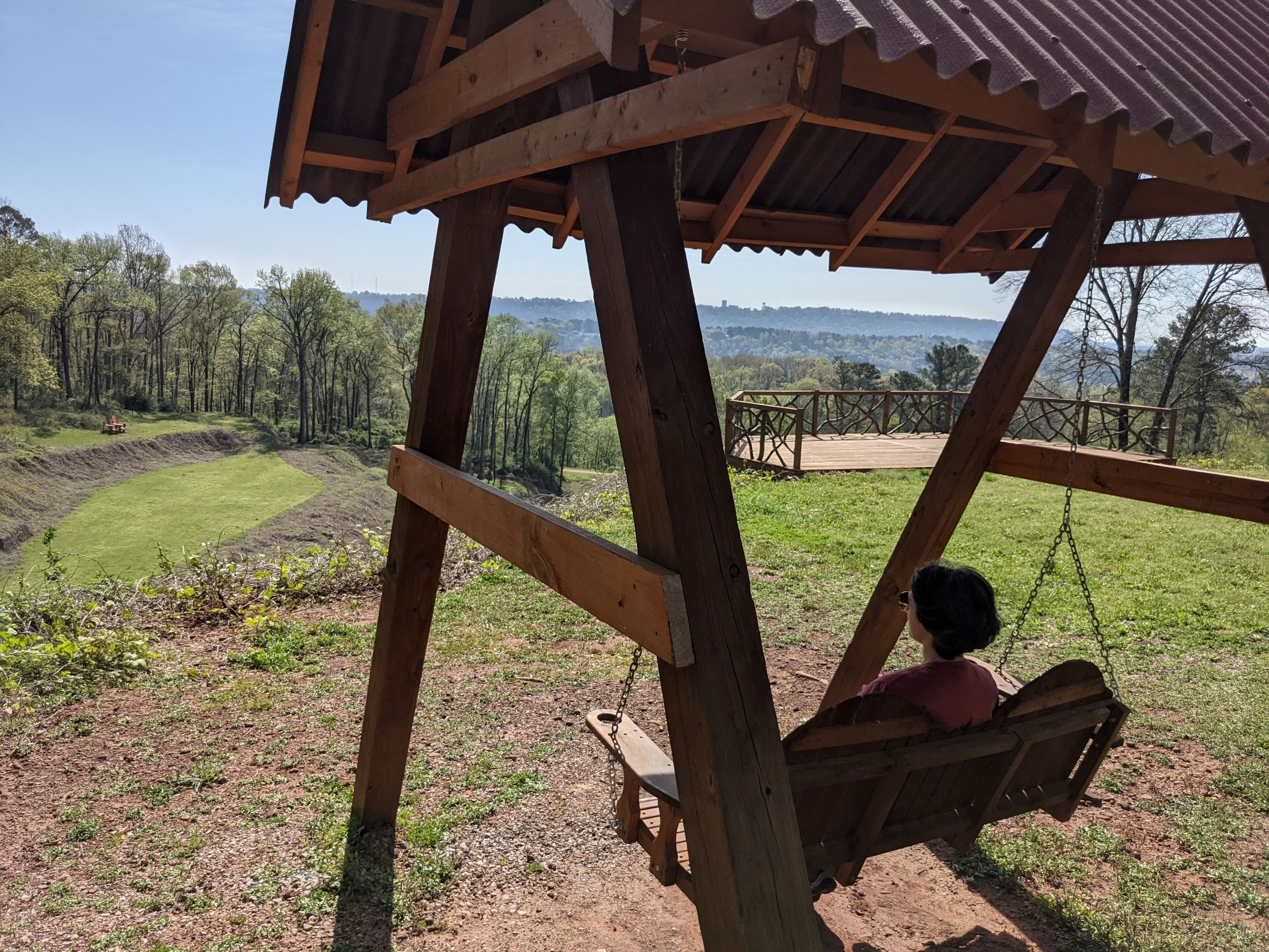 Like Moss Rock, Red Mountain Park is free and within city limits. It’s built around an old mining area and is a beautiful example of a community-building project that everyone can enjoy. As we drove up to the park’s Venice Road entry point, we could see the old mining houses and the poverty that still exists in Birmingham. Like the area, the trail began quite ugly and uninspiring but once we got to the heart of the woods it opened up beautifully. The EBSCO overlook was very peaceful, with an expansive city viewscape and giant adirondack chairs. There was a young couple sunbathing in one of the chairs and blowing bubbles. I told Eric “if this were in Germany, this place would be covered by naked sunbathers.” And I’d probably join in, because it felt like that kind of place where you should strip down to your basic humanity.