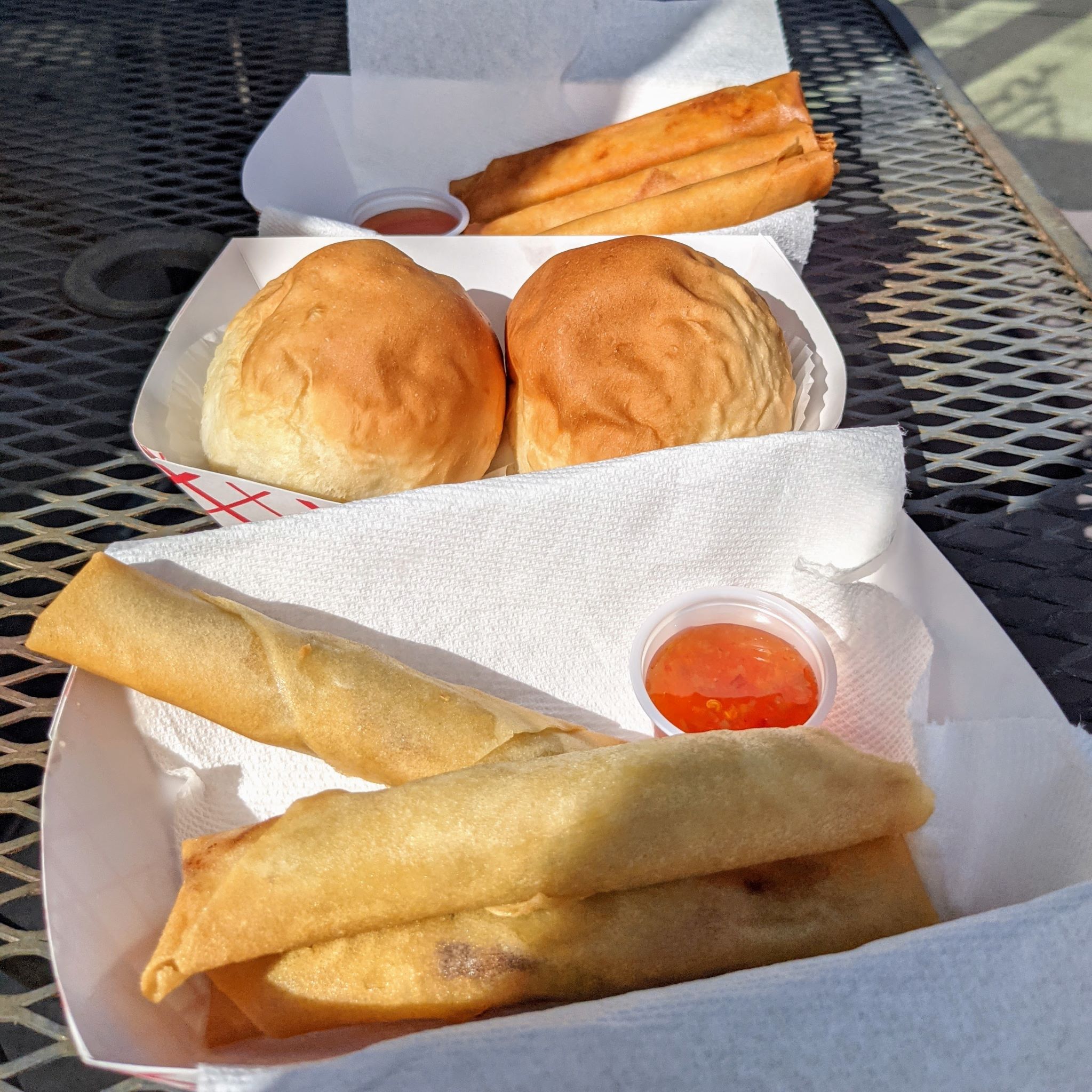 But I digress. Let me tell you about the lovely Camano Island. Sandwiched between the mainland and the much larger Whidbey Island, Camano is one of the easier Puget Sound islands to visit because it doesn’t require a ferry. It doesn’t have much in terms of restaurants, but that was fine by us because we had our own picnic lunch and we found a great place to pick up snacks. Hidden in a strip of storage buildings tucked away in farmland on the northern shore was a Filipino catering business called Cristy’s Lumpia. They’re mostly a catering and takeout service but they did have one small table outside and were great in helping us choose something that wouldn’t take too long to cook. They keep a freezer full of items that they just heat up. We tasted our first lumpia (similar to a taquito) and humbao (sweet bun with sweet meat). We noticed locals stopping next door to pick up liquid refreshment at Ale Spike brewery to go with their lumpia.