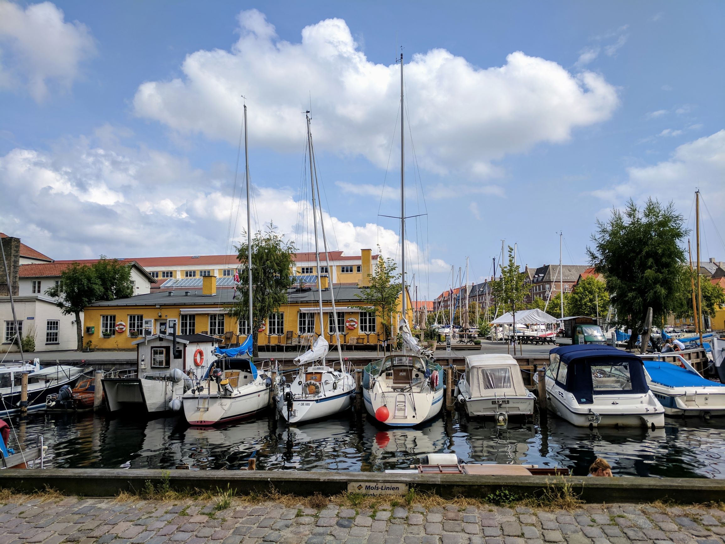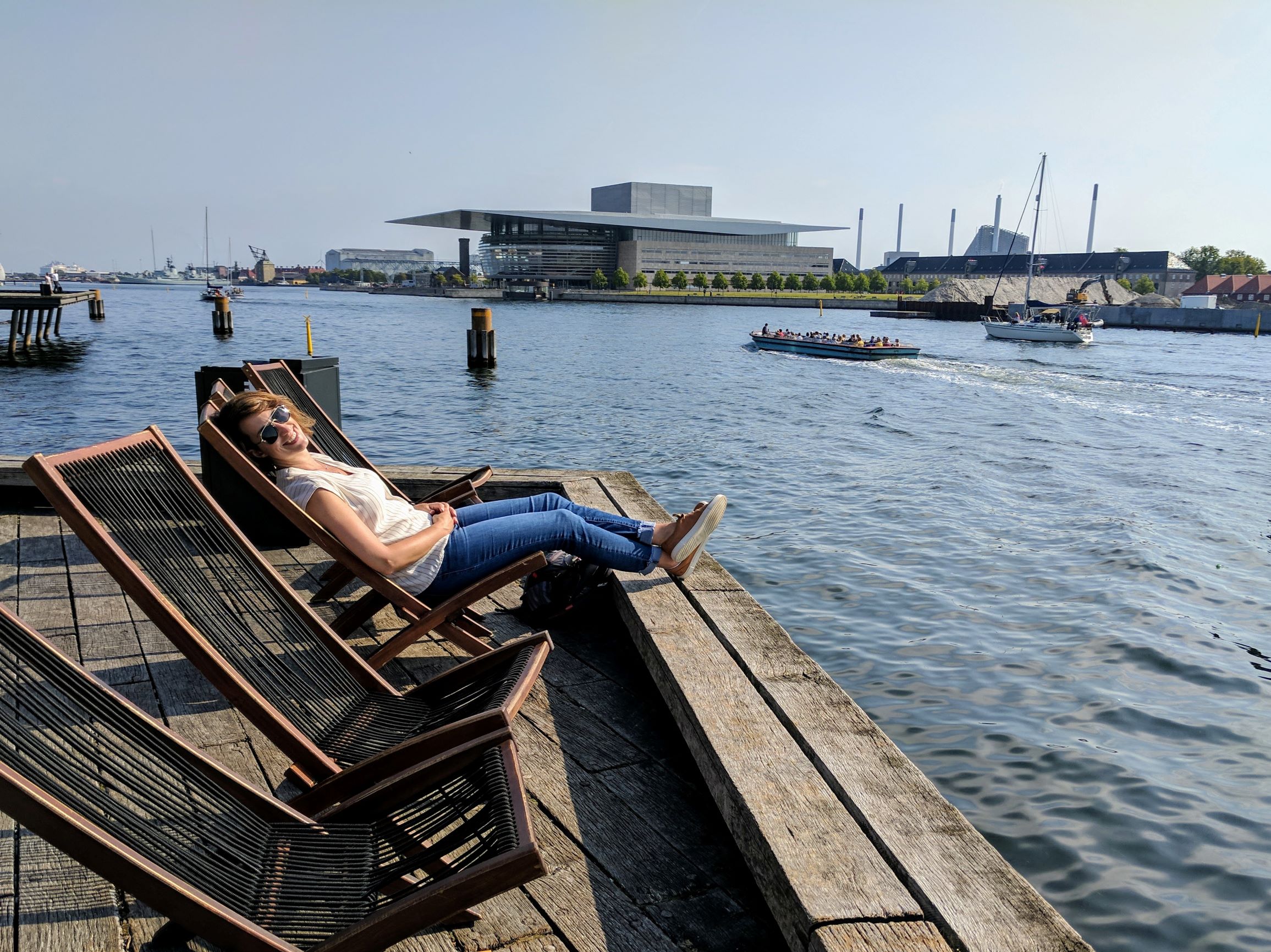 Nyhavn may be where all the grand buildings and the royals are, but just one block away along the river is where you want to be! It was a sunny day when we were there, and all along the river we could see people sunbathing. The city had lounge chairs in some places and I was lucky enough to claim one early in the day, but most people just laid out on the concrete or wooden decks.