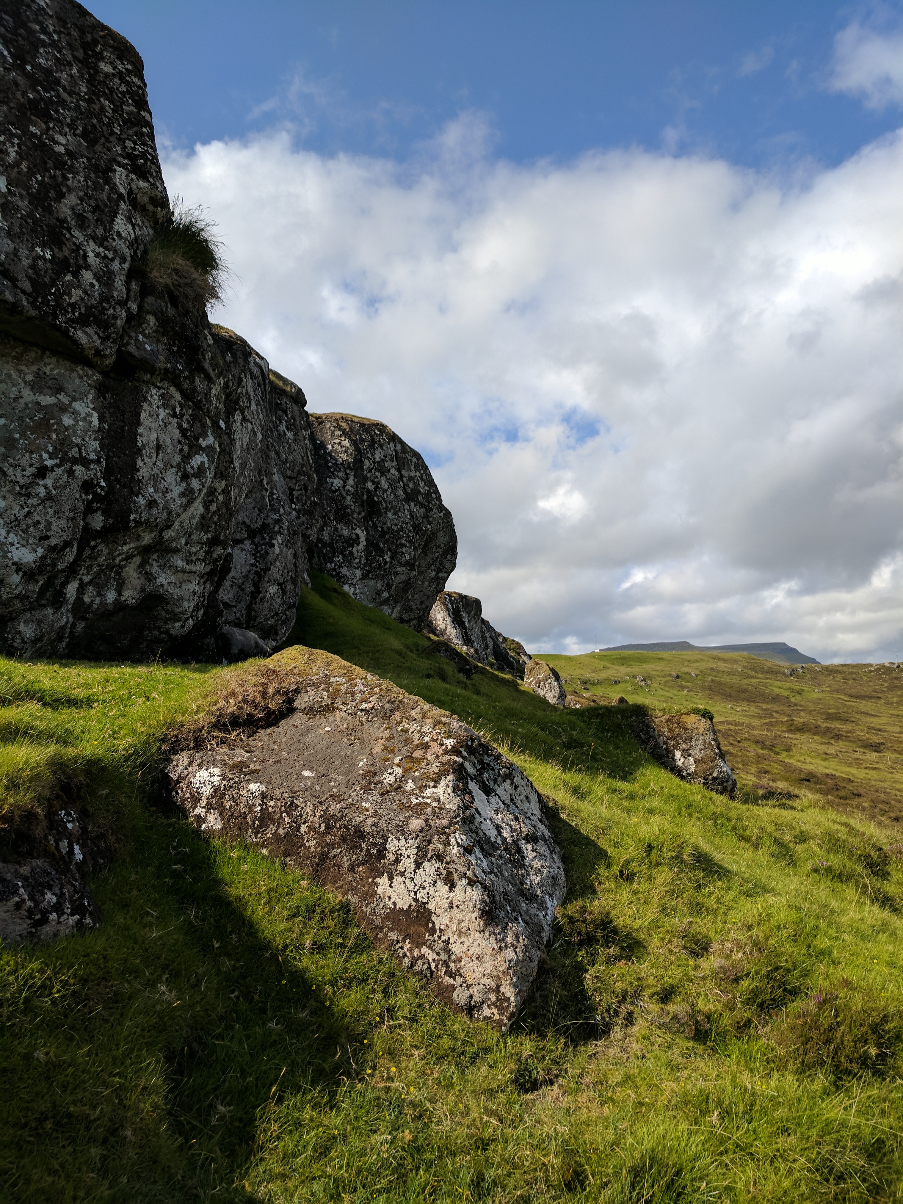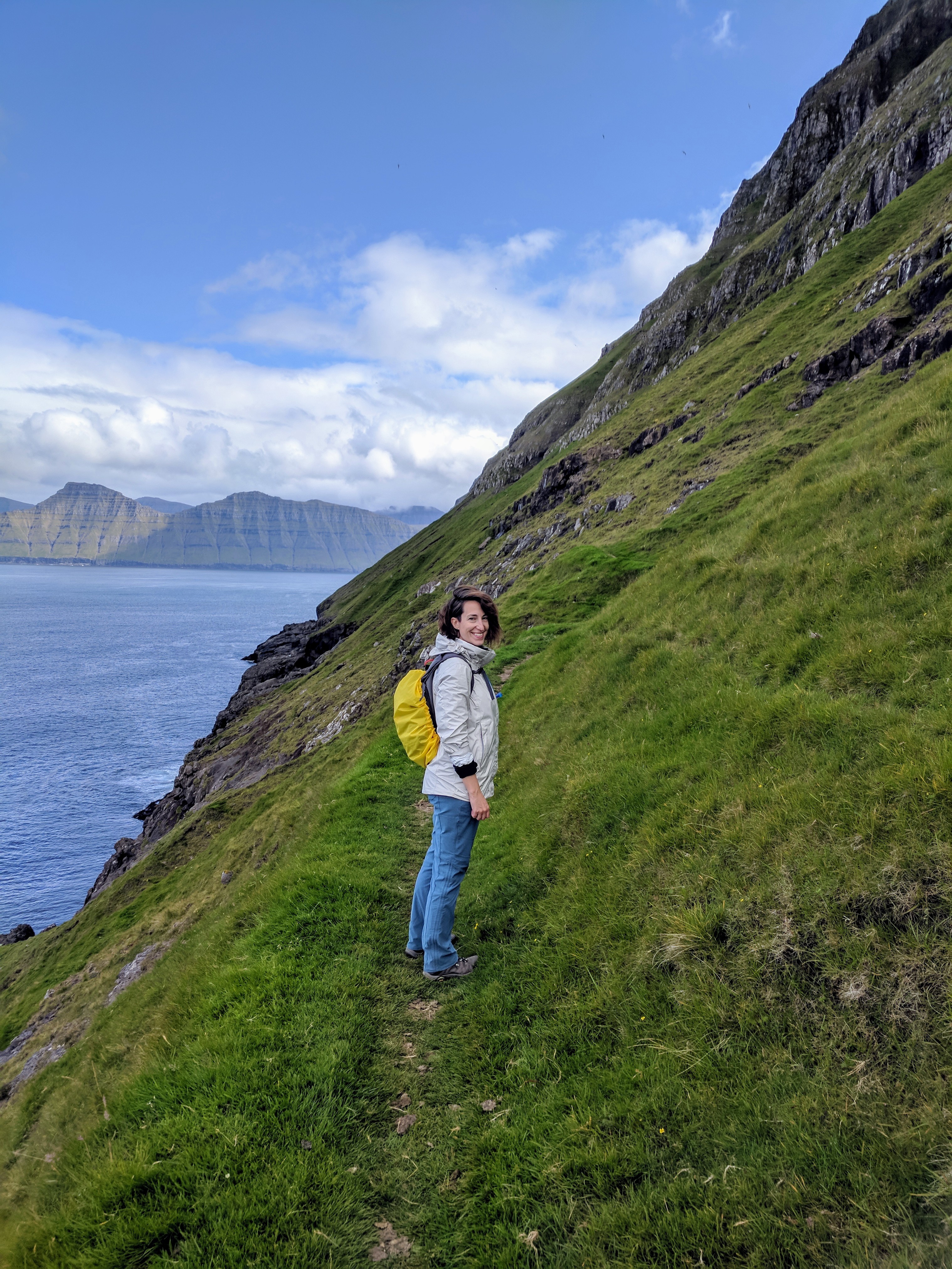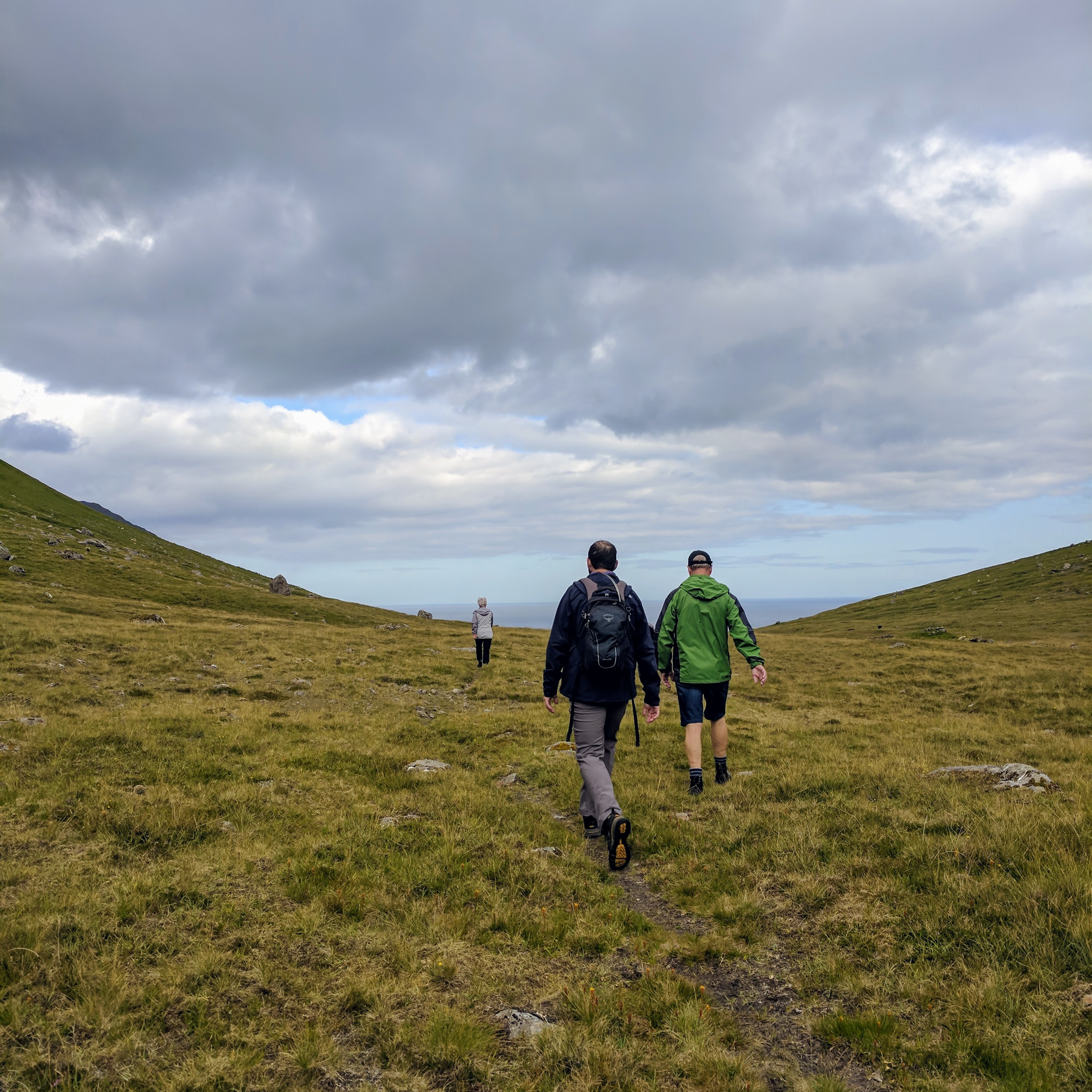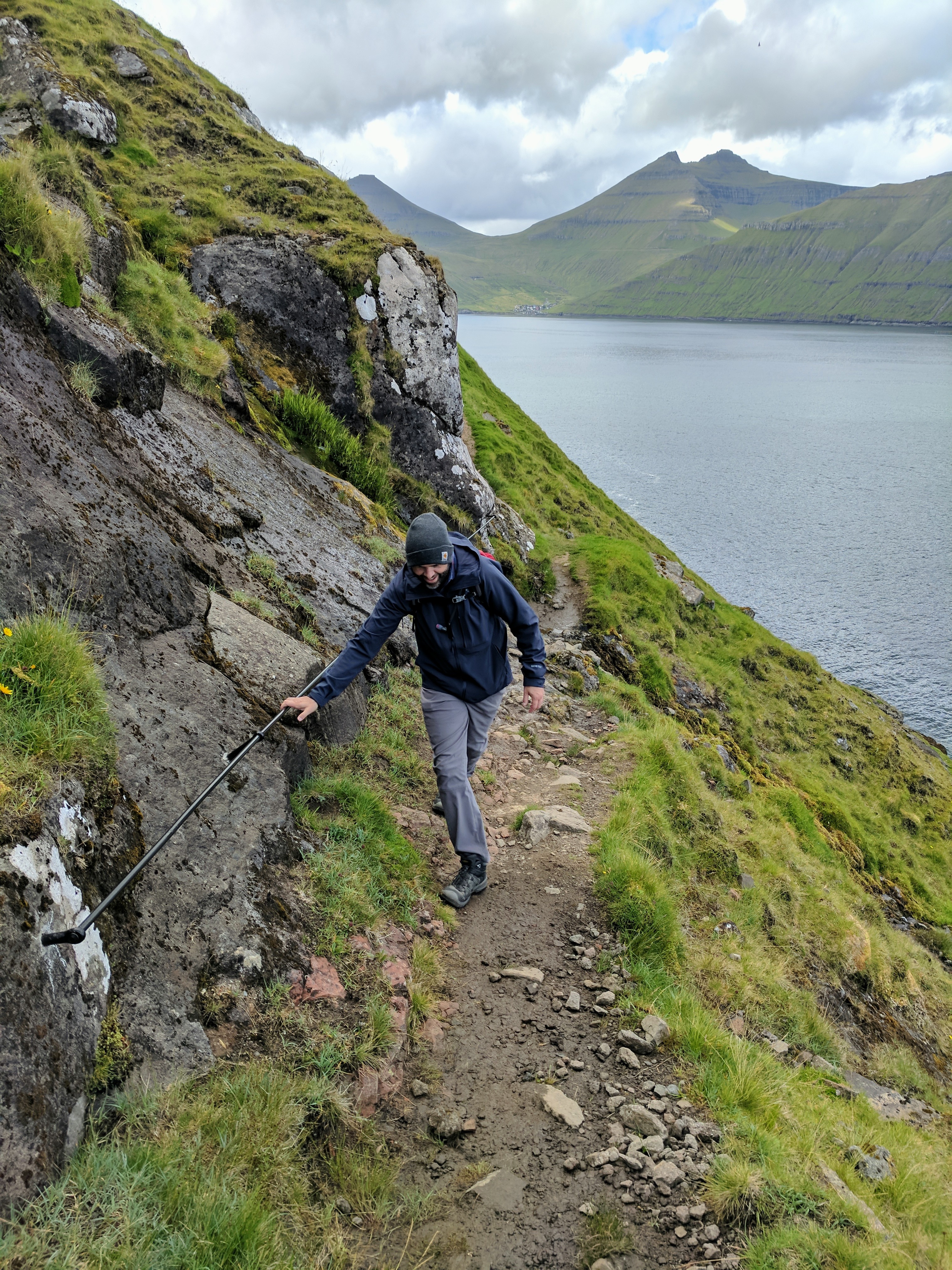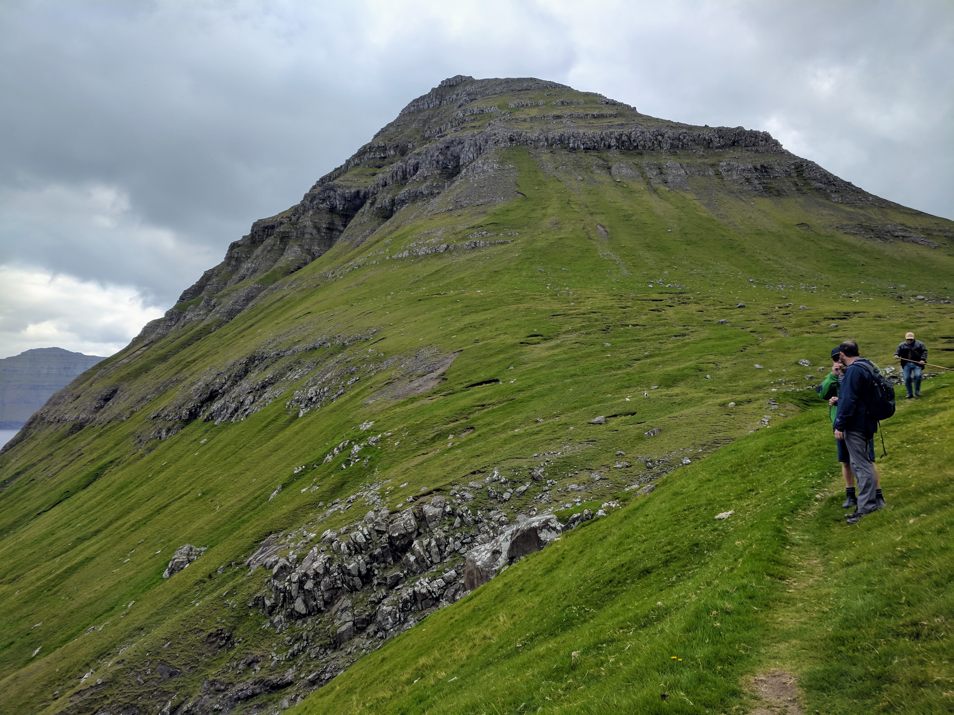 But the angels shone down upon us that day for three smiling faces appeared out of nowhere with their walking sticks. The woman and her brother were native to Eysturoy, and her husband was from Copenhagen. The husband was retired from the Air Force and VERY chatty. They didn’t seem concerned about trails, so we followed along with them up the hill. We chatted about hurricanes and commiserated on America’s measly vacation policies. The husband had vertigo and so could not do the hike around the mountain, but they watched to make sure that we made it safely along the difficult part of the trail and checked to make sure that we had a cell phone. It was adorable. The brother was using an old rake handle for his hiking stick. Once again, I was reminded that hiking doesn’t have to be complicated. It’s as simple as walking with some sort of destination in mind. No fancy REI equipment necessary and if you wander a little bit, even better!