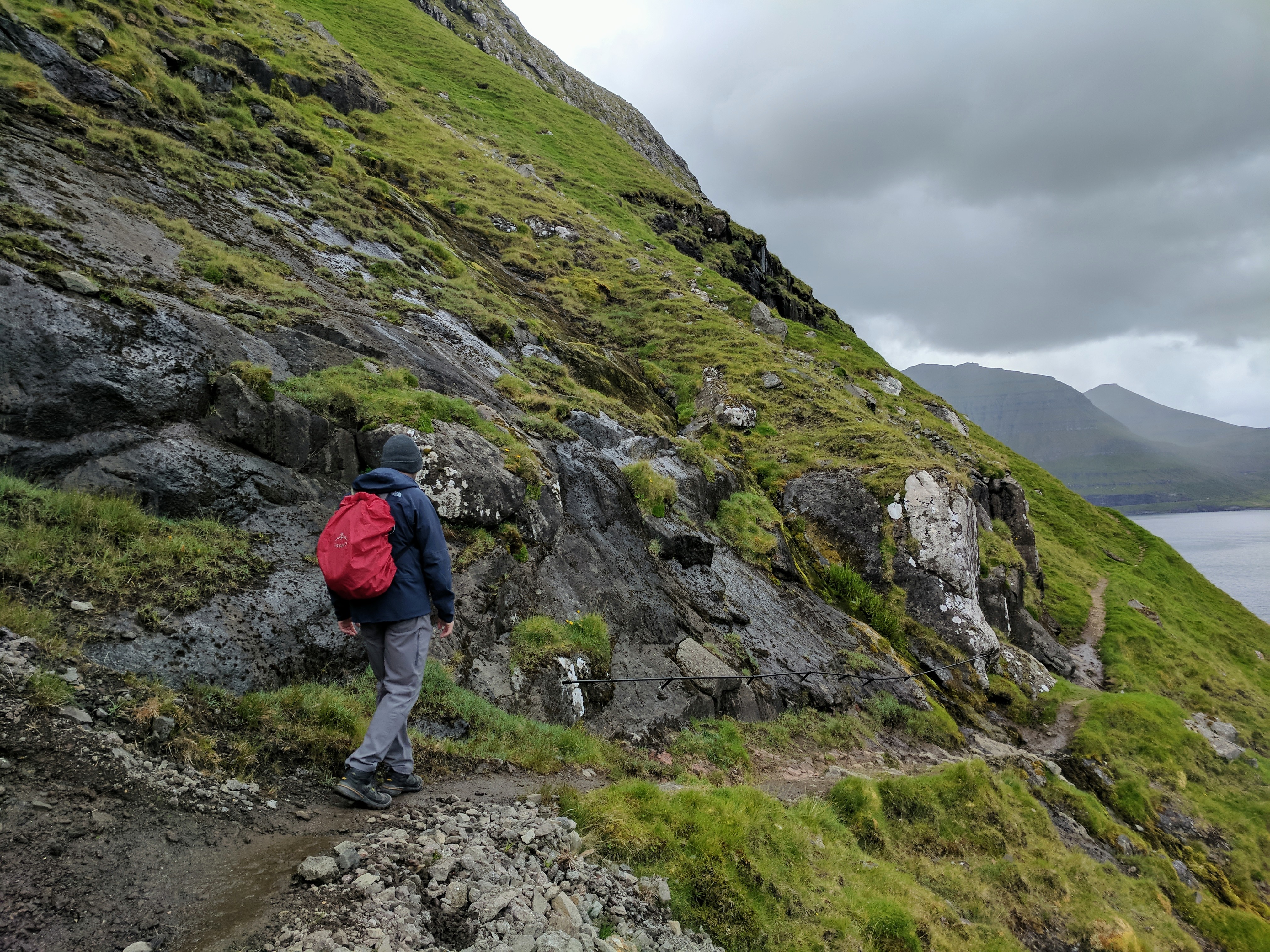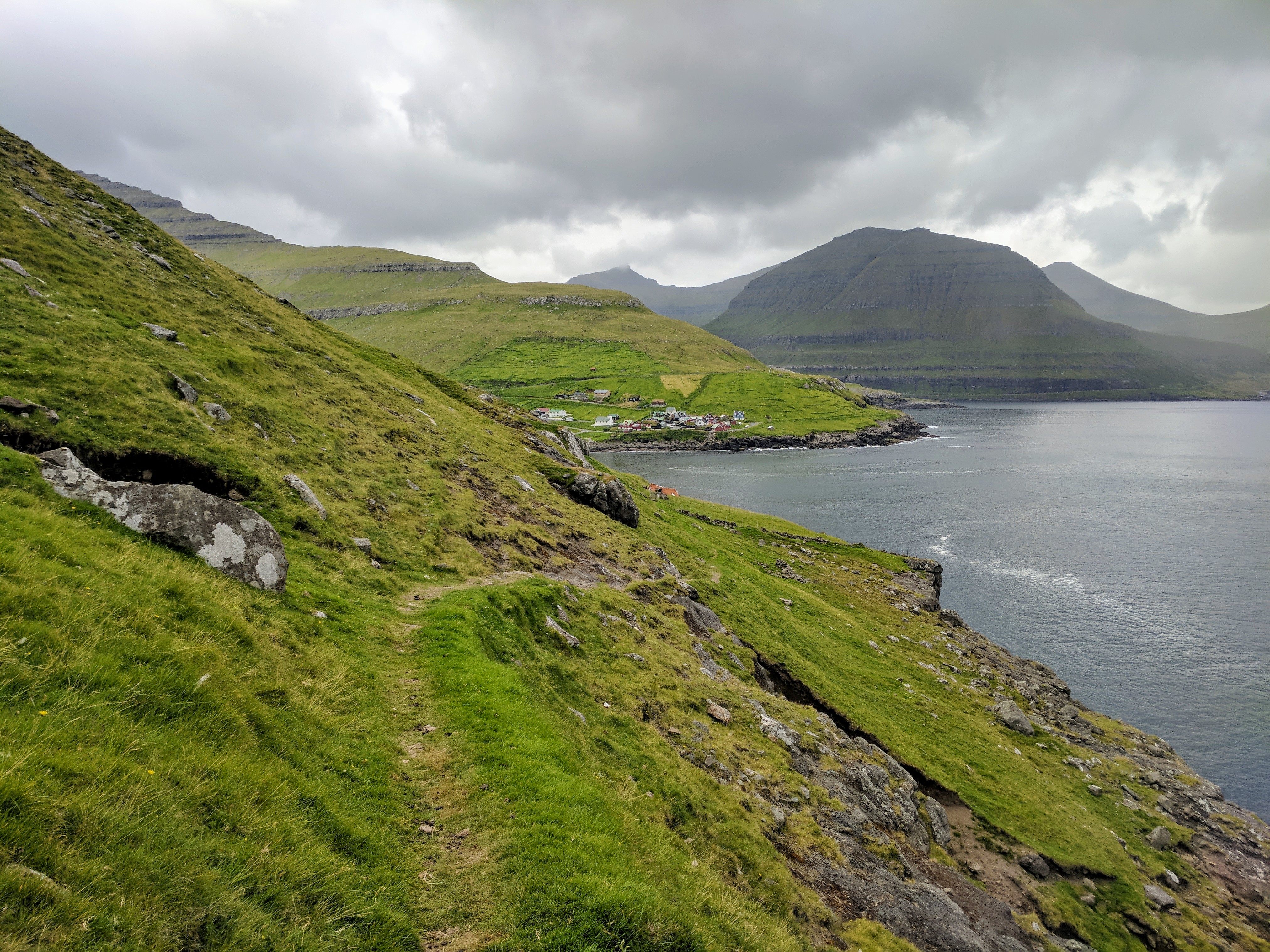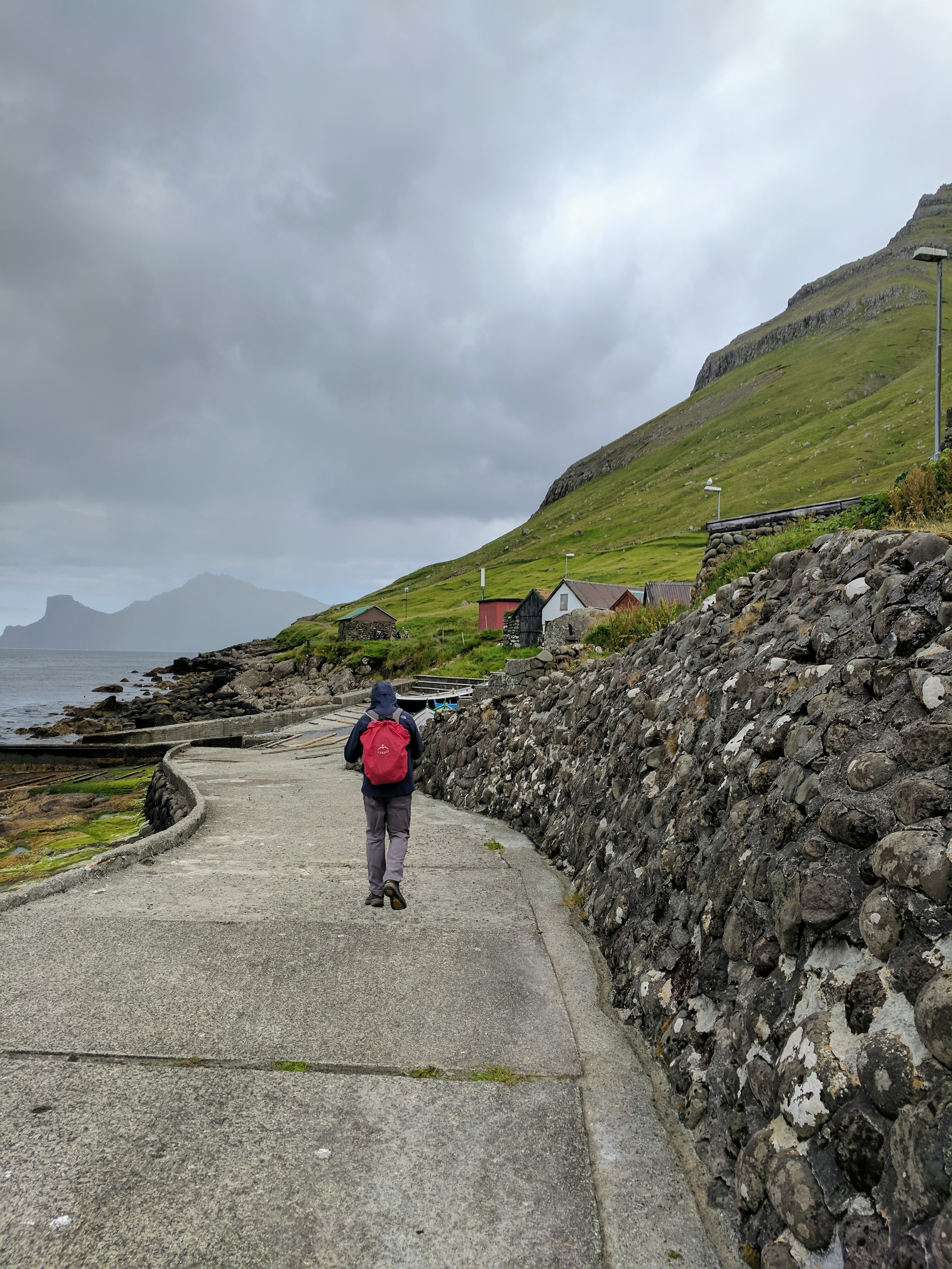 We recommend starting your hike in Elduvík. Park at the camper lot and walk up and away from town towards the cemetery. The trail begins just past the cemetery. To our knowledge, there are no public toilets in Elduvík or Oyndarfjørður, and Oyndarfjørður is the only place with food.