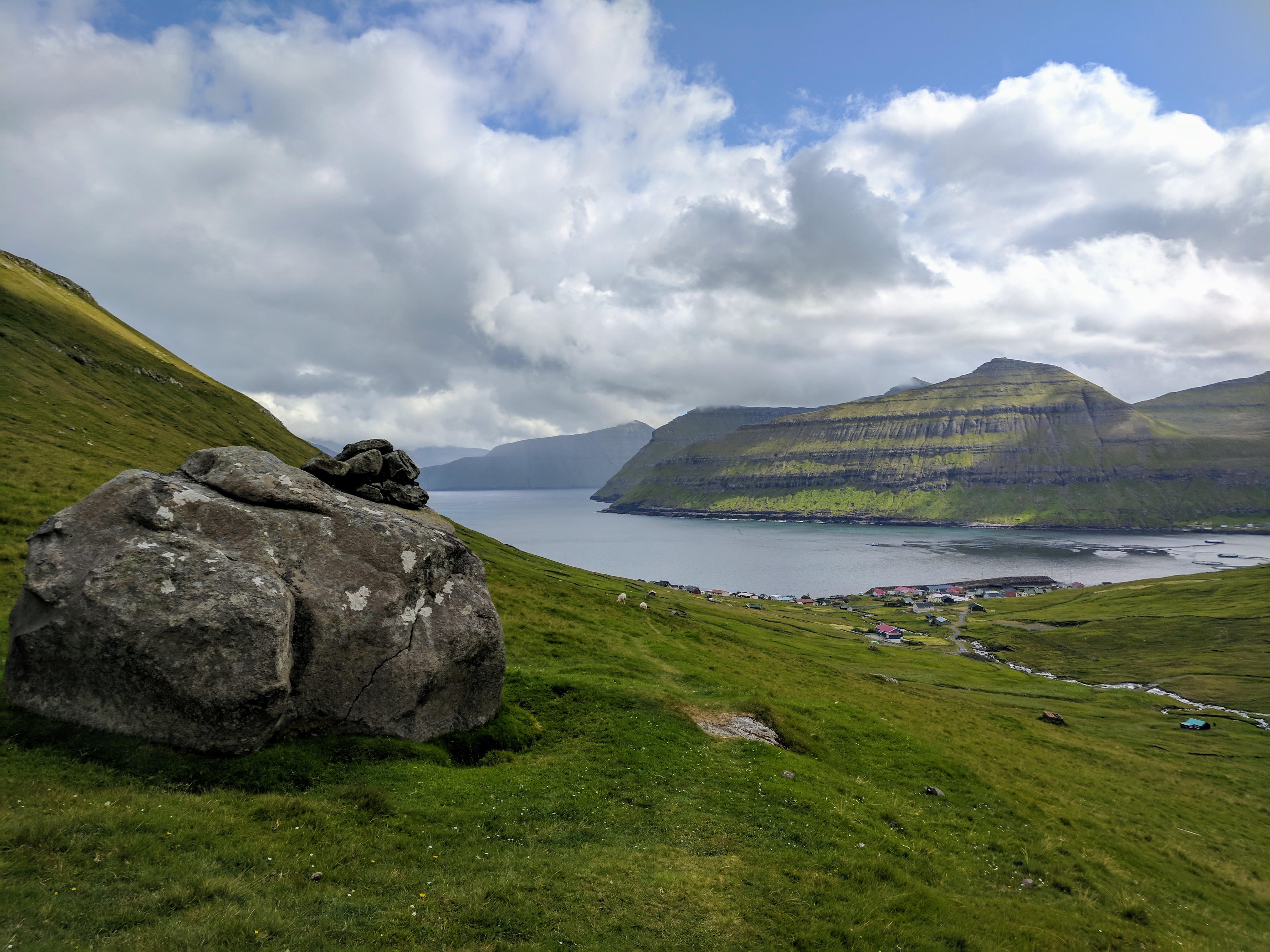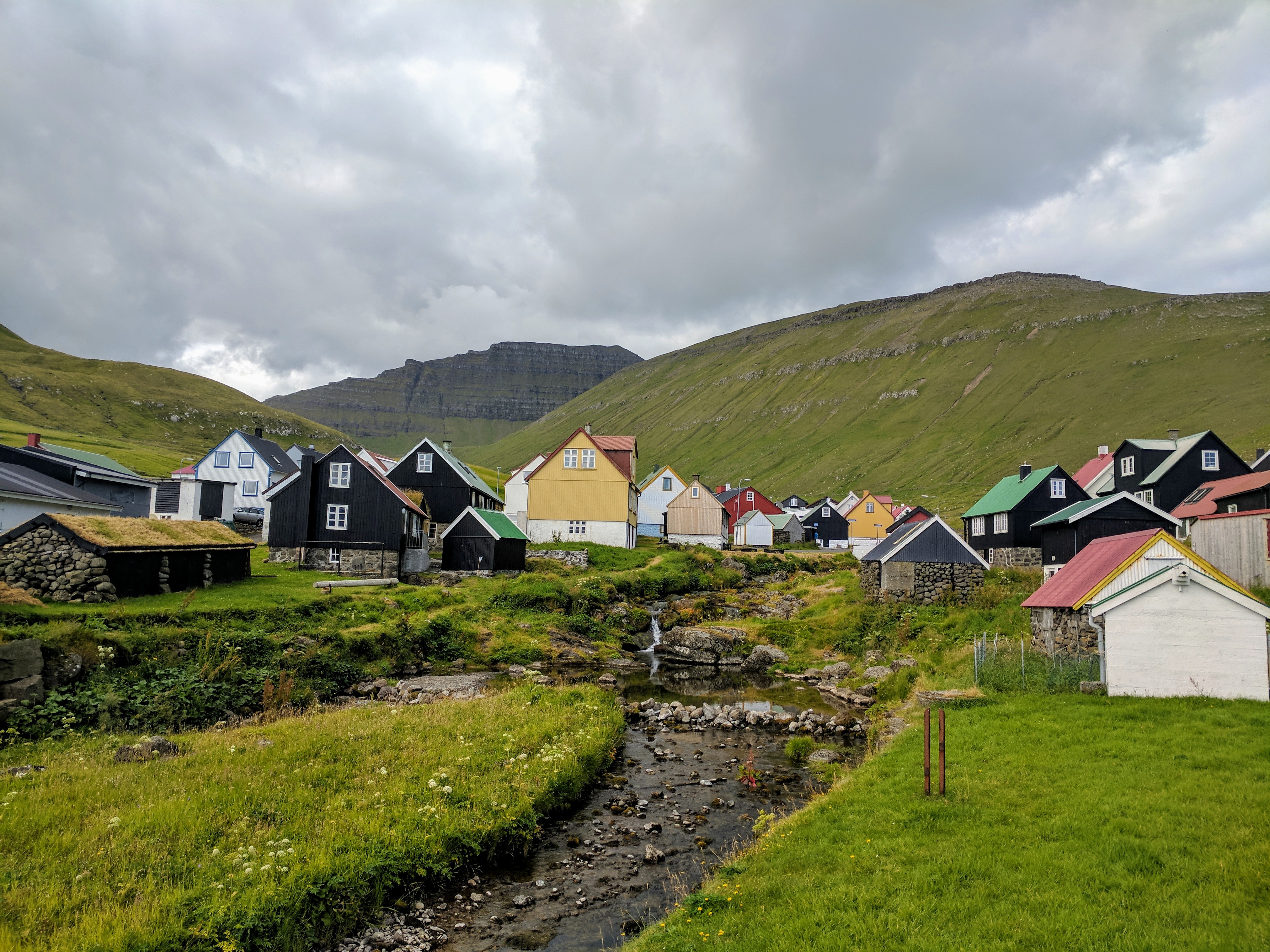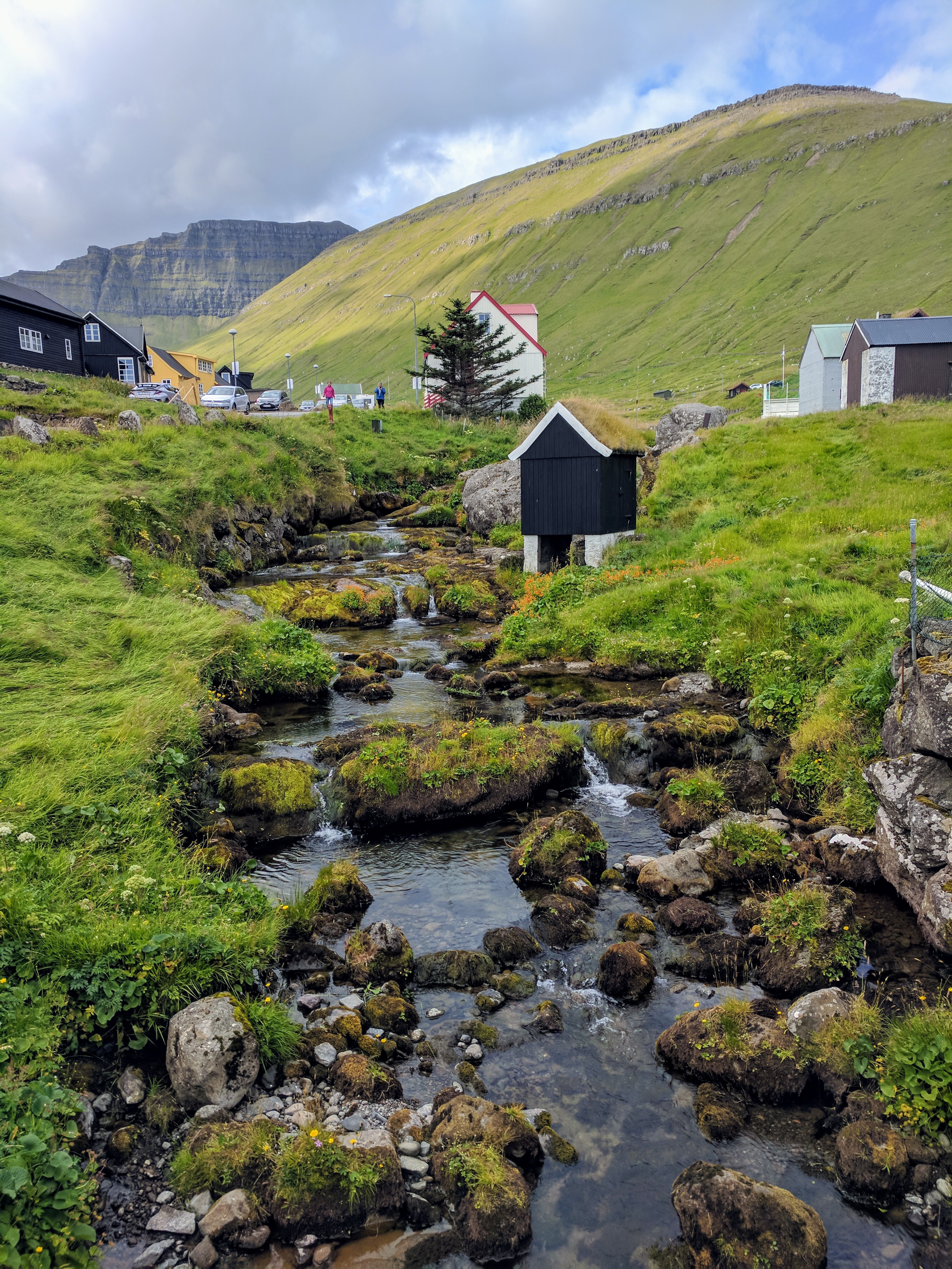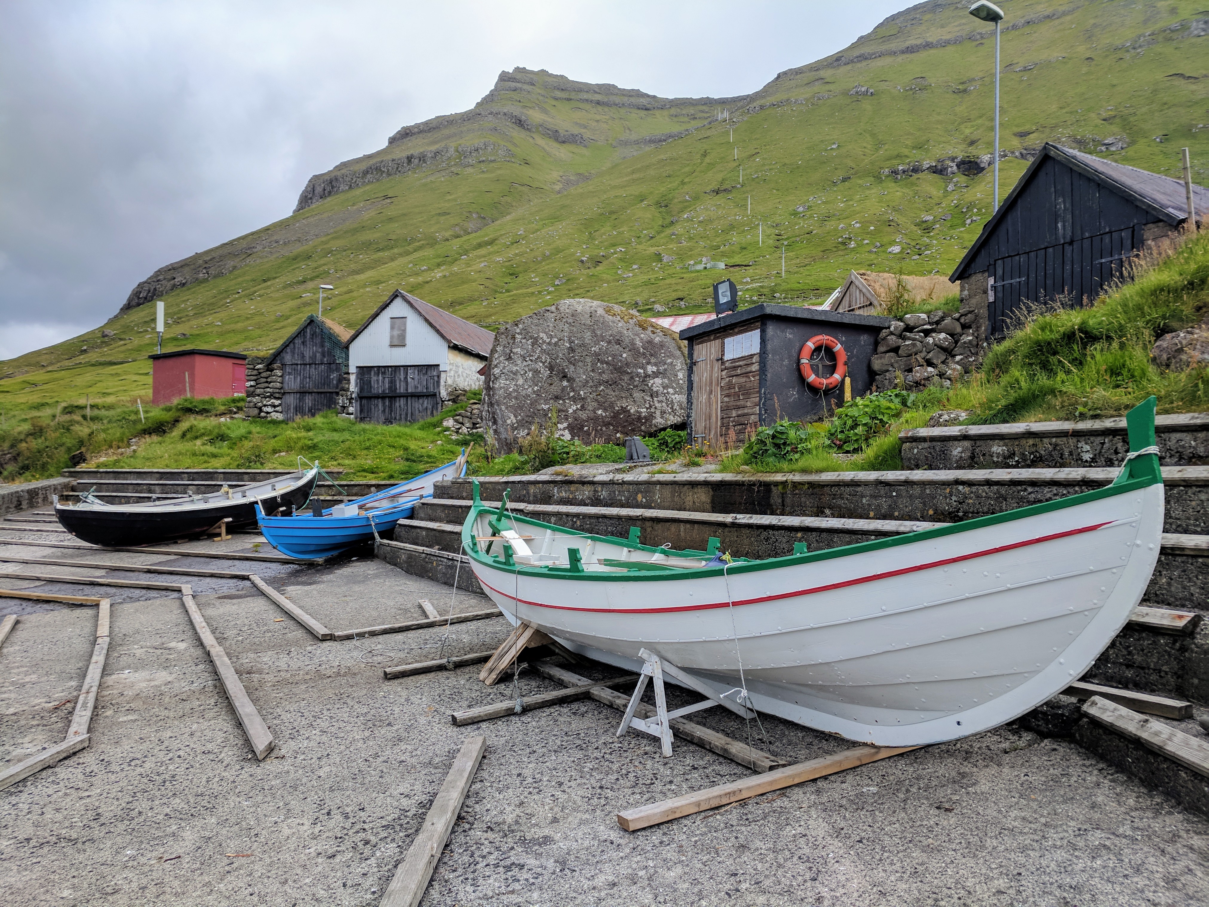 Runavík and its neighbor Saltangará were really nice, with several clothing shops and grocery options and at least two good places to eat: Cafe Cibo and Bakaríið. That bakery was our favorite, but there was also a good bakery across the fjord in Skali. In Runavík, with canvas bags in hand, we felt we had mastered the grocery store experience when we saw a local using a white bucket to put her groceries in. As long as you remember something to carry your stuff out with, you’re apparently a local.