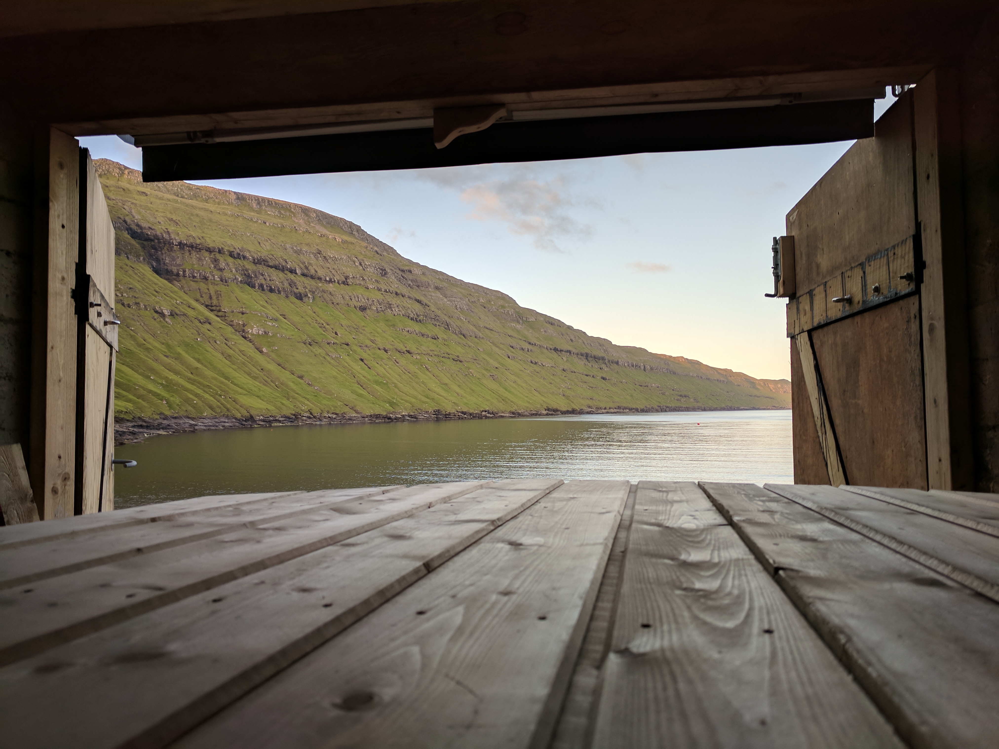 During our two week exploration of the Faroe Islands, we saved the island of Eysturoy for last. We had more interactions with people on this island than we had throughout our entire trip, which made those last two days our most memorable. We also stayed in the most unique lodging — a converted boathouse, complete with composting toilet and a bunker bedroom. Believe it or not, that AirBnb in Lamba was our 2nd favorite lodging of the entire trip. We had floor-to-ceiling windows and a giant wooden hot tub with unspoiled views of the ocean and the most amazing sunrises.