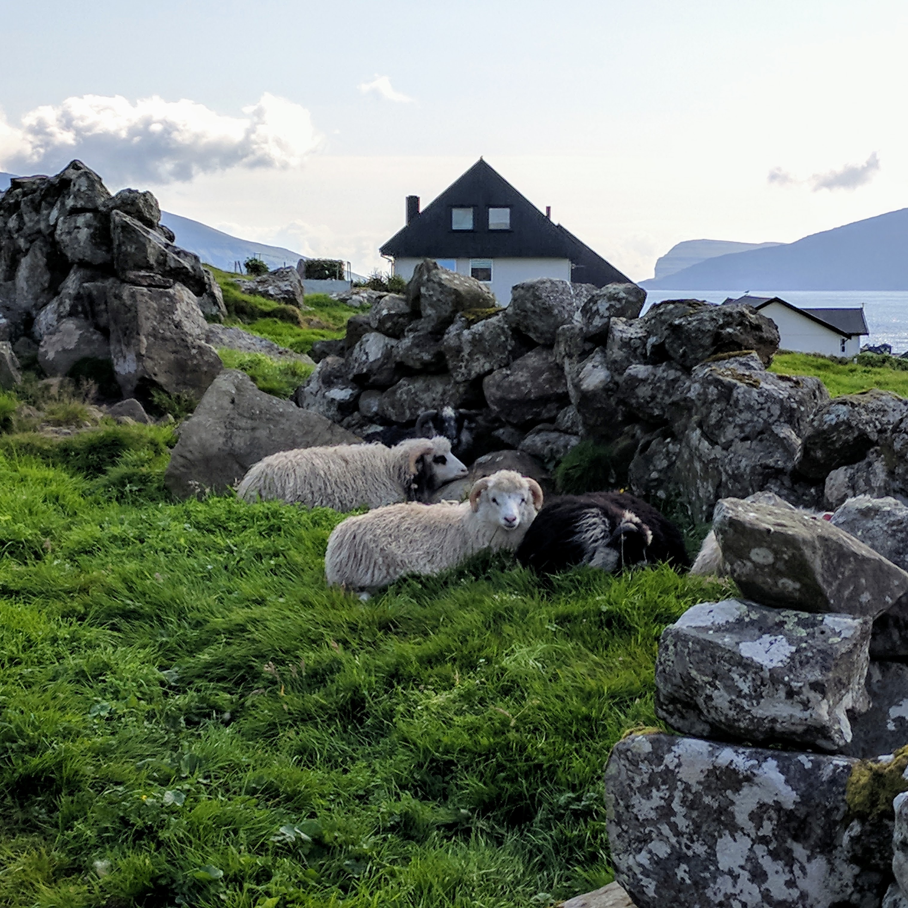 They are most DEFINITELY a nation of sheep! In fact, the Faroese word for their islands is Føroyar, derived from old Norse Færeyjar which means “sheep islands.” Sheep outnumber humans, and that was readily apparent from day one of our visit. They are EVERYWHERE and they come in all colors and shapes. As we experienced, they have zero fear of moving vehicles and some have very unique personalities.