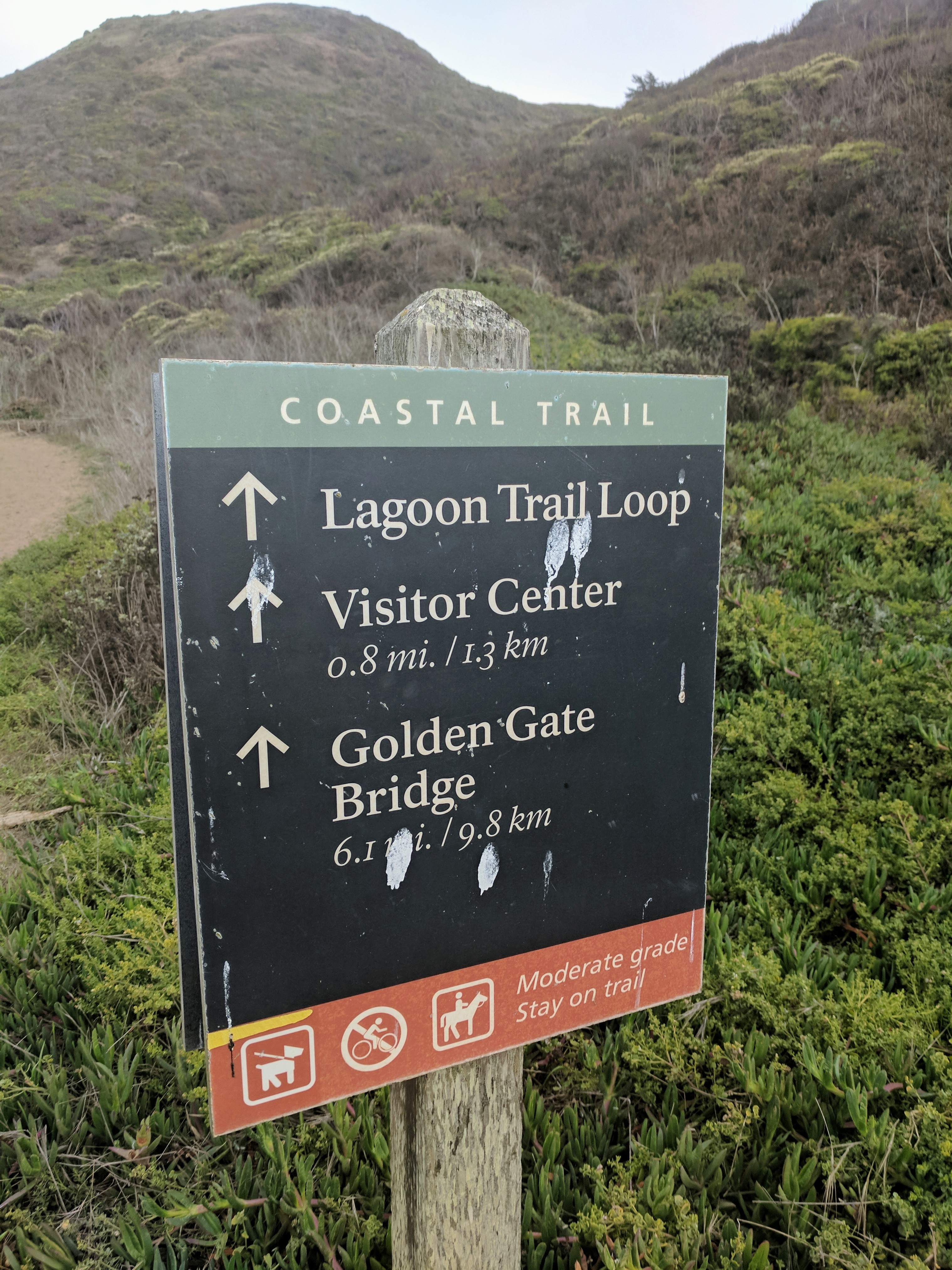 Day one of our walking holiday in Marin County, California, began with an instructive ride from the Oakland Airport. Our Lyft driver was a young man with his pants hanging halfway down to Mexico and listening to jazz. He told us he’d visited Louisiana but could never live there because our marijuana laws weren’t loose enough. [Eric and I are now looking at Google Maps to see how much longer this drive is.] But then this Oakland native began to expound all the reasons why we should spend time in his city and how it had everything San Francisco had. He gave us excellent pointers on hiking trails that only locals knew about. He told us he was a new dad, that he had majored in Economics, and he had some very deep thoughts about professional sports. Our ride over the Golden Gate Bridge to the Marin Headlands Hostel was over far too soon. When he dropped us off in the woods at a house that looked like an old psychiatric hospital, pulling his pants up to open the door, he was probably thinking “white people have some crazy ideas about vacation.” Then again, he might have just been thinking about his next weed break.