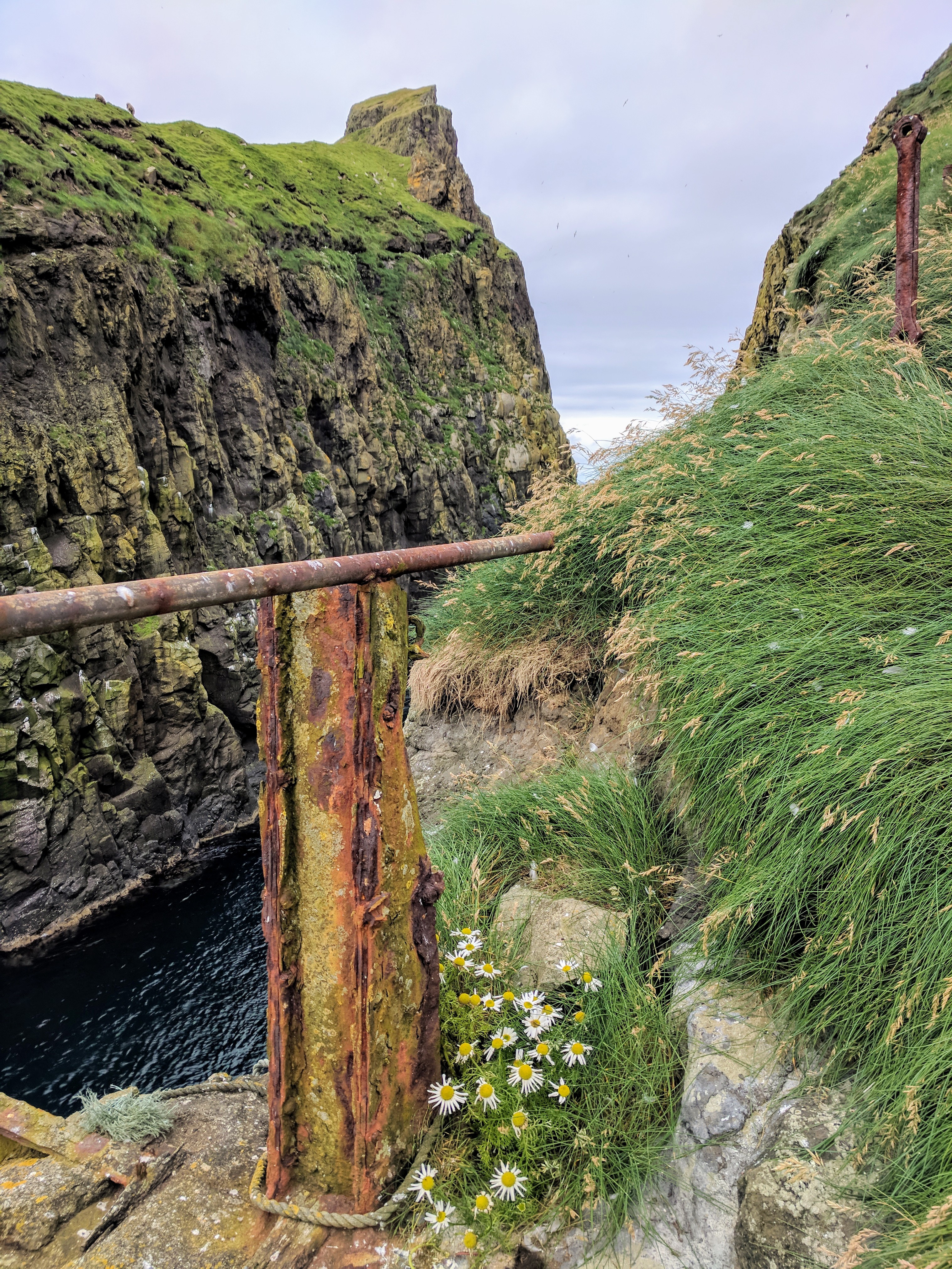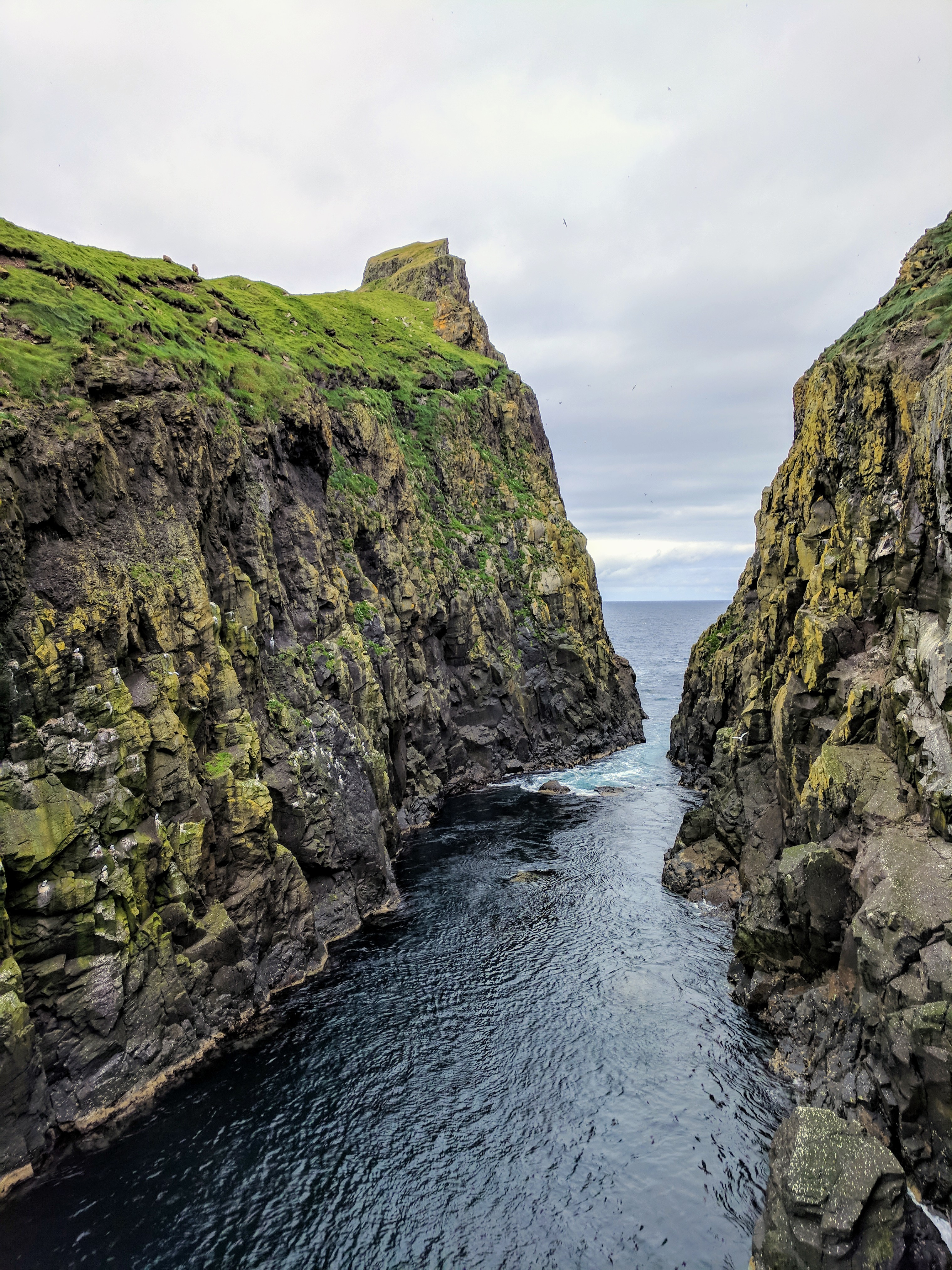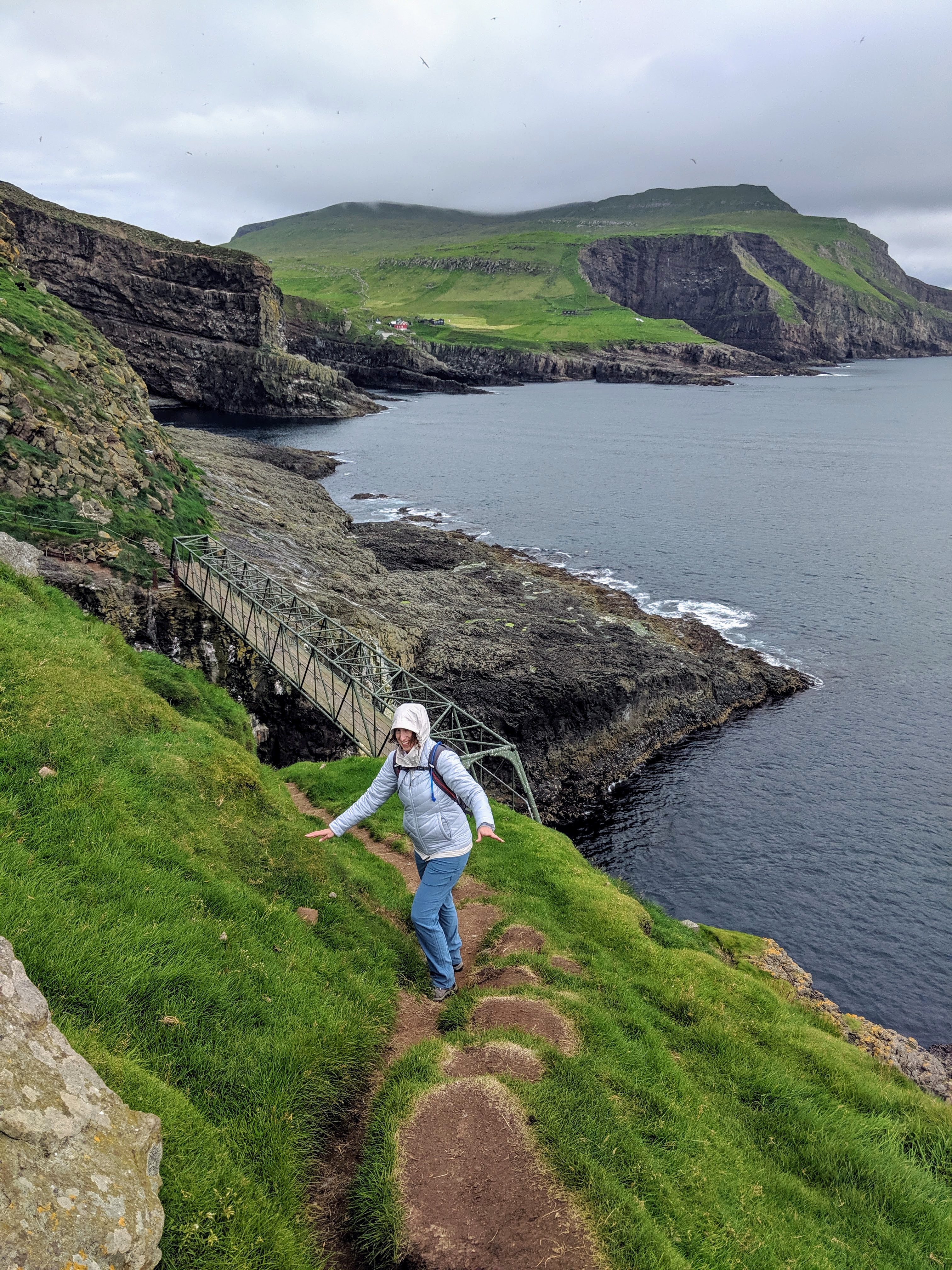 The hike took us about two hours and was one of the most uniquely beautiful trails we’ve ever walked. Besides the puffin burrows, the path took us along volcanic black coal cliffs full of nesting birds, a bridge that crosses the ocean, and a lighthouse. With a little rain and a lot of wind, it felt wildly untamed and I could almost feel the freedom of those birds.