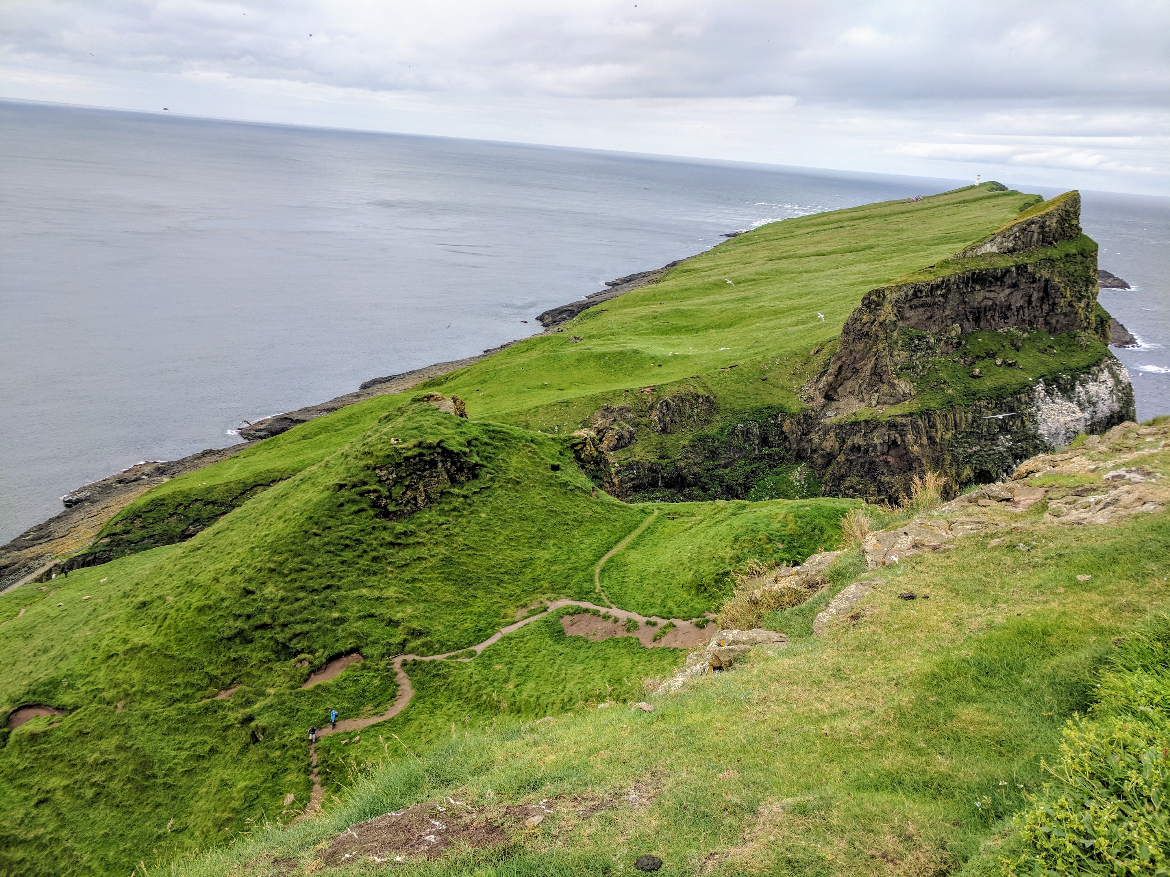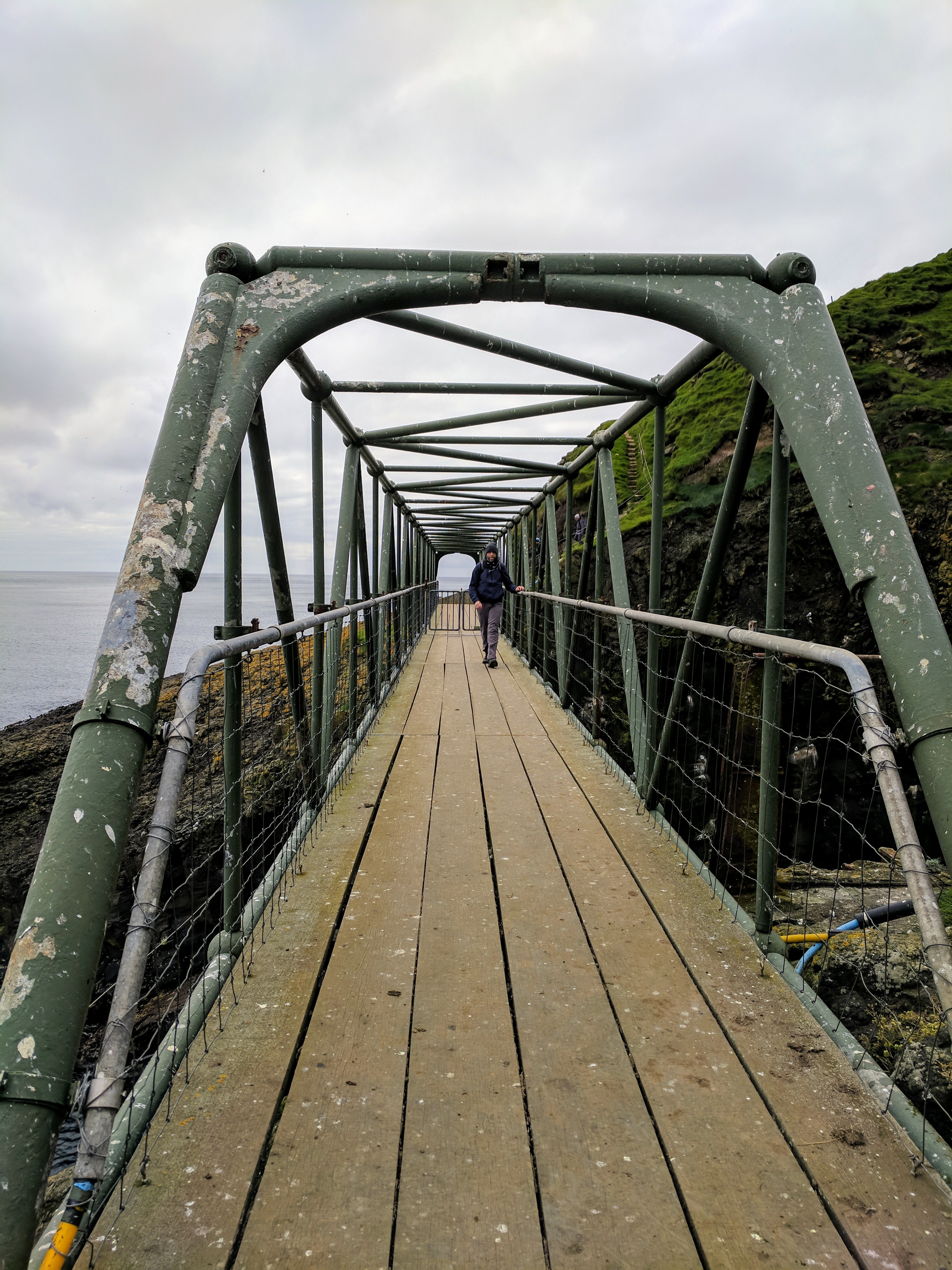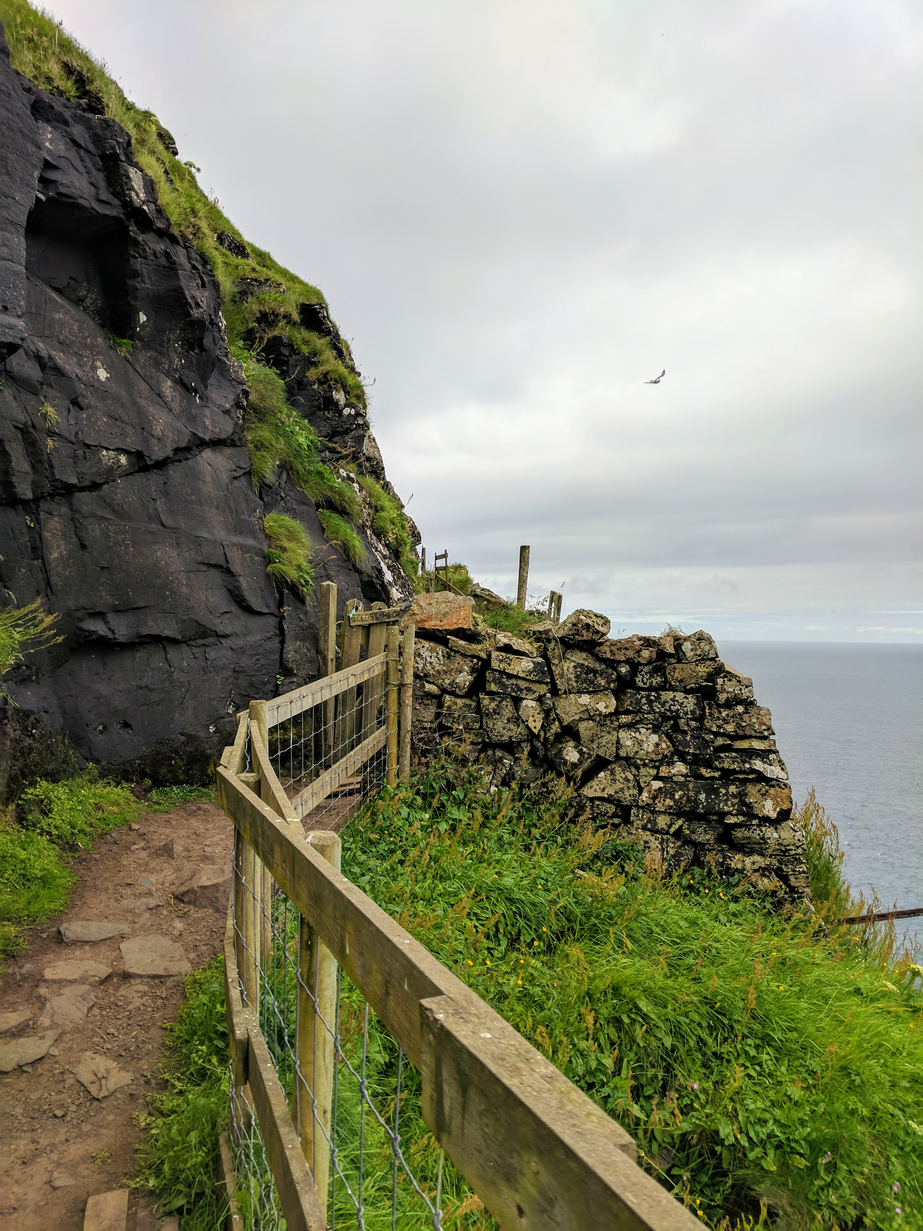 The hike took us about two hours and was one of the most uniquely beautiful trails we’ve ever walked. Besides the puffin burrows, the path took us along volcanic black coal cliffs full of nesting birds, a bridge that crosses the ocean, and a lighthouse. With a little rain and a lot of wind, it felt wildly untamed and I could almost feel the freedom of those birds.