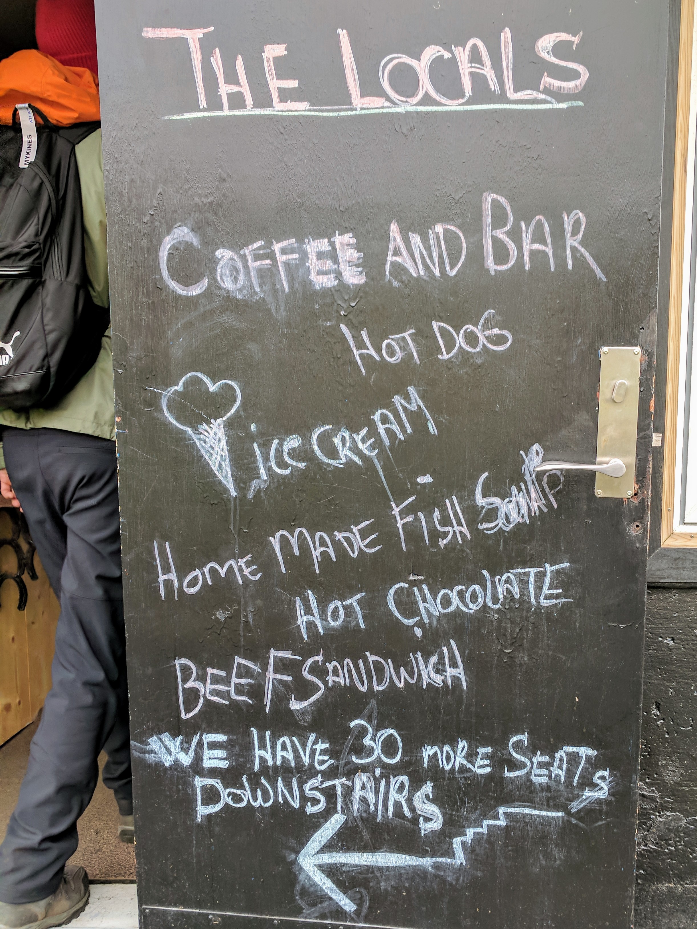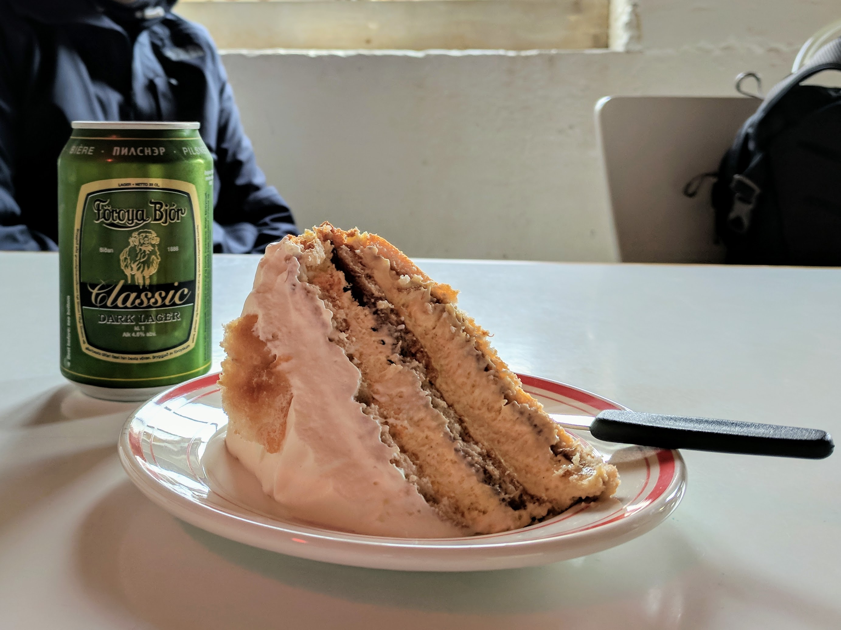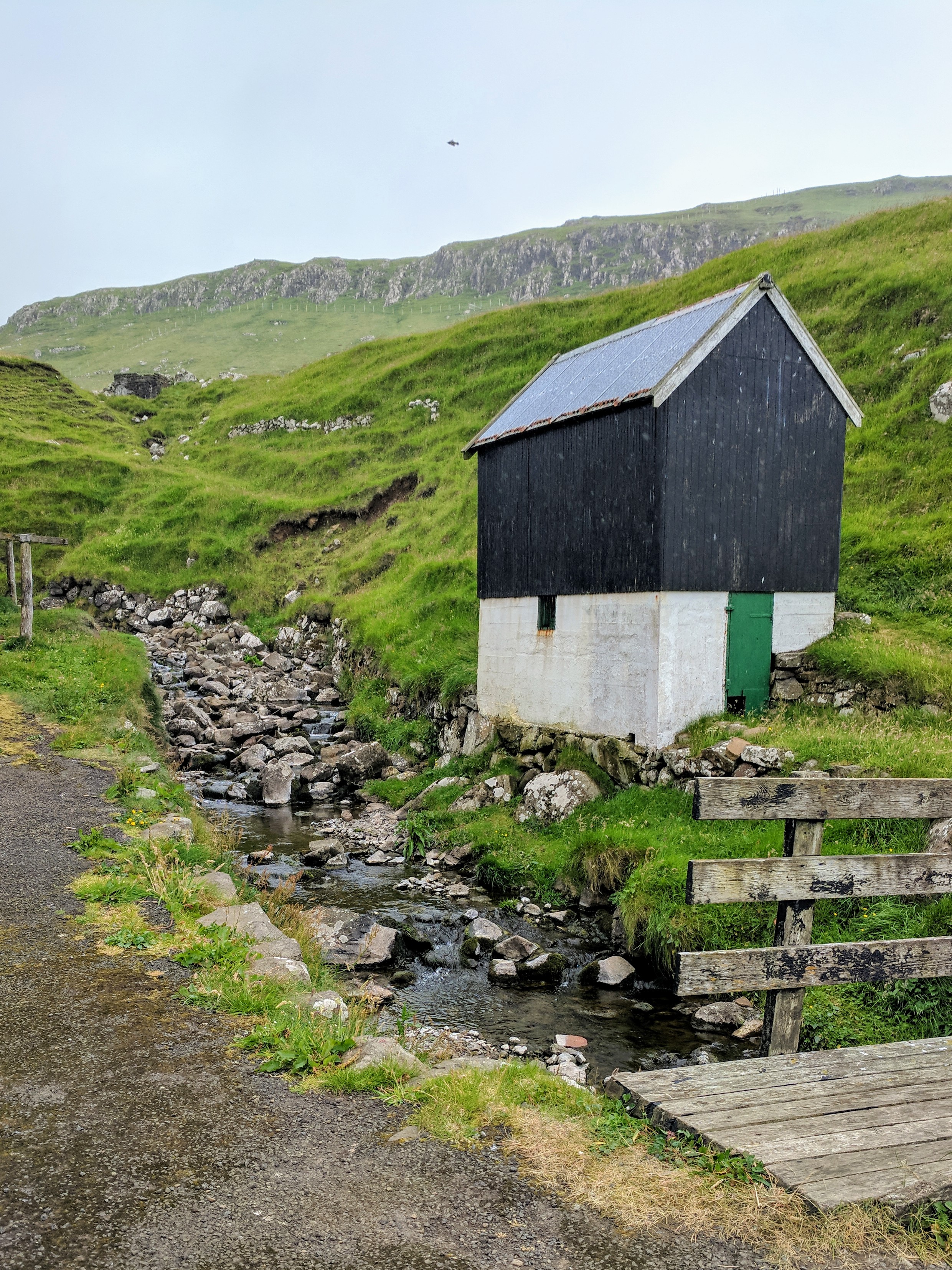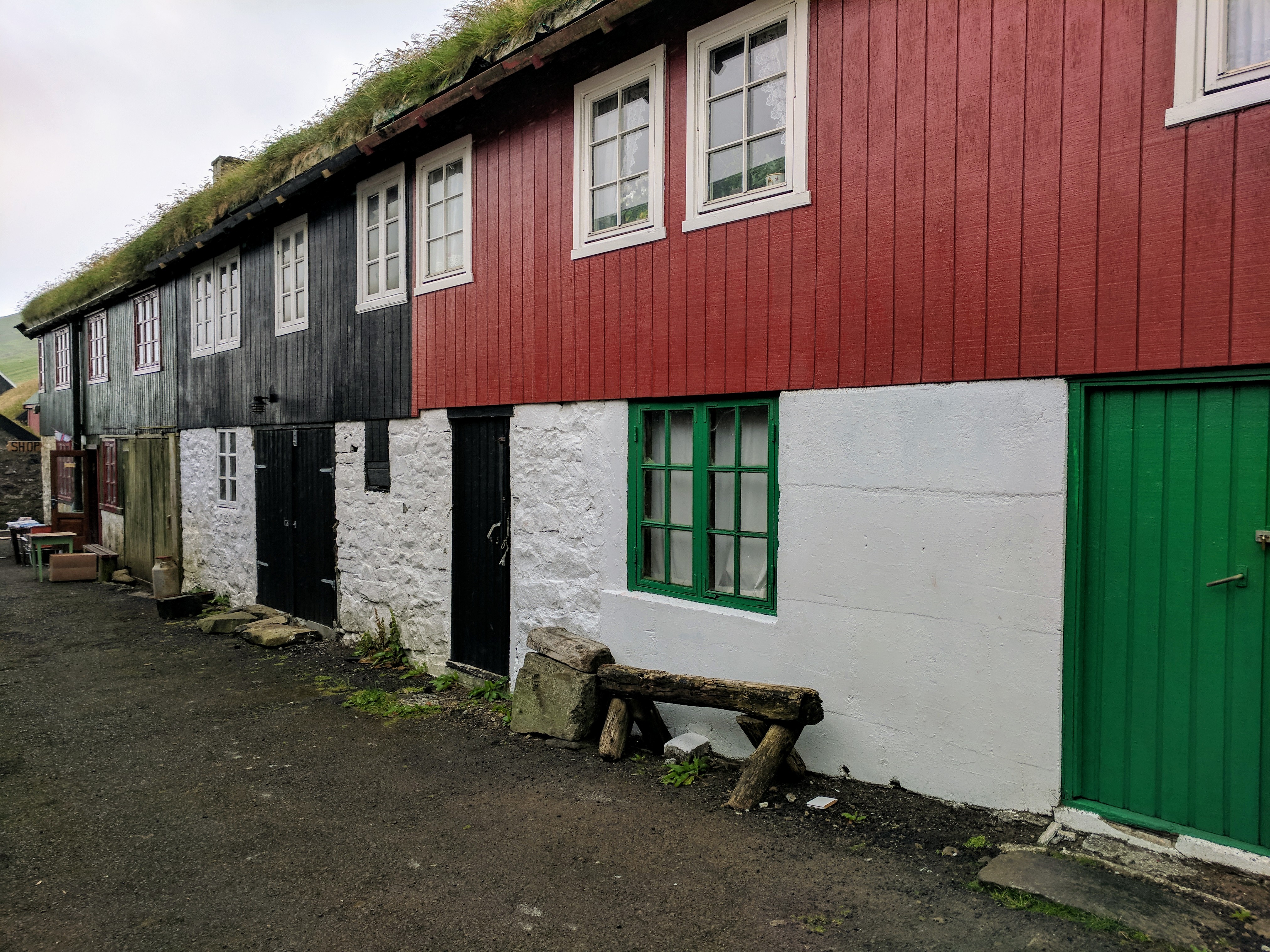 It began raining heavily just as we returned to the village, forcing us to take shelter in a cafe. We were starving by that point because we’d forgotten our sandwiches at the AirBnB. Mykines was sparse — there are only 11 permanent residents — and there were only two tiny cafes, which were next door to each other. Both had very limited food options, but they were cozy and dry. We had a hotdog, cake, and beer at The Locals (which had more seating) then moved on and had hot chocolate at Mykinesstova (which was much nicer but had limited seating). We listened to fellow tourists speaking French, German, Danish, Spanish, and Russian. There were signs at Stova saying “No WiFi here. Talk to each other” and that is exactly what people were doing. They also played cards, which we noticed was a common practice at every Faroese cafe. The village itself was beautiful, with its grass roofs and a stream running through it. So despite the weather, we felt truly blessed to be there.