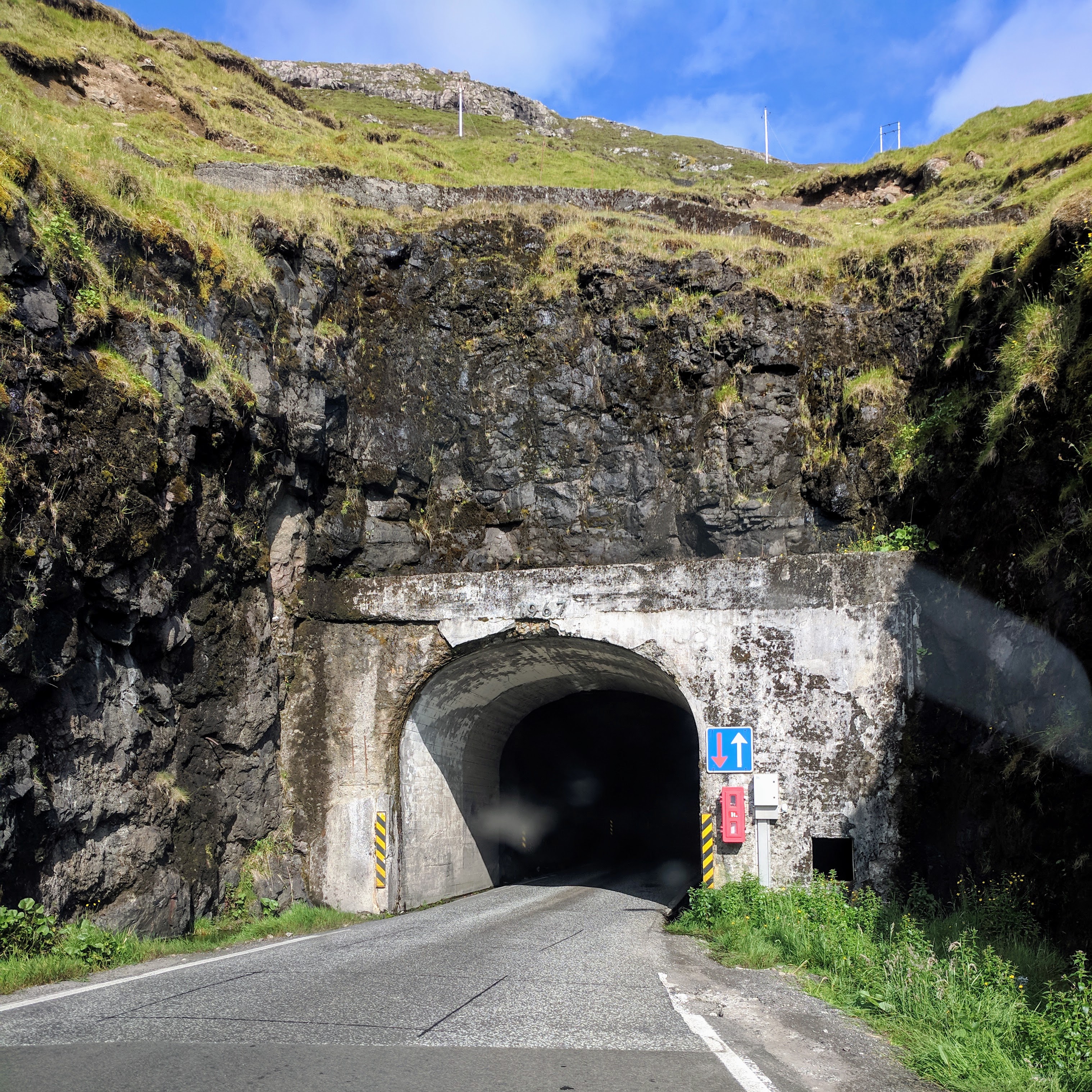 Our route from Streymoy to Borðoy took us through three mountain tunnels, past mountain valleys and fjords, and through an undersea tunnel. The tunnel connecting Leirvik to Klaksvik was 20,295 feet, making it the longest tunnel in the Faroe Islands. It felt like it took forever driving through that tunnel, especially as we kept going down, down, down…but just as we reached the bottom a burst of colored lights greeted us to light the way back up. The tunnels that terrified us were the two on Borðoy, which were cramped one-way tunnels built in the 1960s. These resembled old mining tunnels.