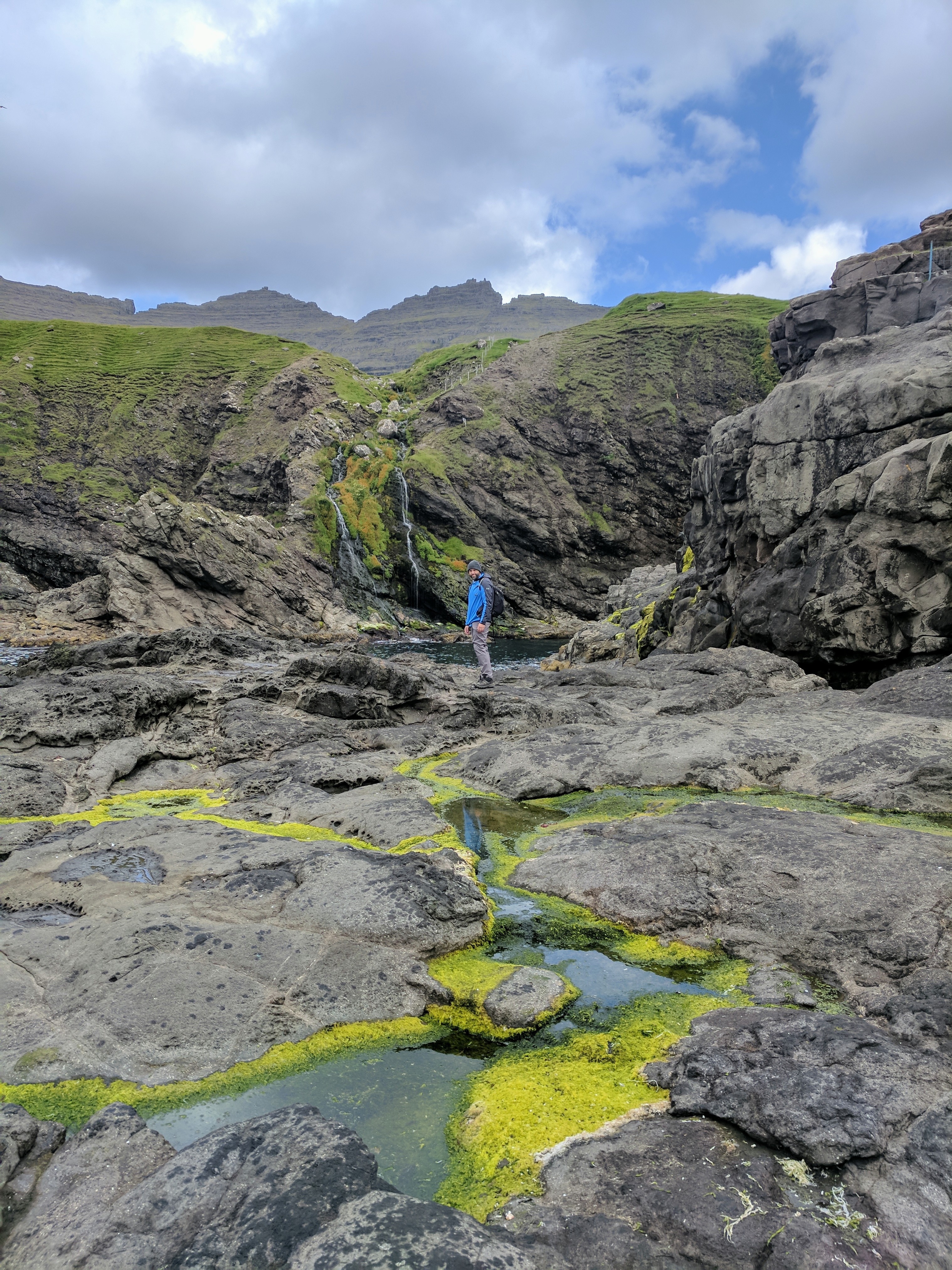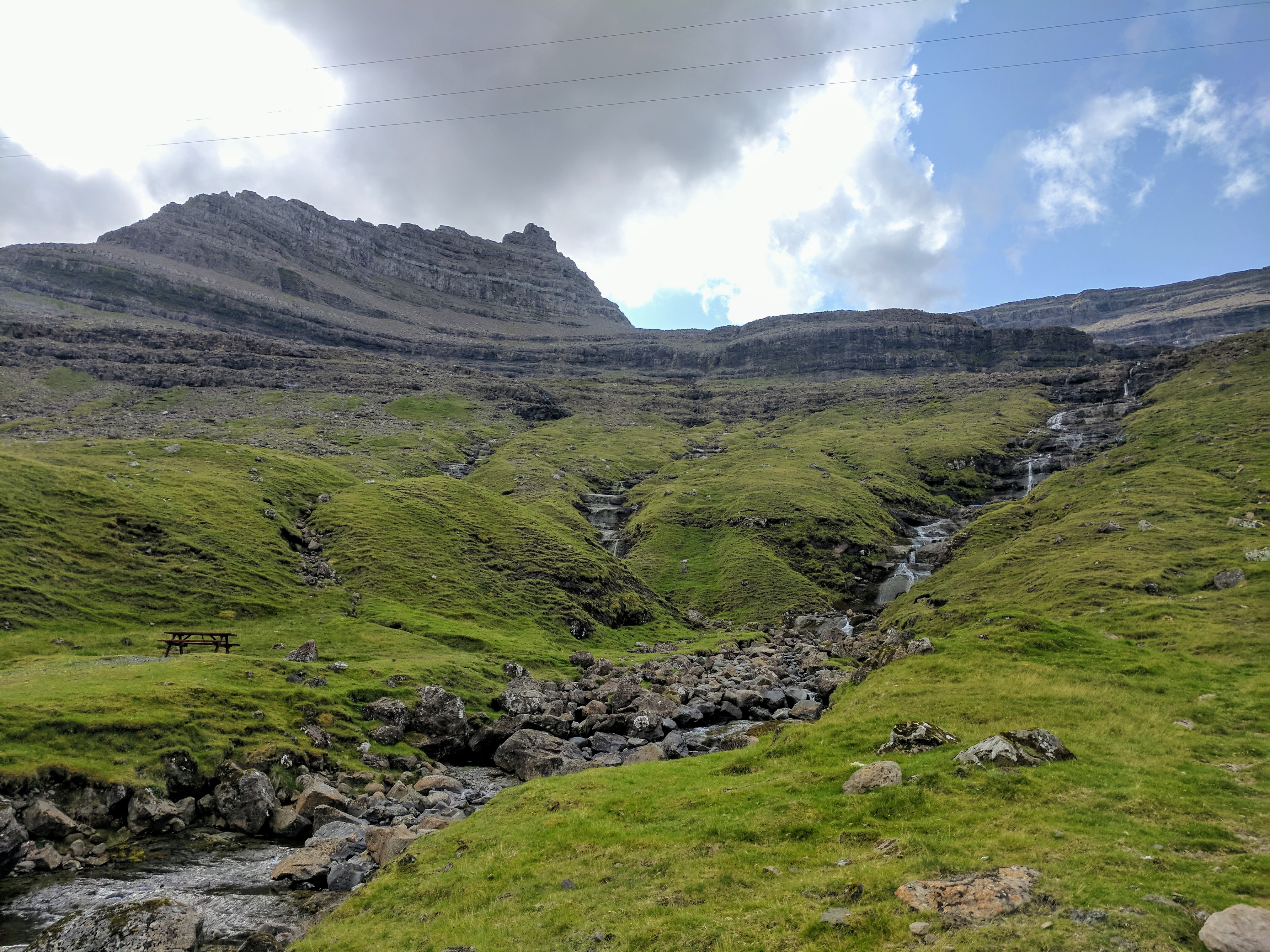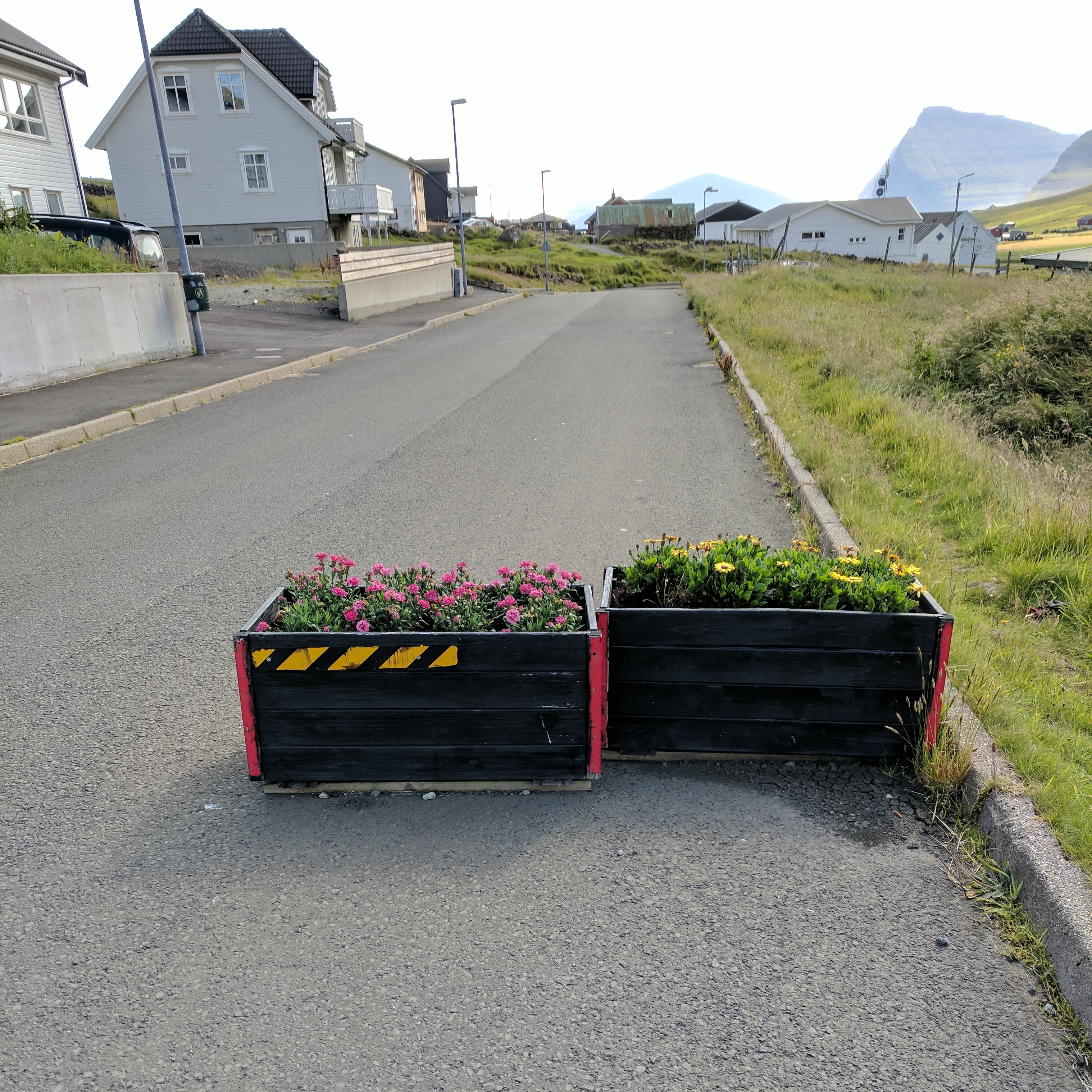 We looked up at the steep mountain, then down at the lovely village, and decided $20 per person wasn’t worth it. So we spent the rest of that day exploring tidal pools by the water, eating a picnic lunch by the Viðareiði waterfall, and soaking up the amazing scenery. One of my favorite things about Viðareiði were the flower boxes strategically placed in the road all throughout town — the friendly Faroese way of saying “slow the f down!”