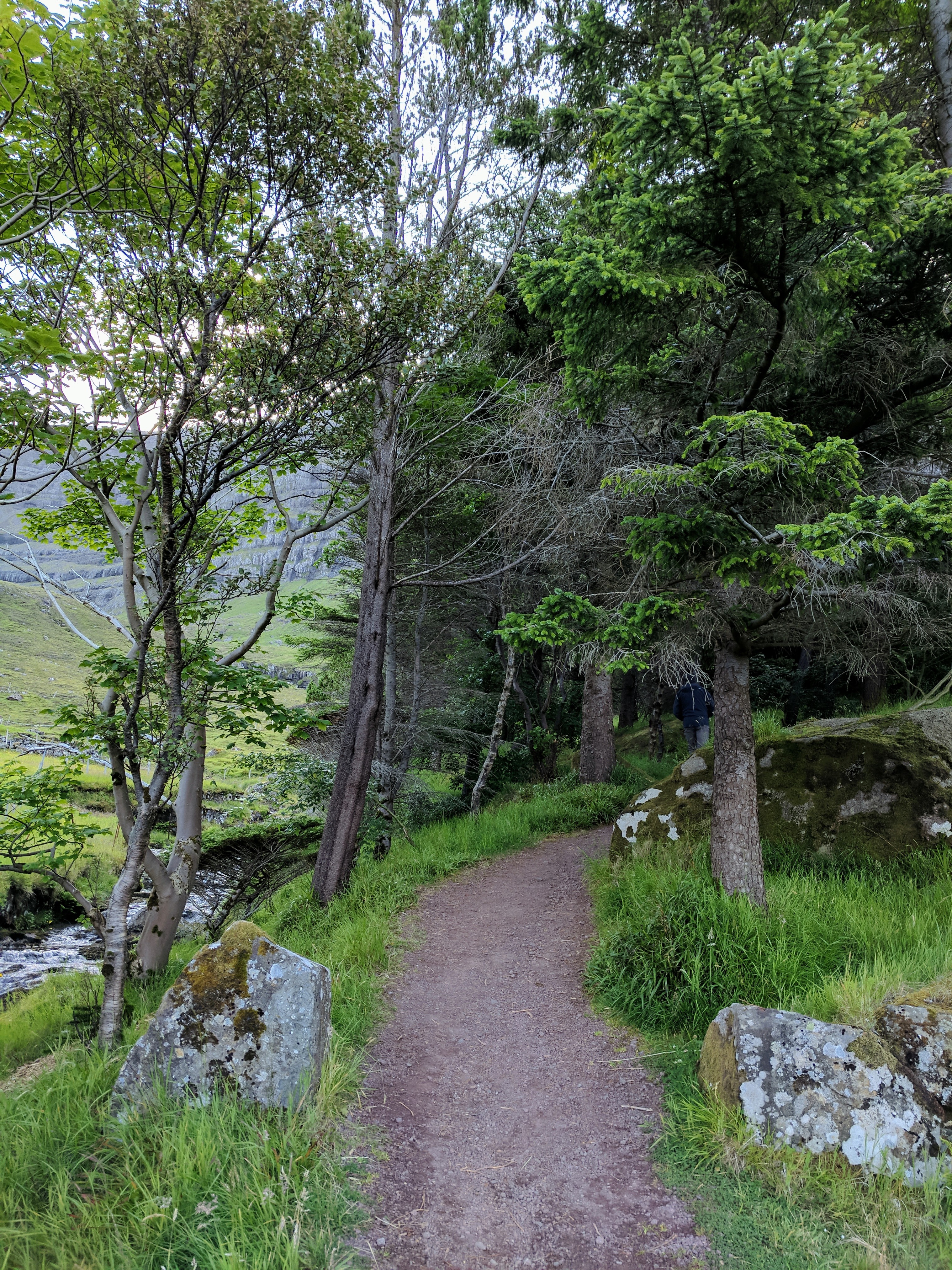 In all my research leading up to this trip, I never saw Kunoy mentioned. I certainly never saw anything mentioning a hidden forest, but lo and behold Kunoy had a magical forest hidden away from all the tourists! Seeing a grove of trees in the Faroe Islands was like seeing a lush green oasis in the middle of a desert.