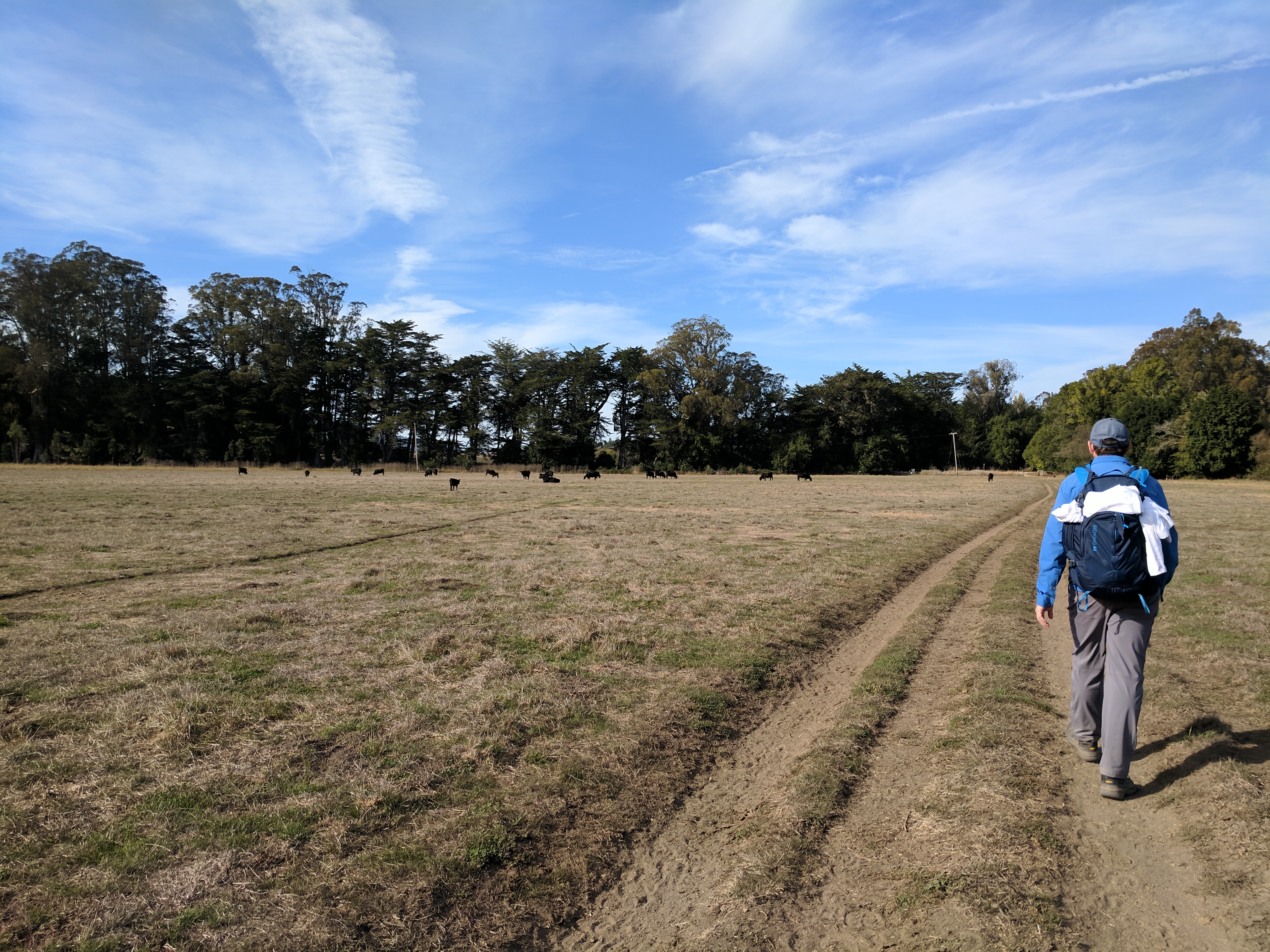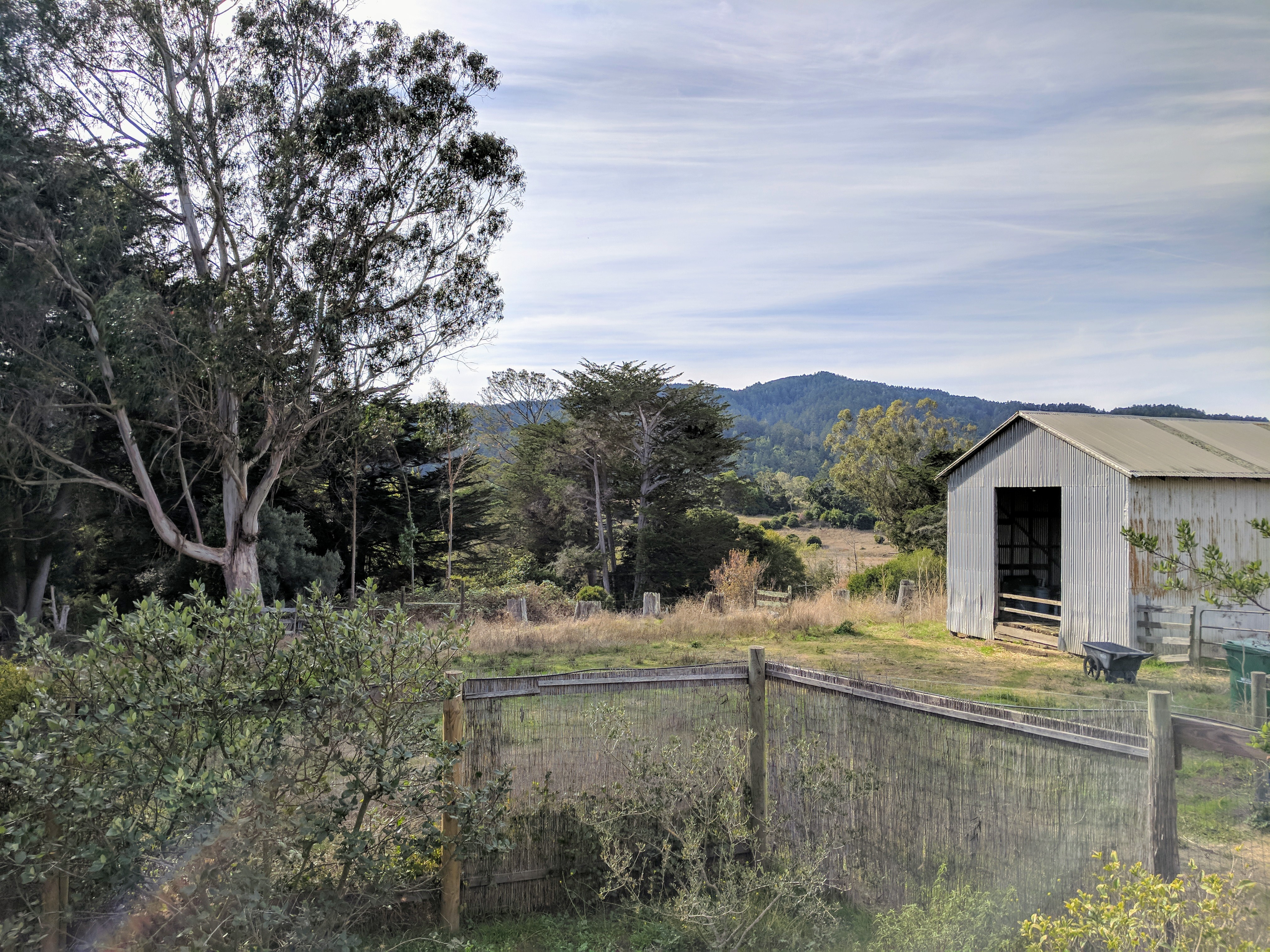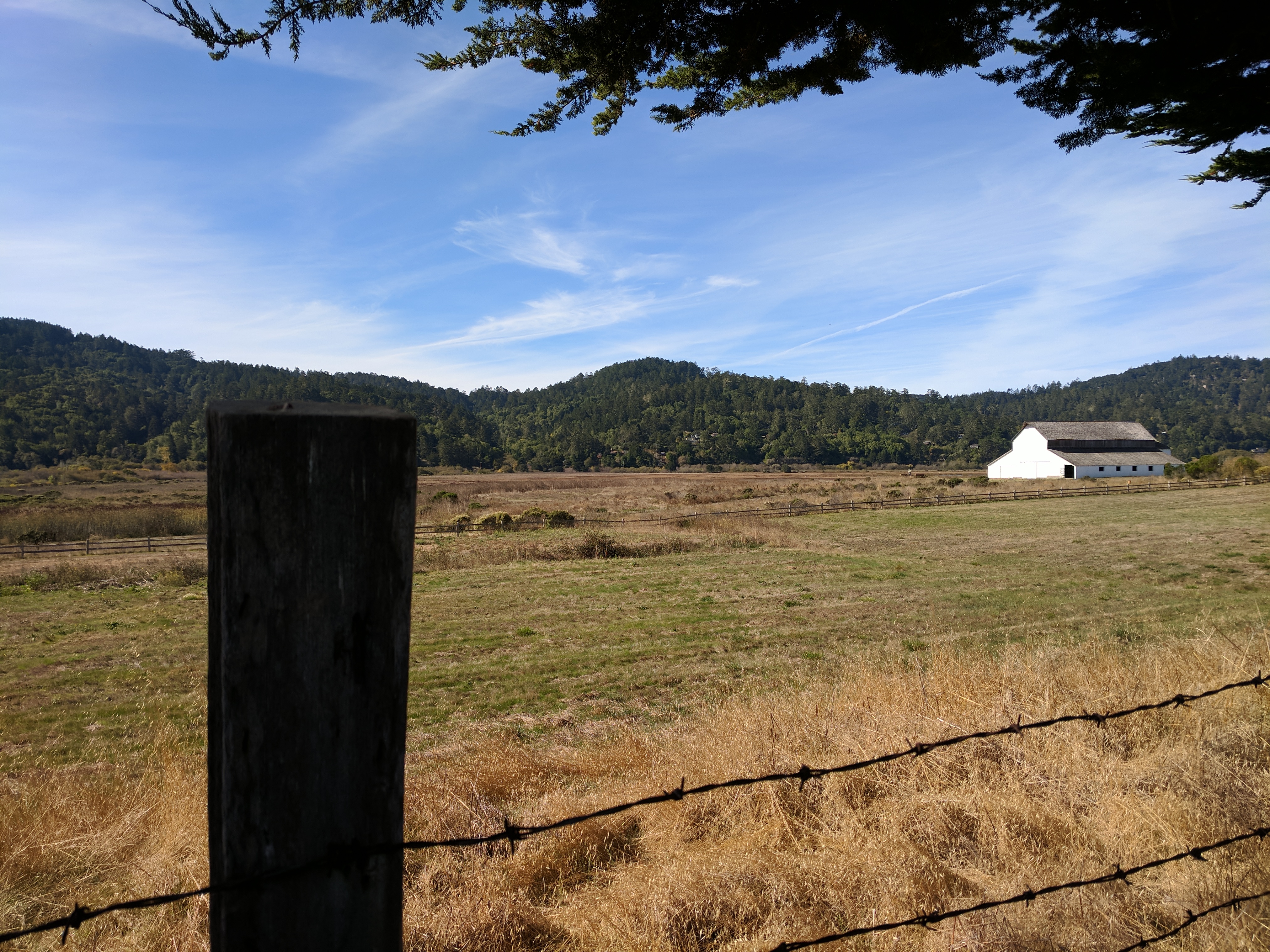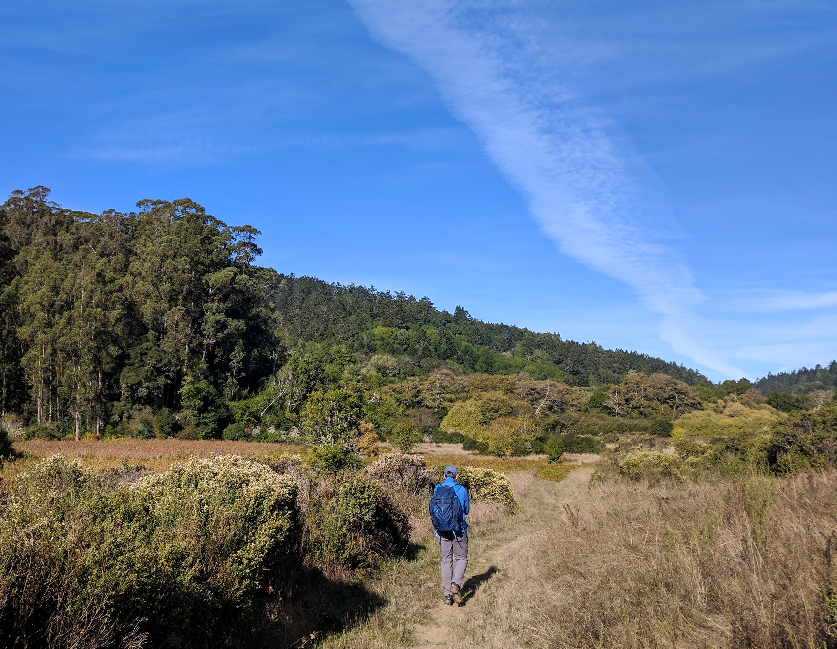 Hiking from Bolinas to Olema on our Walking Holiday in Marin County was the longest day of our trip. If we had followed the Walkabout California route, it would have been 14.8 miles. However, we found a more direct route along the Olema Valley Trail which shortened it to 12.2 miles. Our day began with some homemade breakfast bars from The People’s Store. As we left the hippie enclave of Bolinas, we met up with a young homeless man and his dog (who we’d seen the previous day in Stinson Beach). He was resting in his hammock and shaking his head at us, in what I imagine was pity or disbelief. I’ll admit to thinking at that moment, “why exactly did we pay to do this?” But as we began walking north on Olema Bolinas Rd. then uphill on Horseshoe Hill Rd. my doubts were replaced by the beautiful scenery surrounding us.