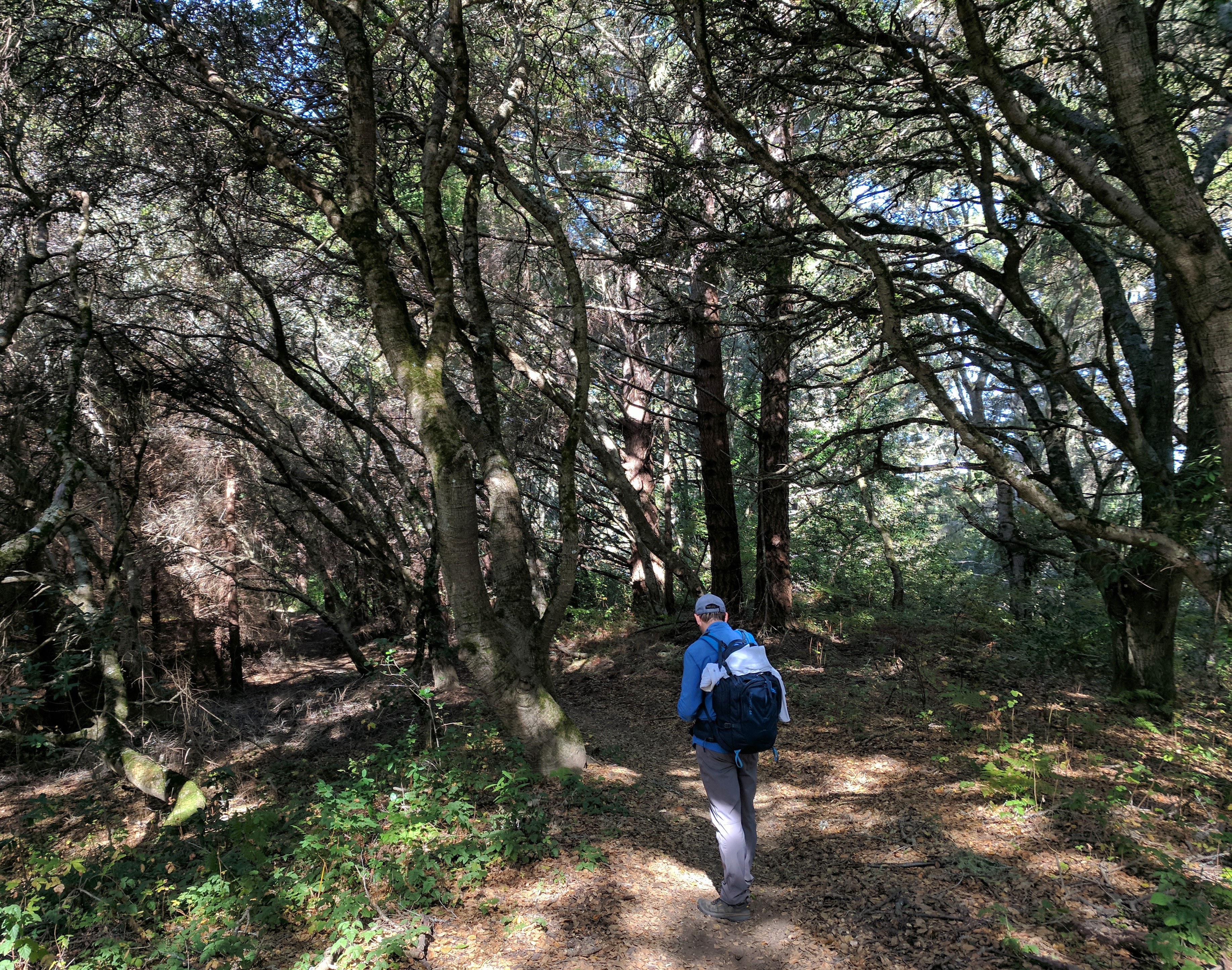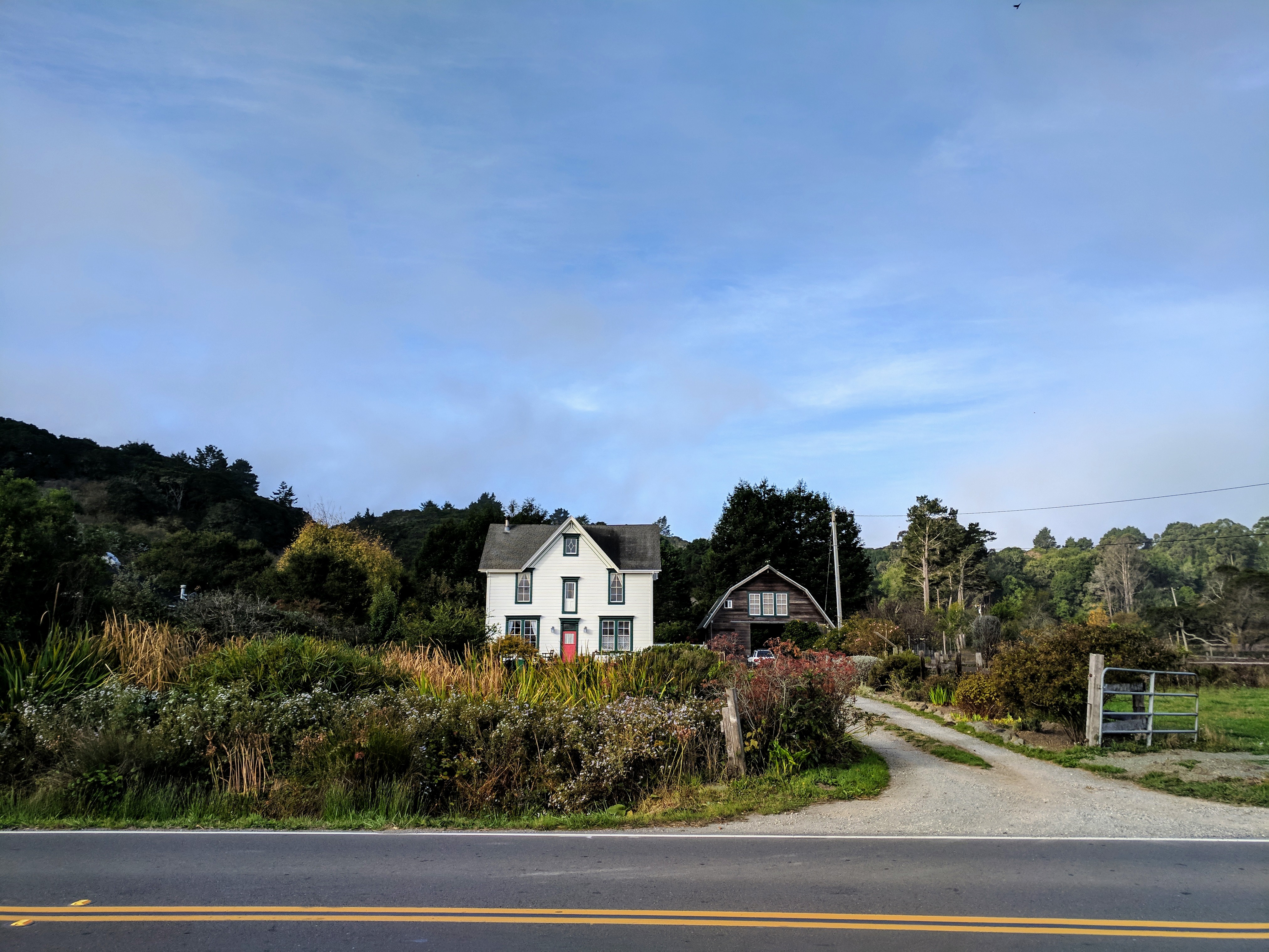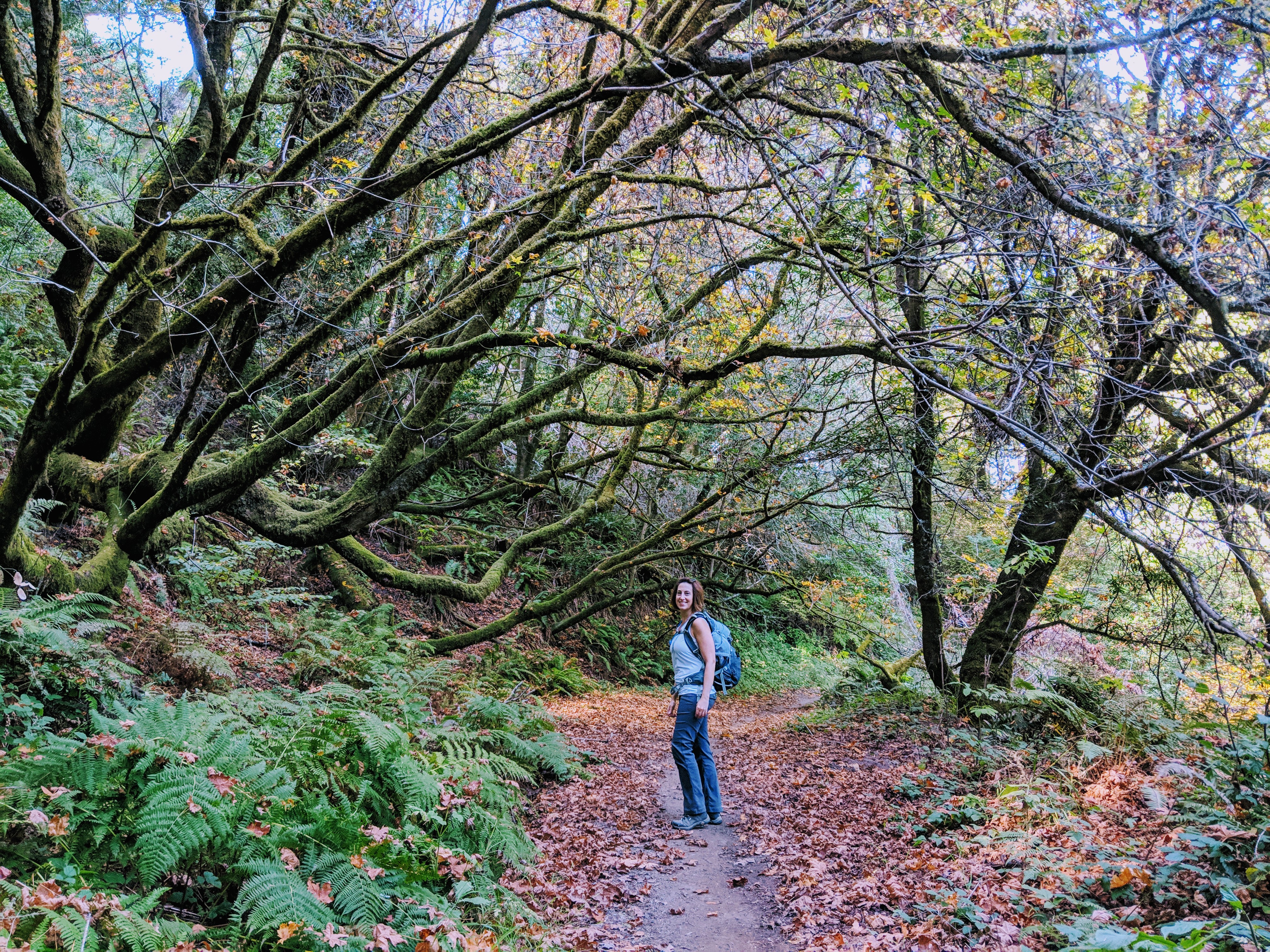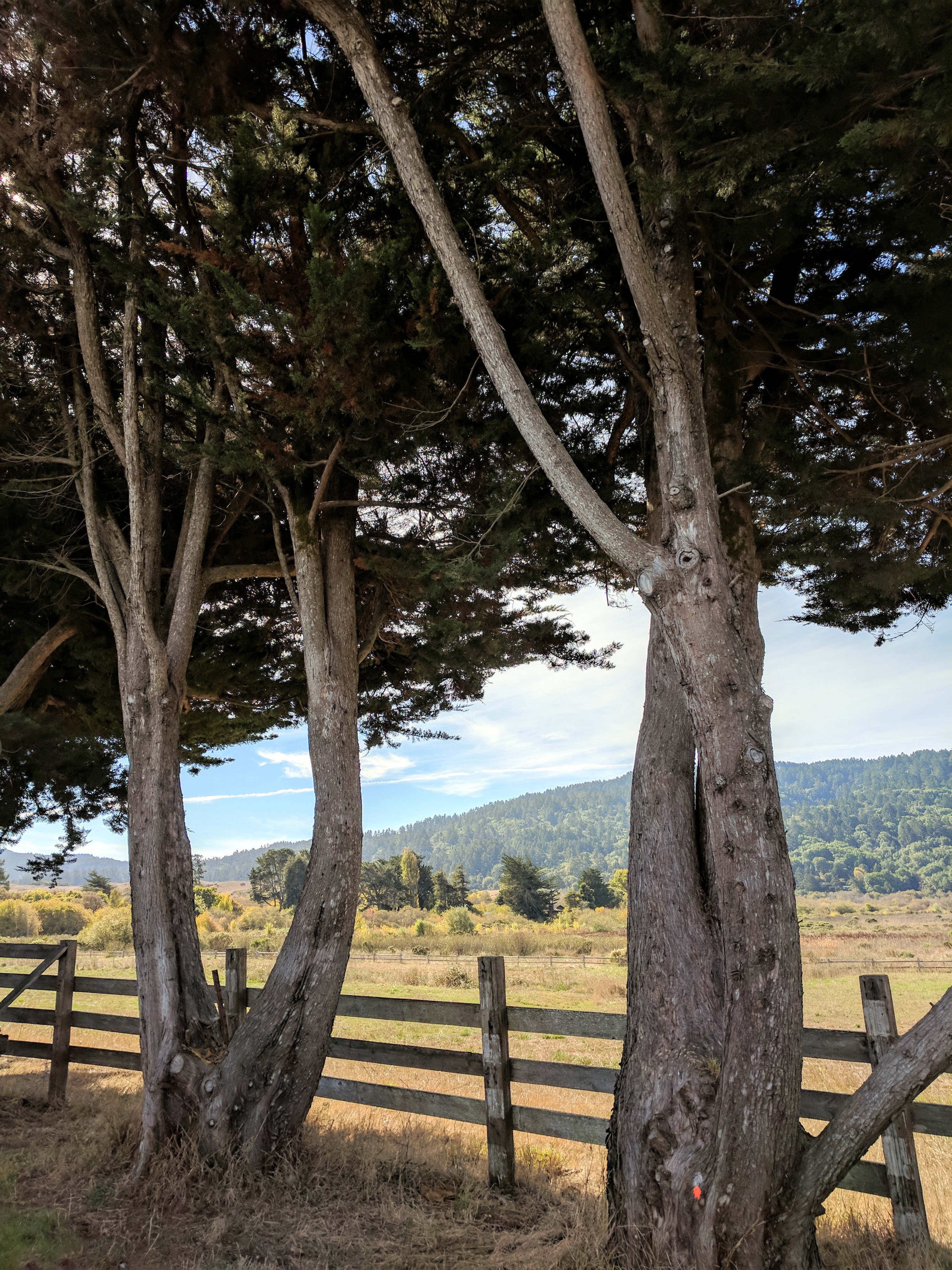 Hiking from Bolinas to Olema on our Walking Holiday in Marin County was the longest day of our trip. If we had followed the Walkabout California route, it would have been 14.8 miles. However, we found a more direct route along the Olema Valley Trail which shortened it to 12.2 miles. Our day began with some homemade breakfast bars from The People’s Store. As we left the hippie enclave of Bolinas, we met up with a young homeless man and his dog (who we’d seen the previous day in Stinson Beach). He was resting in his hammock and shaking his head at us, in what I imagine was pity or disbelief. I’ll admit to thinking at that moment, “why exactly did we pay to do this?” But as we began walking north on Olema Bolinas Rd. then uphill on Horseshoe Hill Rd. my doubts were replaced by the beautiful scenery surrounding us.