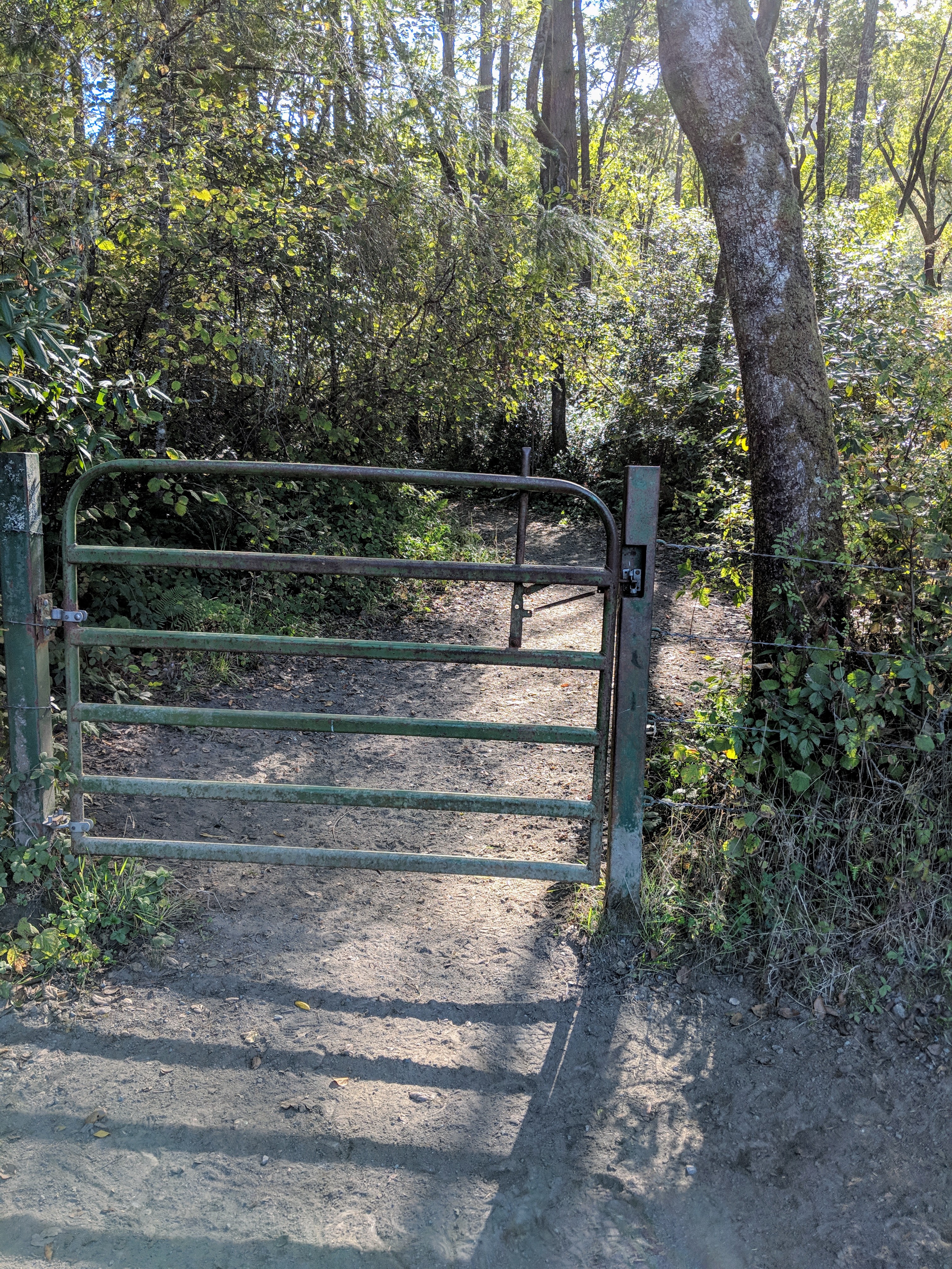 From Horseshoe Hill Rd. we connected to Hwy. 1 and walked on the highway for less than a mile. The Olema Valley Trailhead was easy to find (left side of the road) and had a sign warning of rough trail conditions. We lucked out, however, as the trail had been recently adopted by a local bicycle group and was in good condition. The trail began in a meadow that quickly became forest.