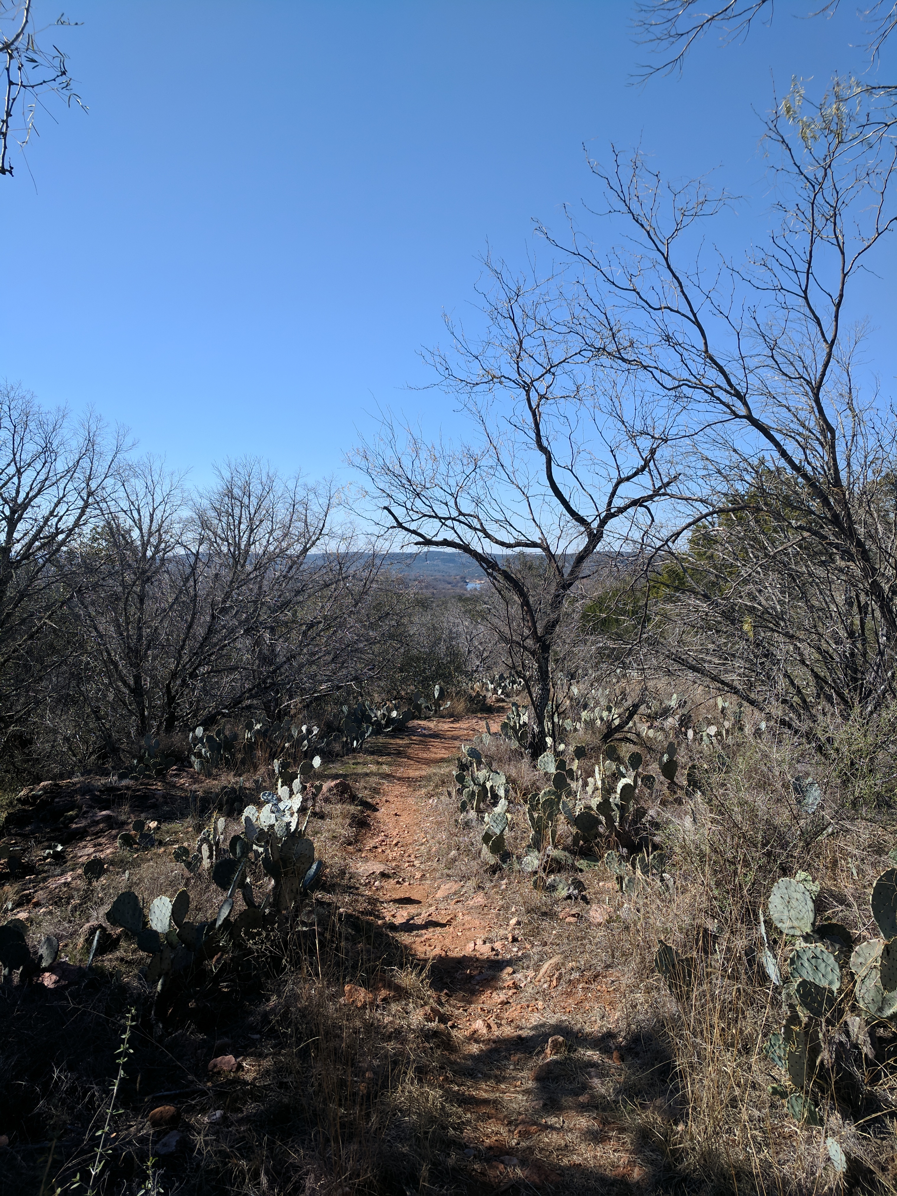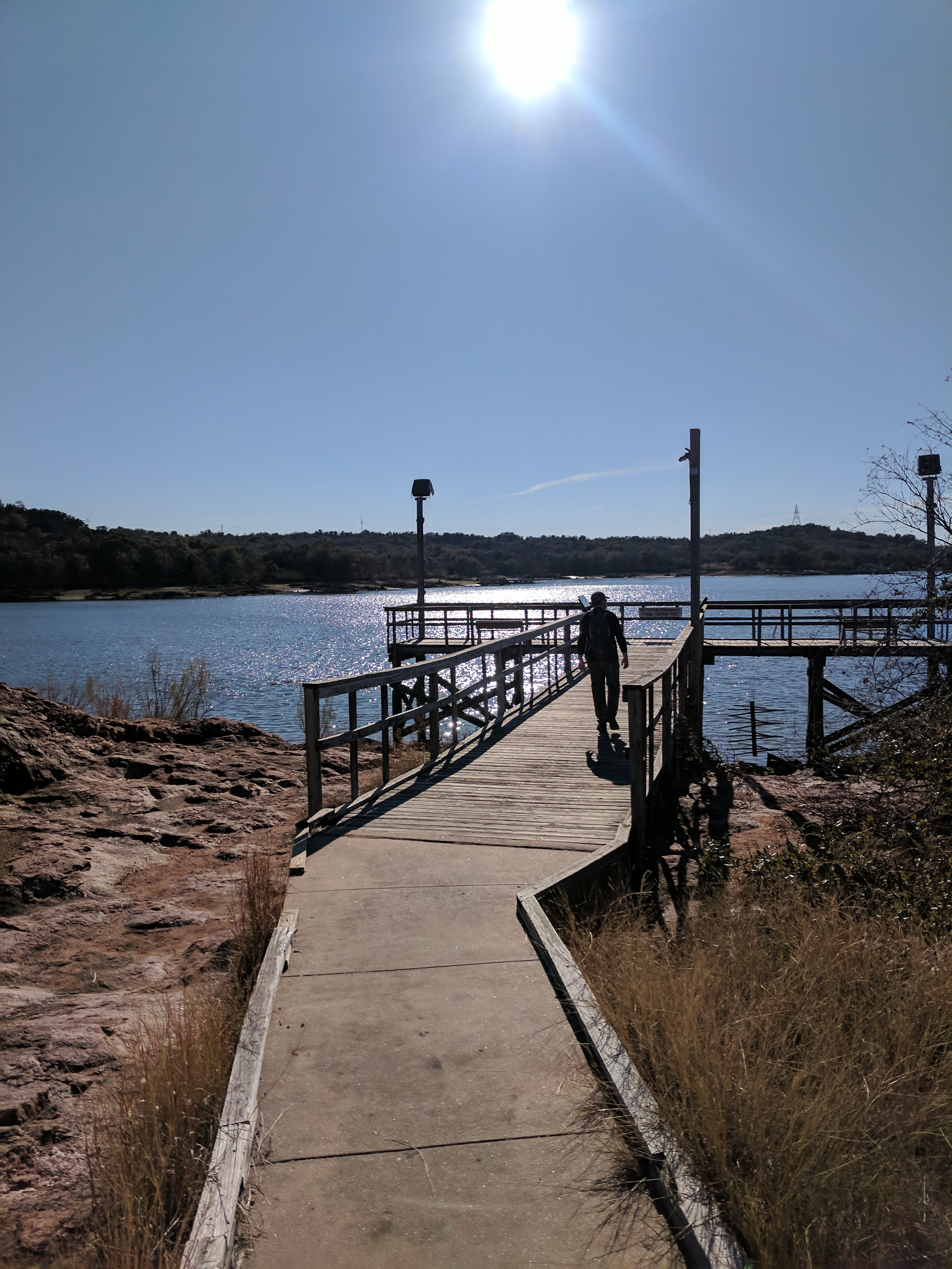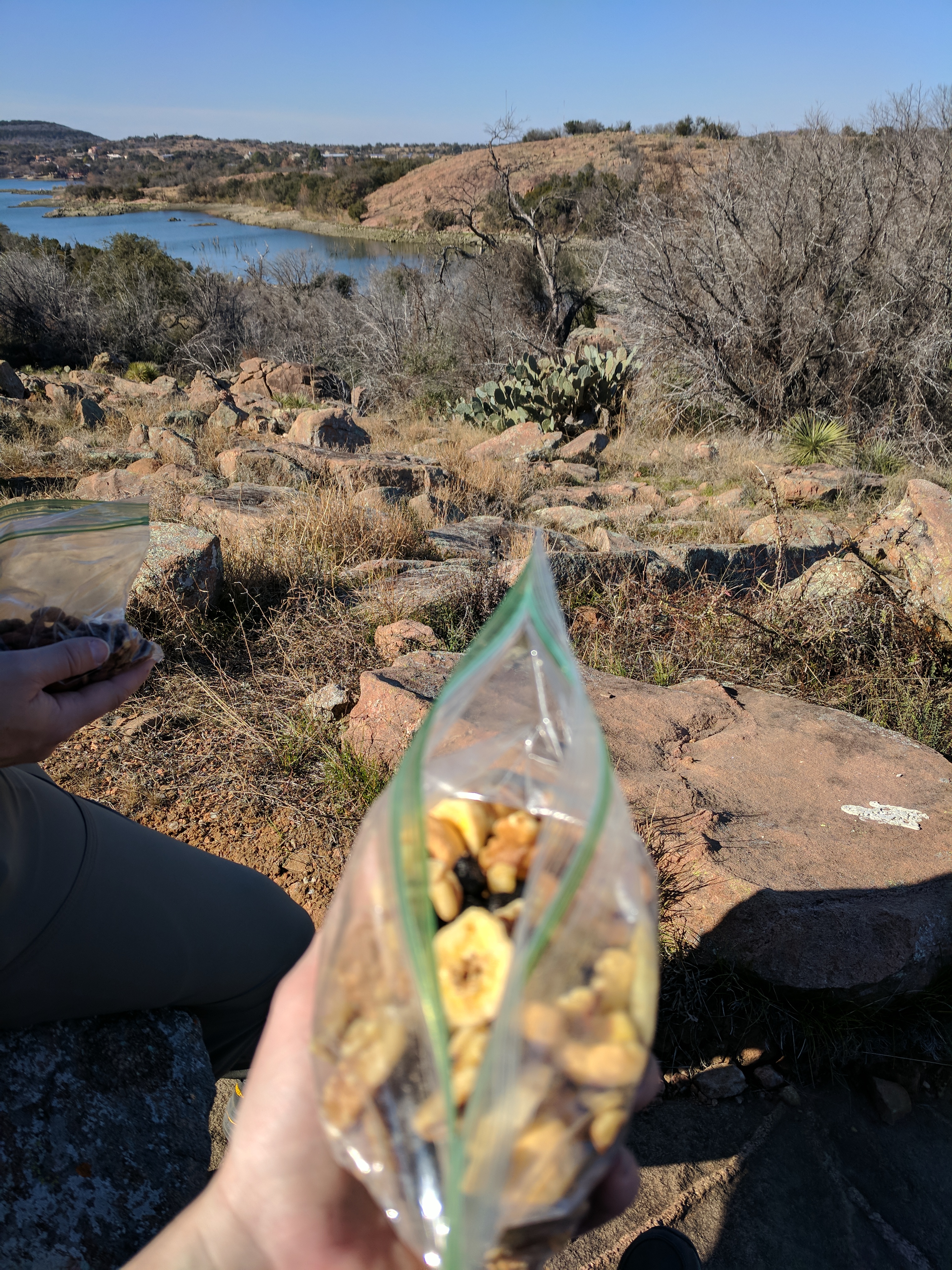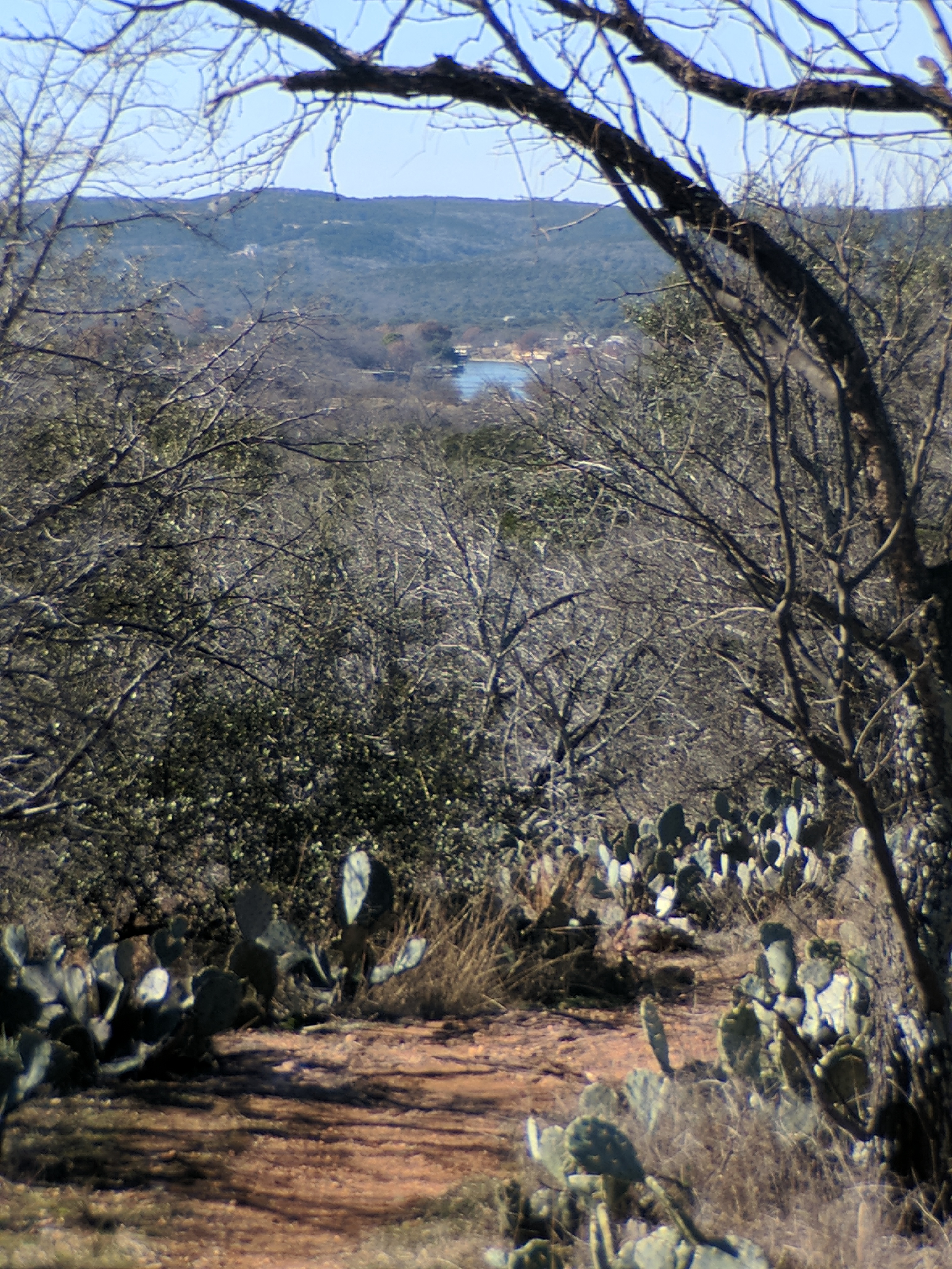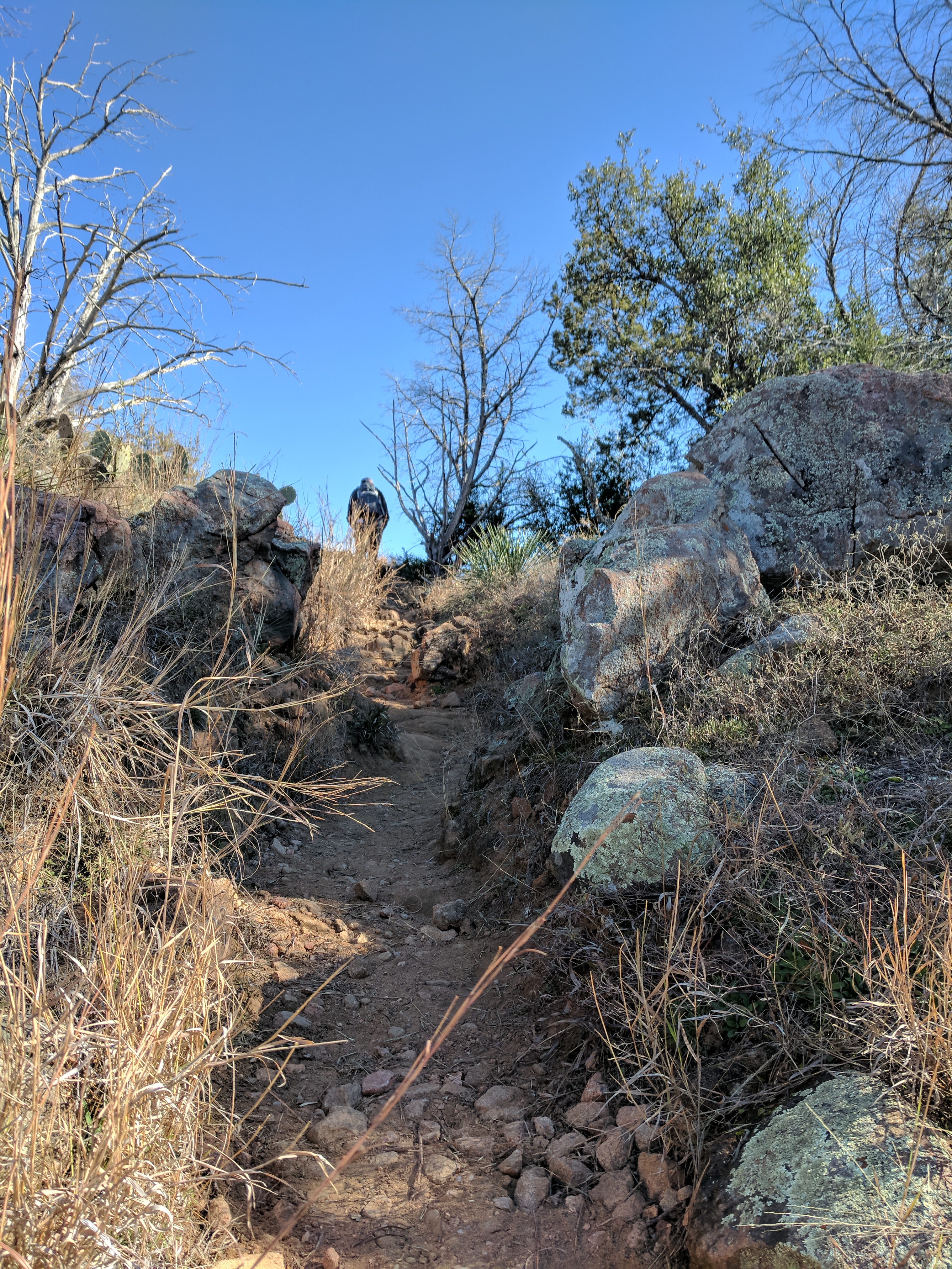 We left Thursday afternoon so we could begin hiking first thing Friday at Inks Lake State Park. [I confess to stopping for a little outlet shopping in Cypress on the way up…a girl’s gotta wear something besides hiking boots, after all.] Inks Lake was an unexpected gem! We lived in Texas for 4 years & never heard of it. Eric discovered it because he was trying to find hiking areas that DON’T allow hunting on weekends in the winter. Hunting IS allowed at this park but only on limited dates. We parked just past the entrance & walked a total of 8 miles, starting on Pecan Flats, then Woodlands, then Lake & finishing with Fisherman’s Trail. While there are really only enough trails to keep you busy for 1 day, we loved these trails because they were so diverse & never boring. [Inks Lake Trail Map]