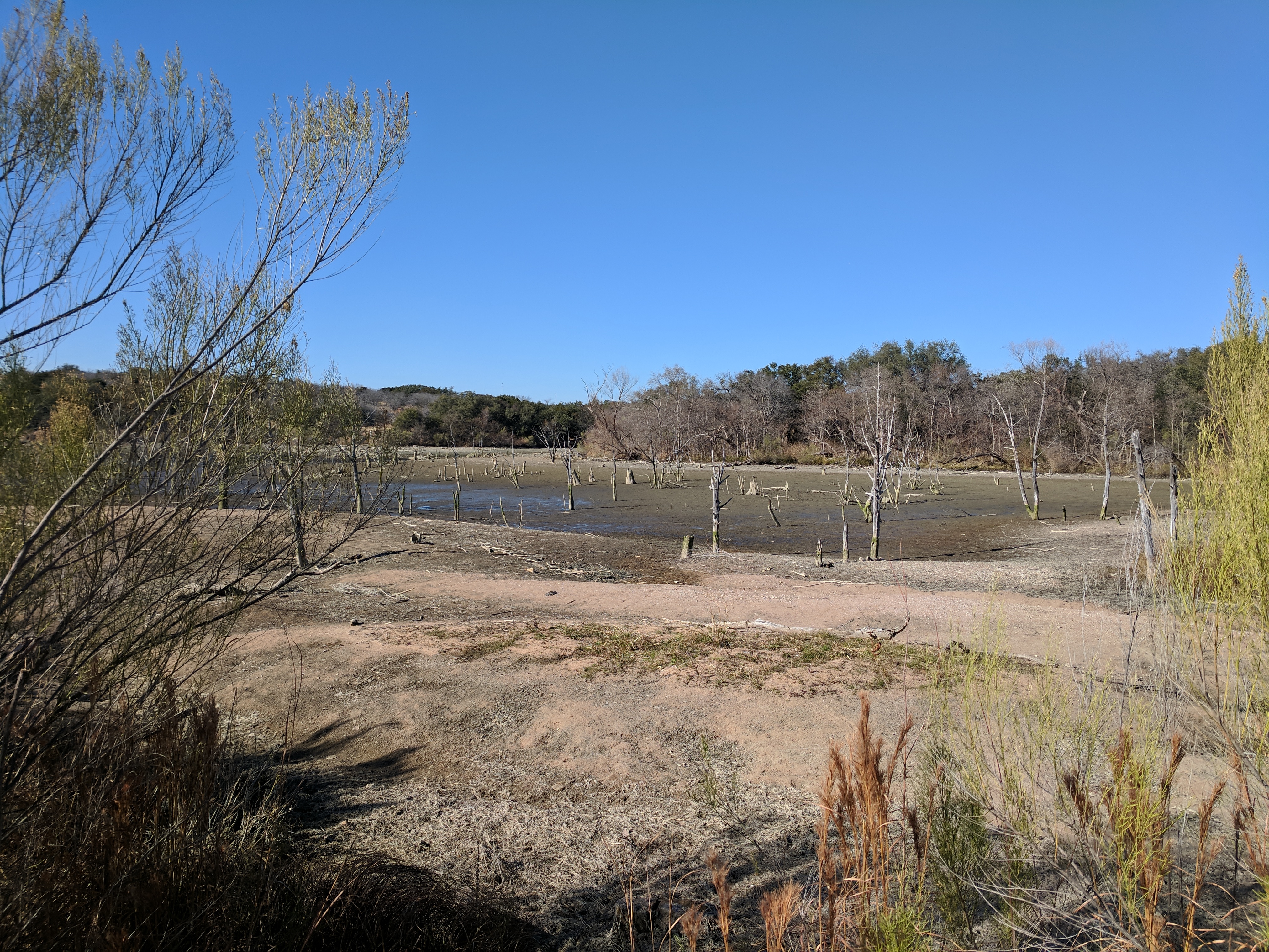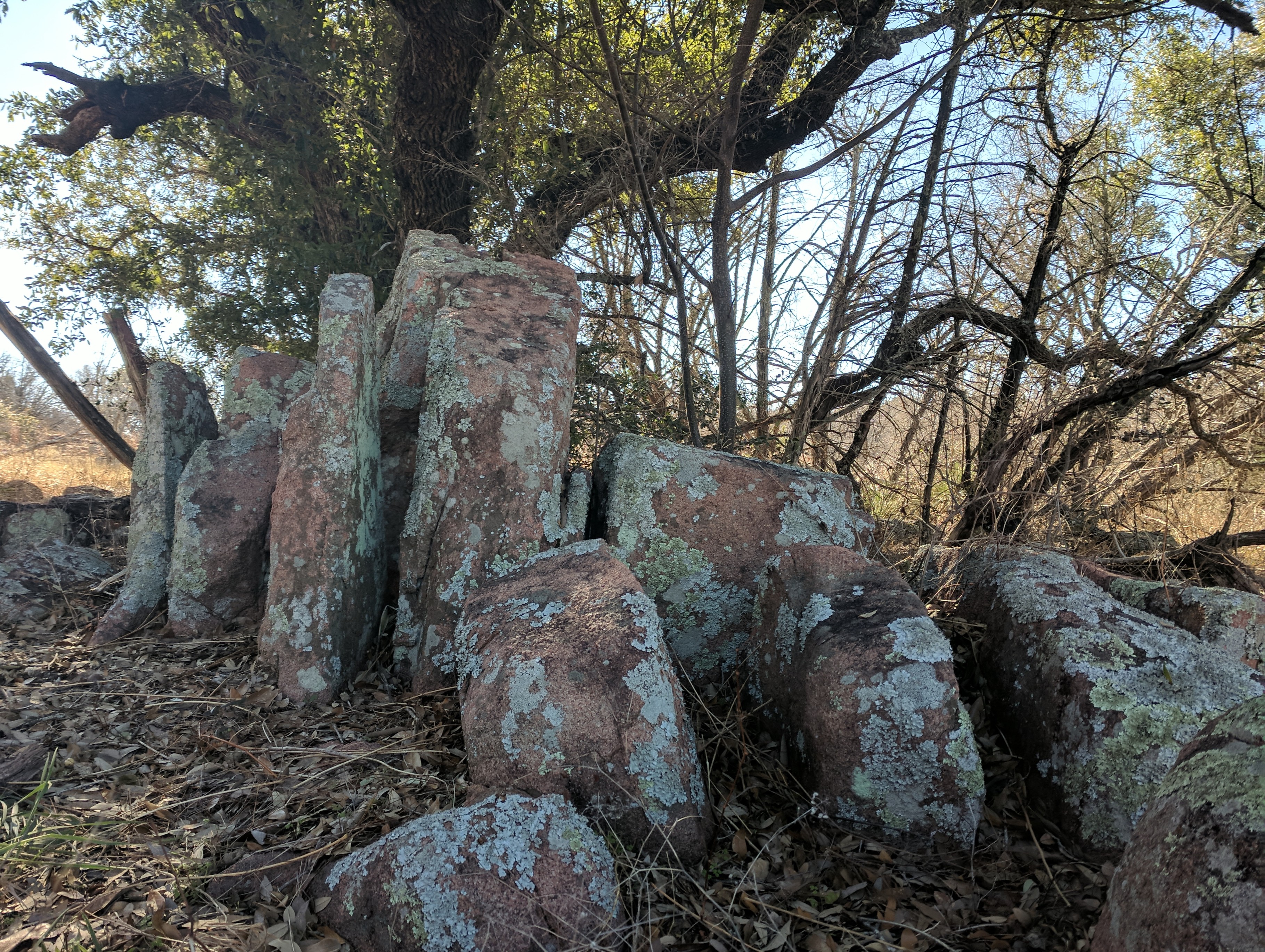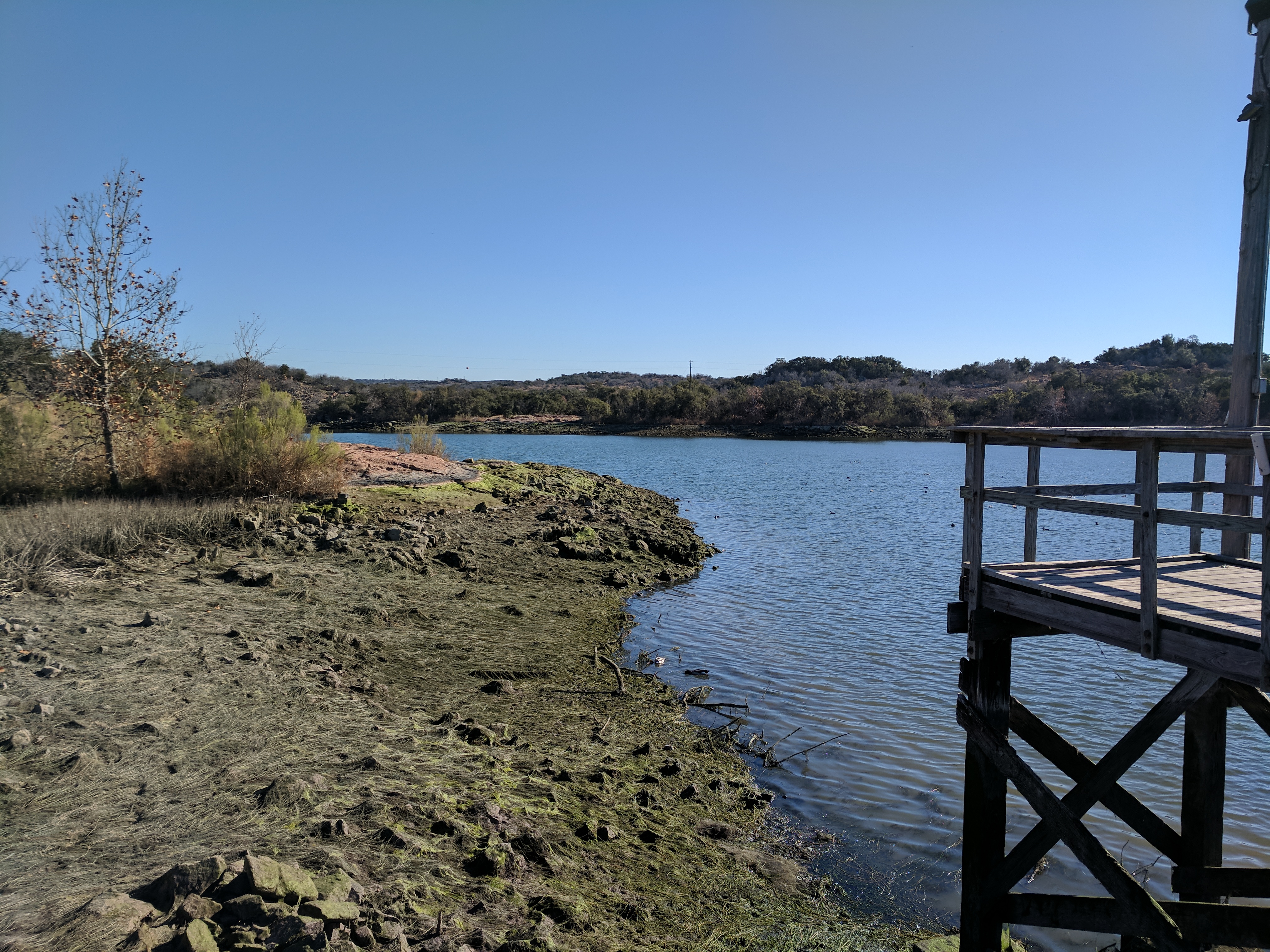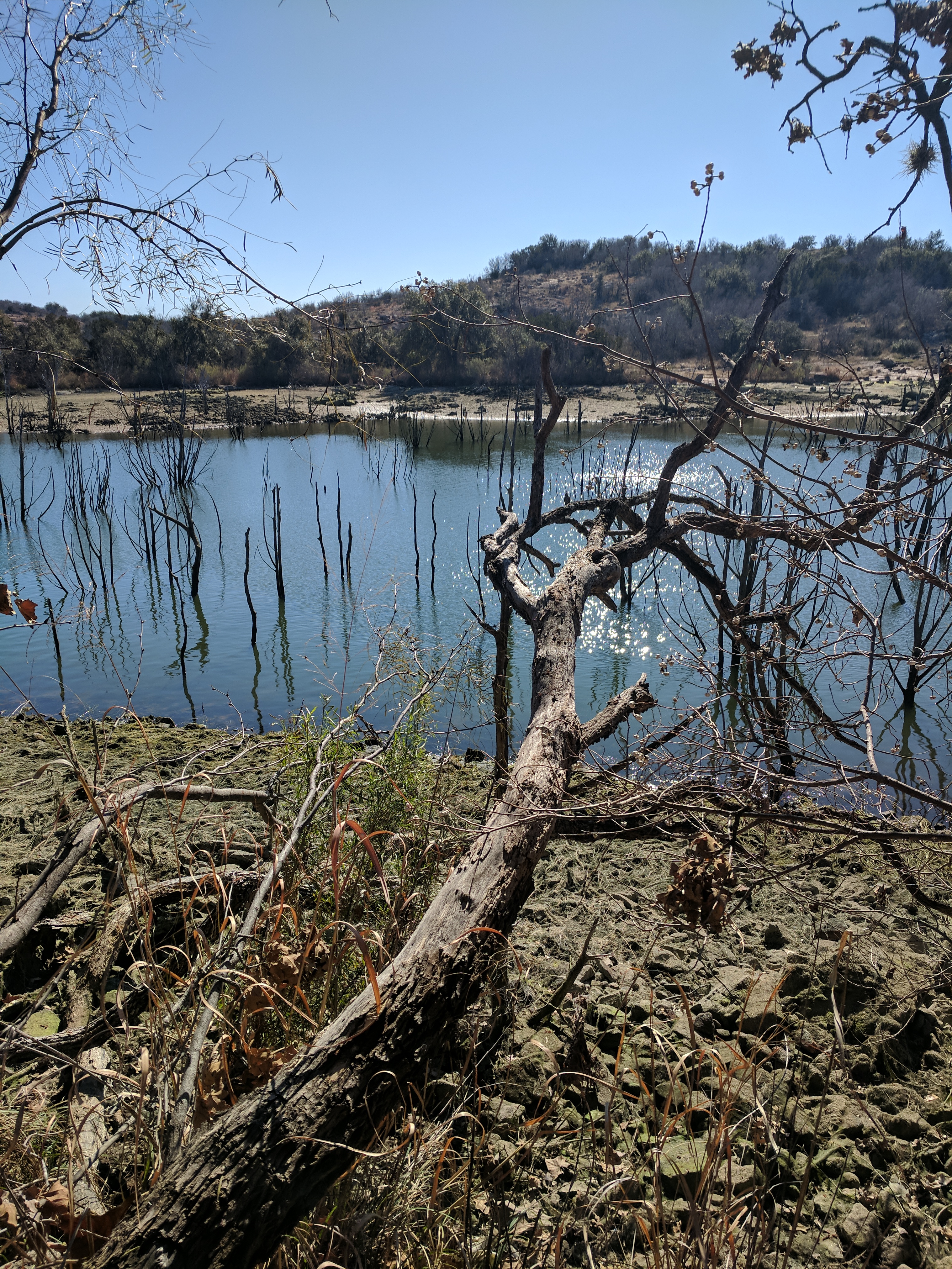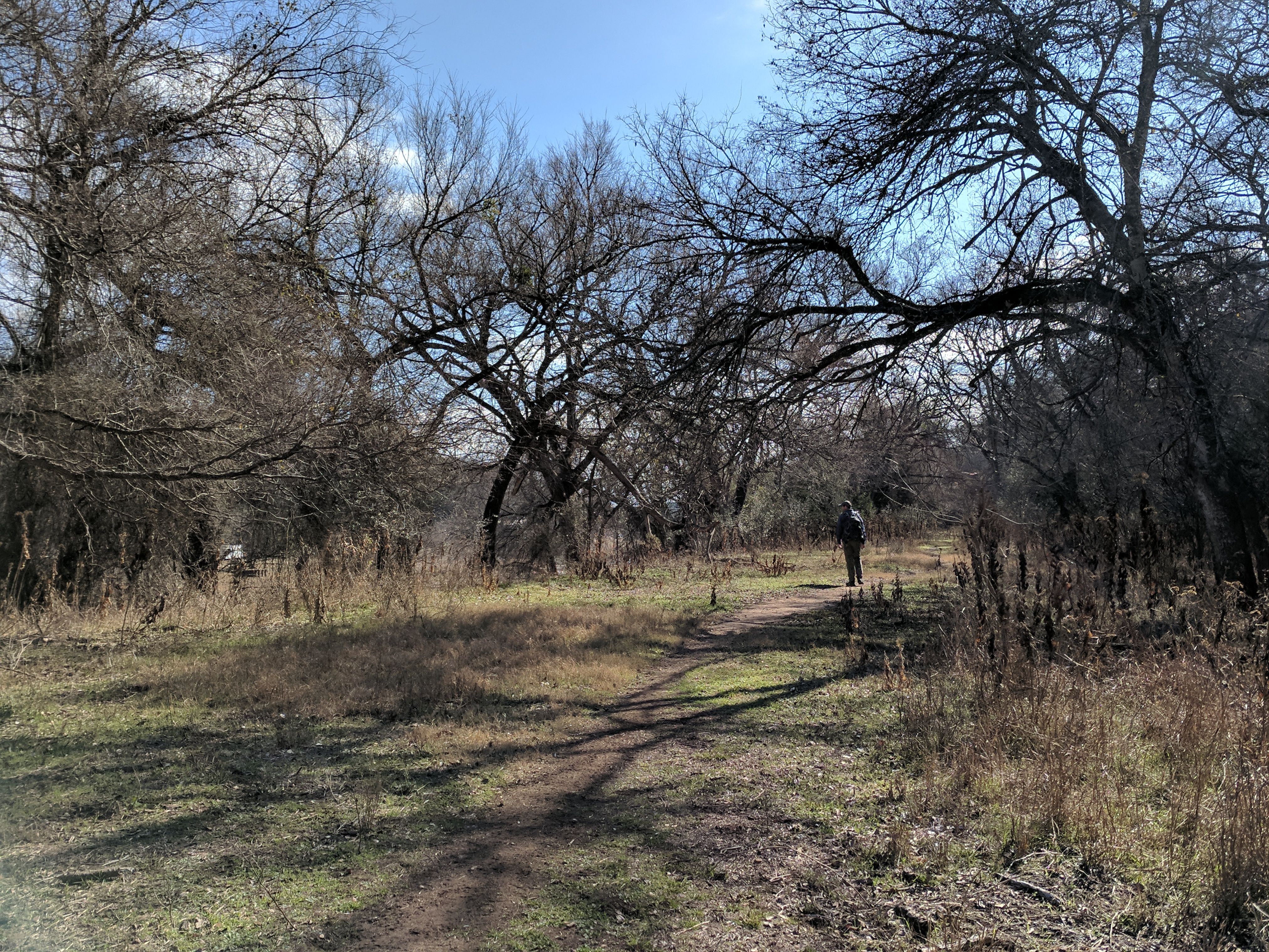 We left Thursday afternoon so we could begin hiking first thing Friday at Inks Lake State Park. [I confess to stopping for a little outlet shopping in Cypress on the way up…a girl’s gotta wear something besides hiking boots, after all.] Inks Lake was an unexpected gem! We lived in Texas for 4 years & never heard of it. Eric discovered it because he was trying to find hiking areas that DON’T allow hunting on weekends in the winter. Hunting IS allowed at this park but only on limited dates. We parked just past the entrance & walked a total of 8 miles, starting on Pecan Flats, then Woodlands, then Lake & finishing with Fisherman’s Trail. While there are really only enough trails to keep you busy for 1 day, we loved these trails because they were so diverse & never boring. [Inks Lake Trail Map]