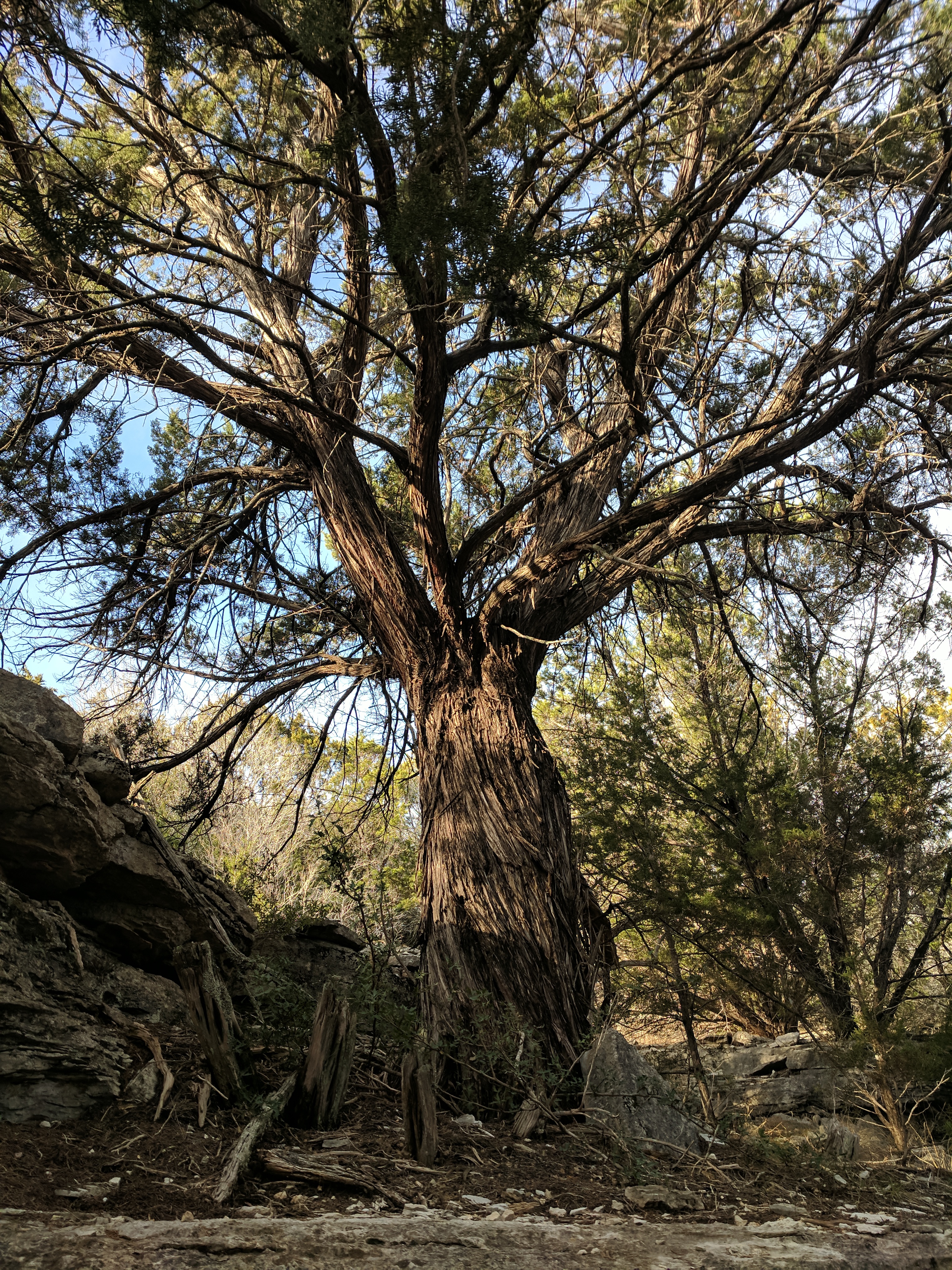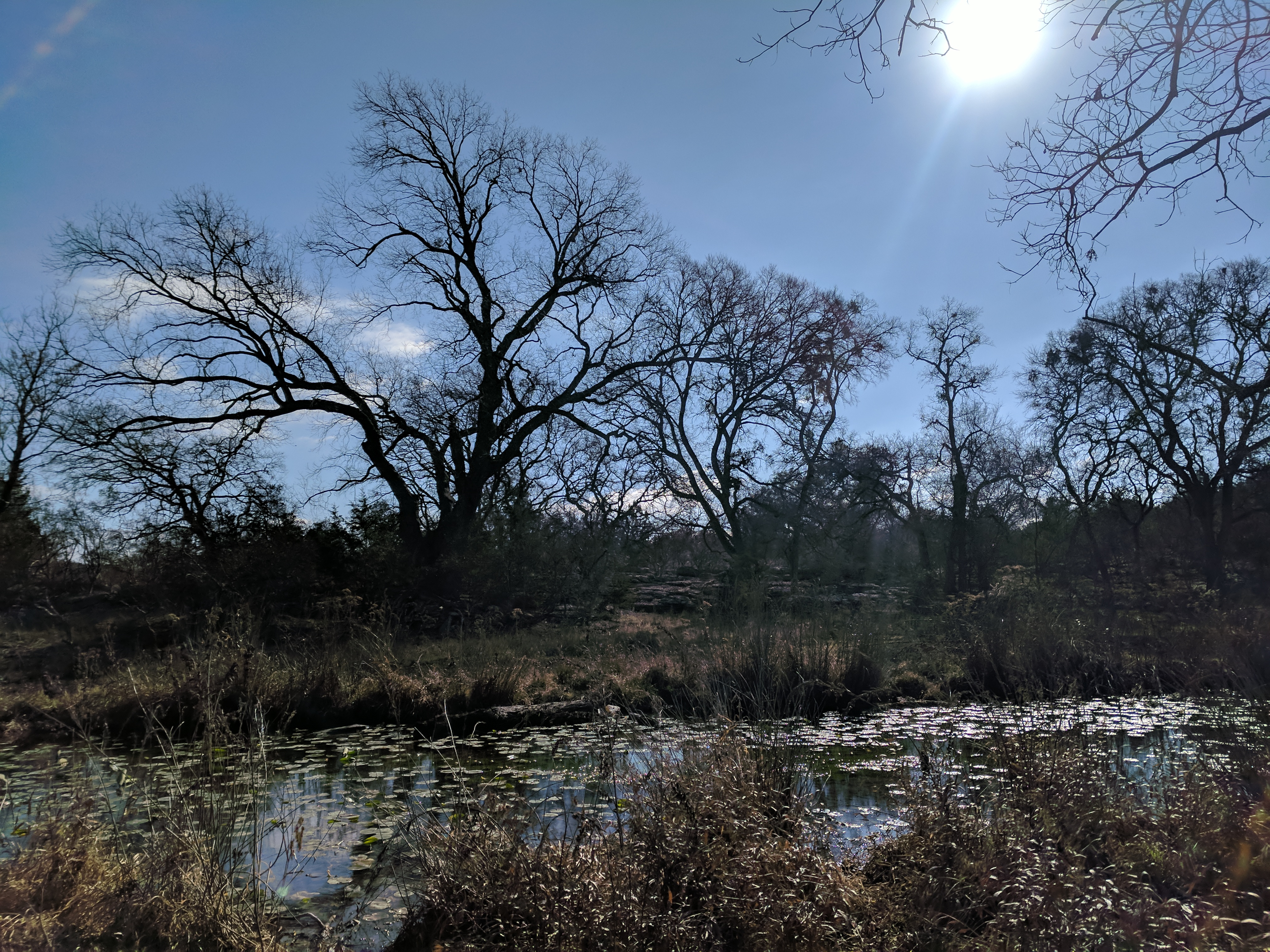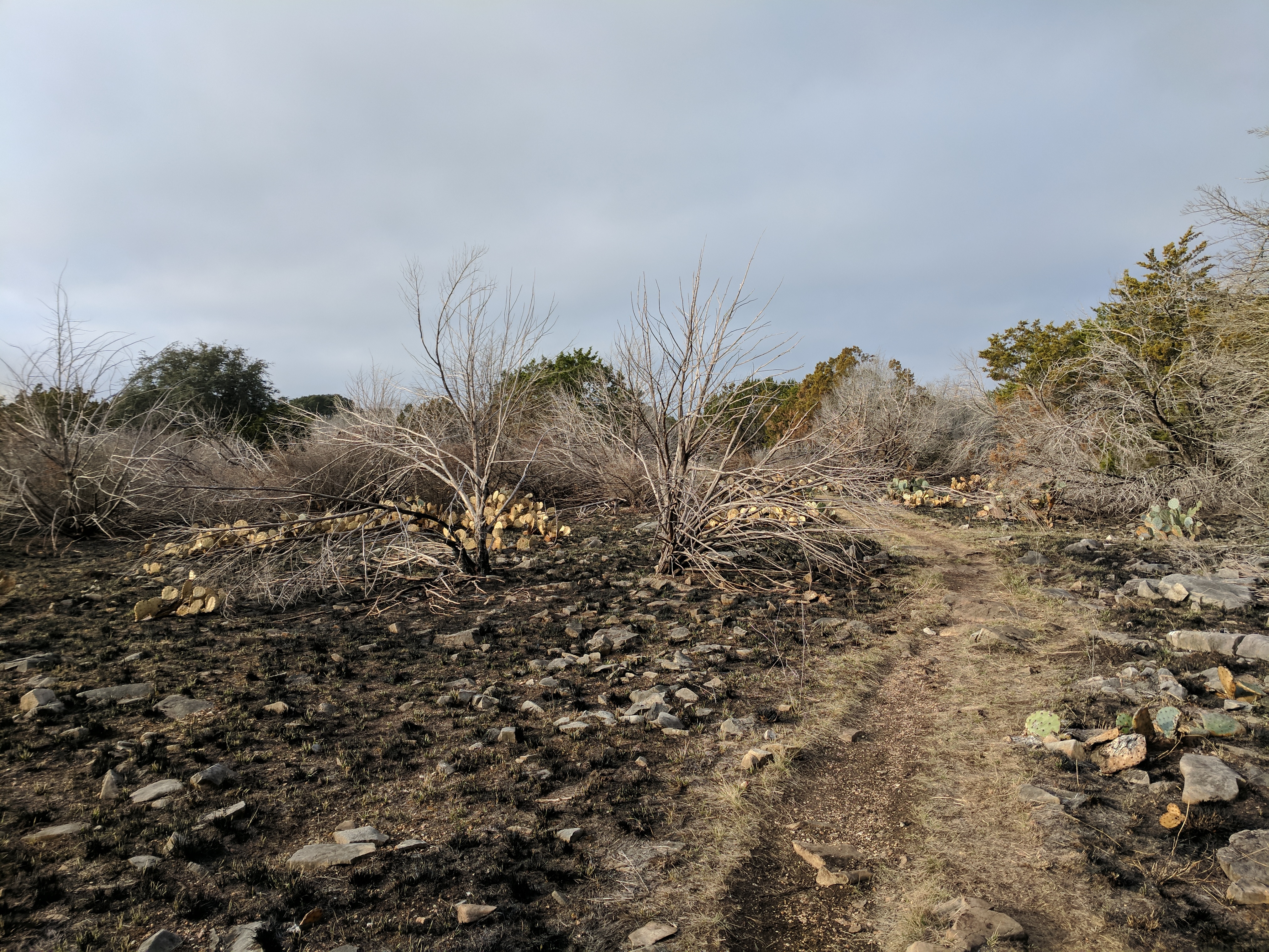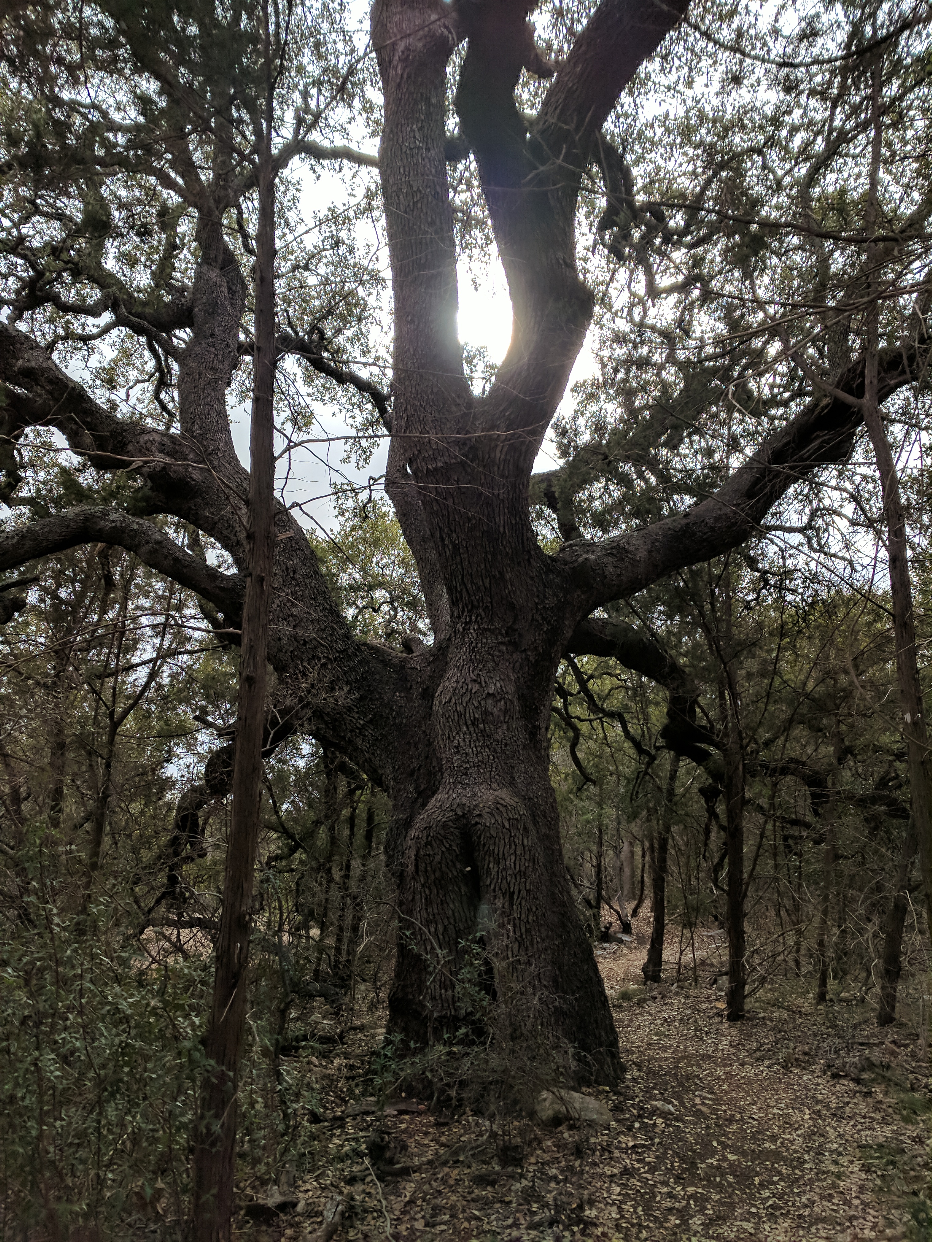 We saved our big hiking for Saturday, since Colorado Bend State Park has over 30 miles worth of trails. You could easily spend 3 days hiking just this park! The trails range from easy to difficult & we found that we preferred the difficult ones because they were MUCH more interesting & some of the “easy” trails actually weren’t that easy. The drive to Colorado Bend doesn’t offer much scenery & the entrance to the park is very unimpressive, but WOW! Once you get on the trail & head deeper into the park, you’ll be amazed at the diverse landscape! We parked at the Cedar Chopper Loop trail entrance & hiked a total of 9 miles that day. The Cedar Chopper Loop had recently undergone a controlled burn, so it wasn’t very pretty, but we were only on it for a short time until we connected to the Tinaja Trail which was AWESOME! The first portion of Tinaja was our favorite, offering crisp white rocky terrain with moderately challenging ups & downs. It really wasn’t a difficult trail unless you have issues with footing — it was a VERY rocky trail. Once you get to the Tinaja bend (to the north rim), it’s less shady (so keep that in mind when you’re planning what time to start your hike & what direction to begin).