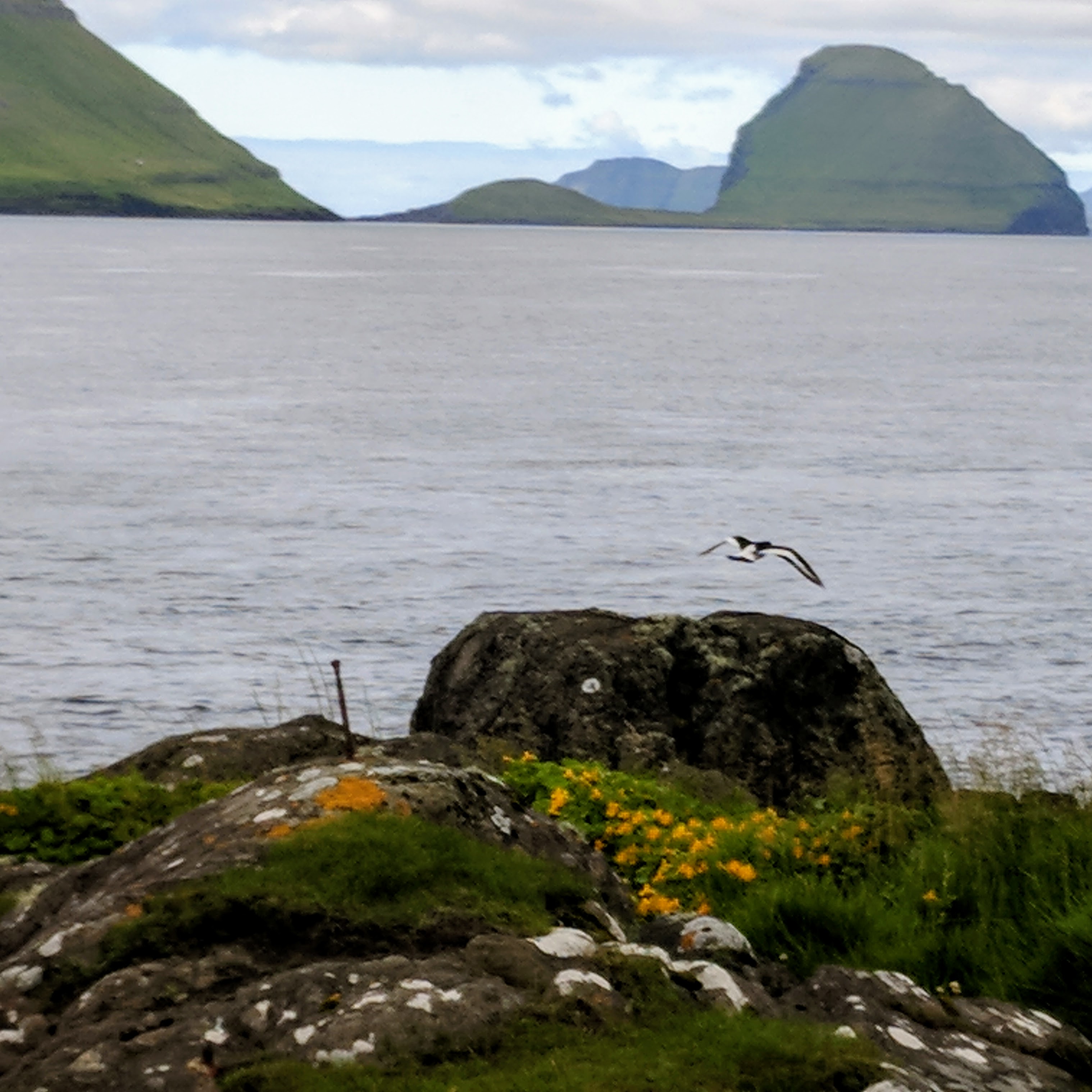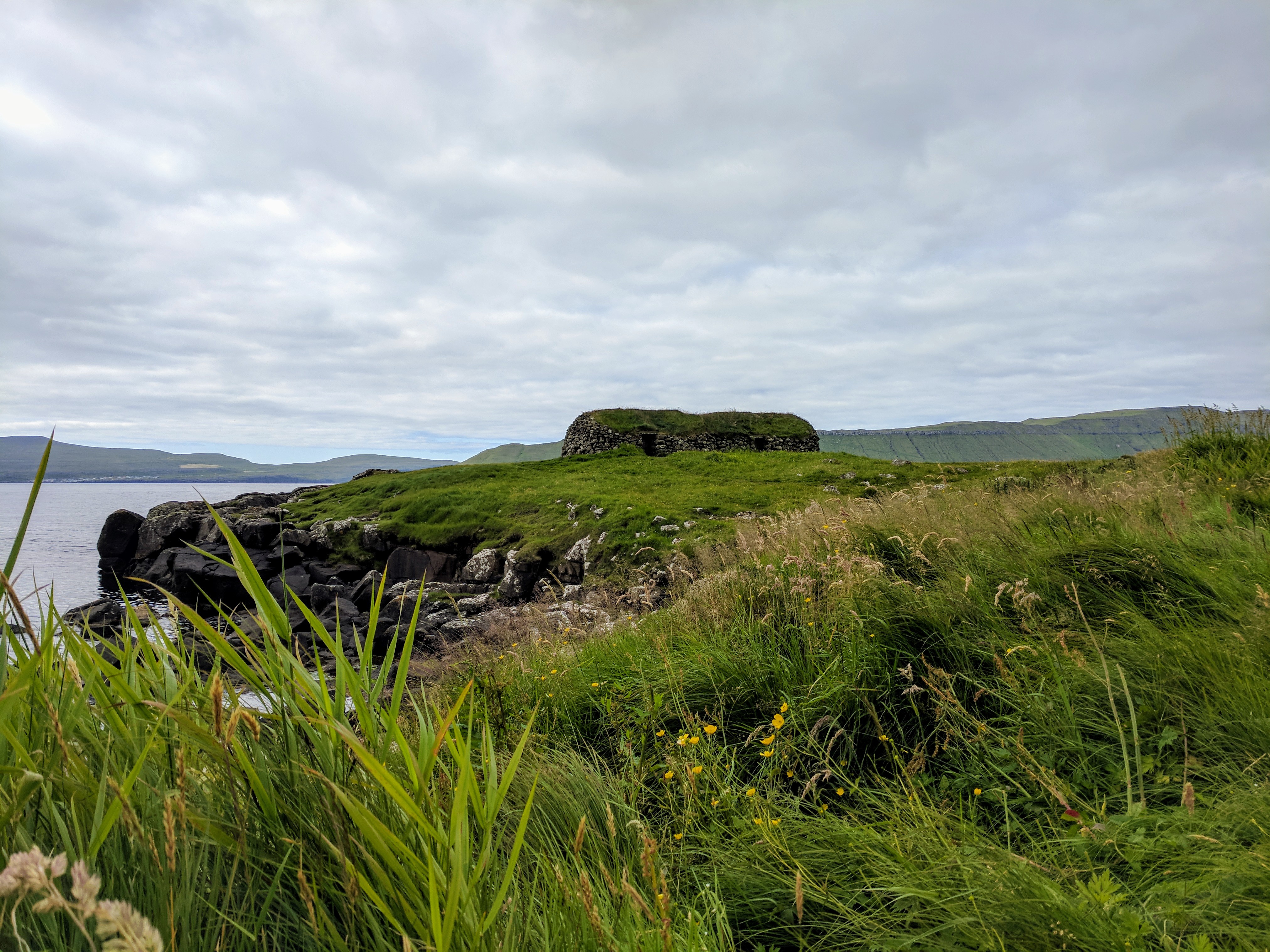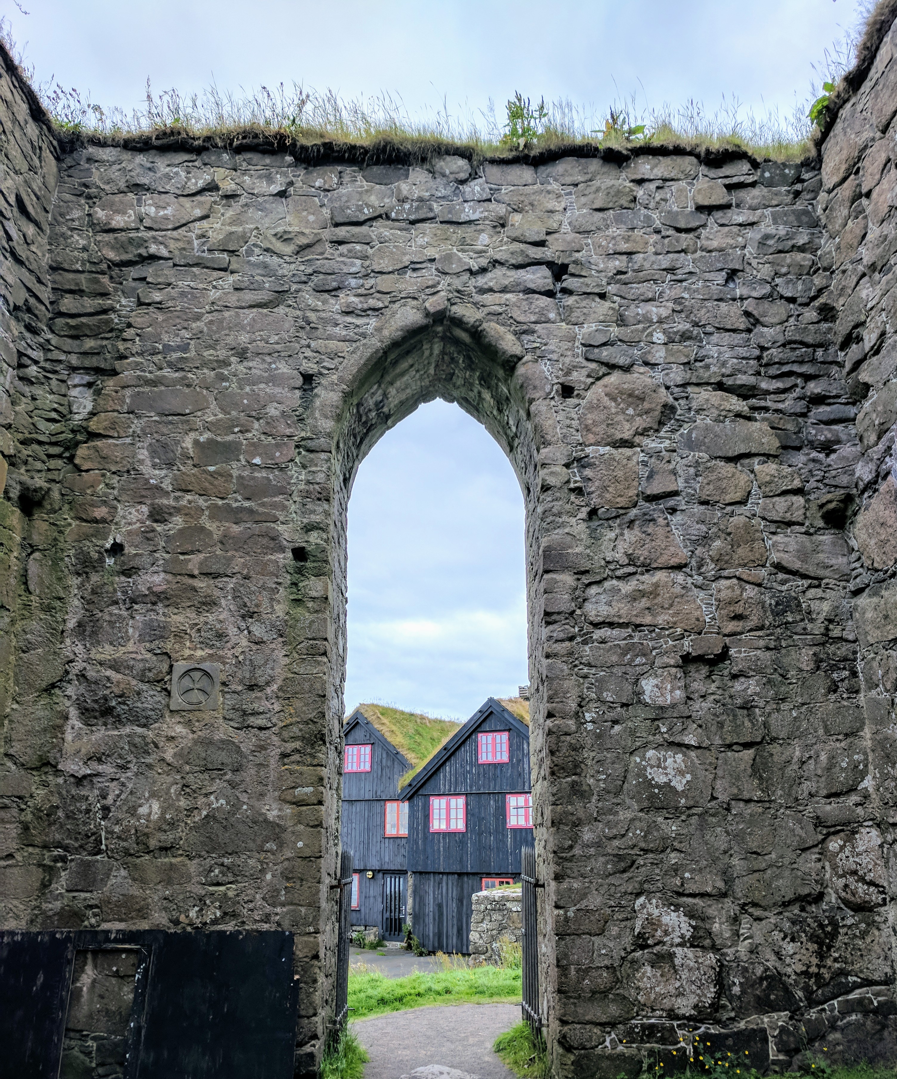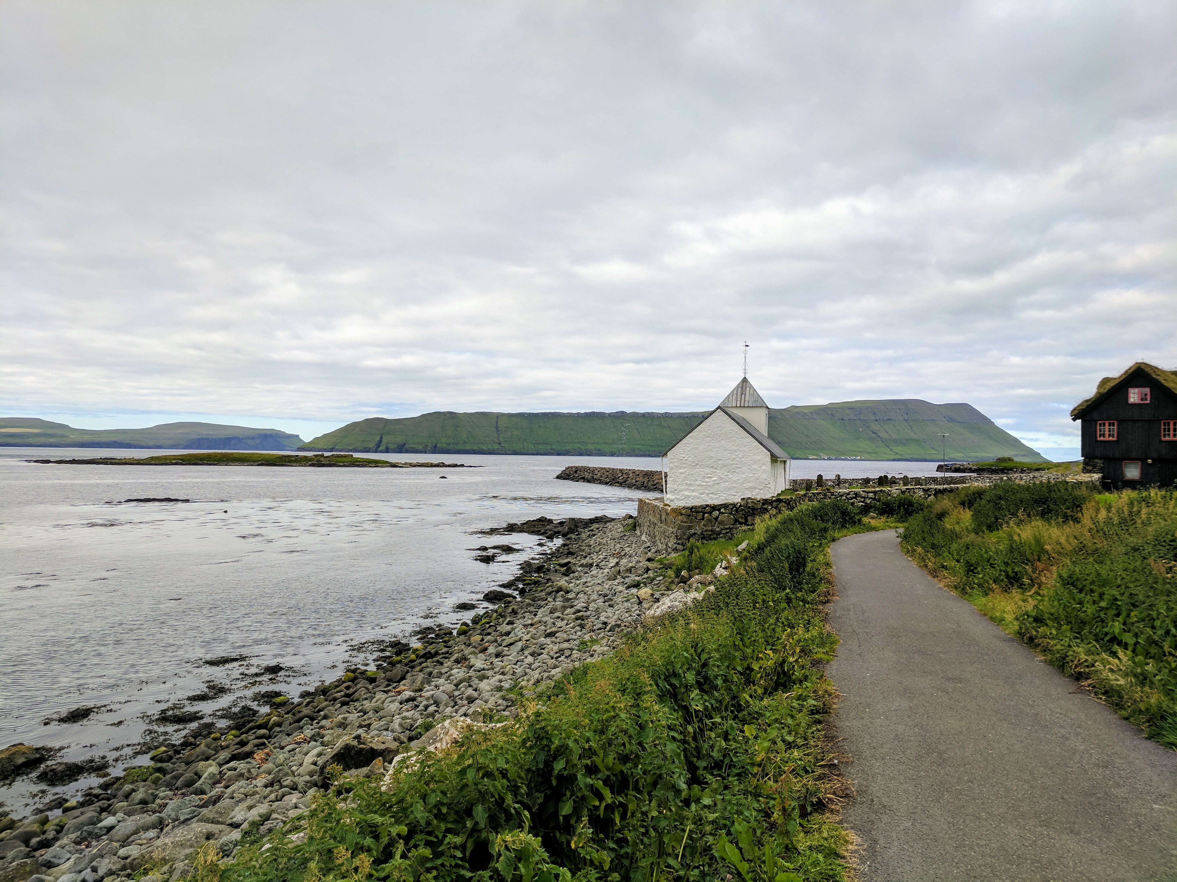 For our first day on Streymoy, we explored the village of Kirkjubøur which is at the southernmost tip of the island. There is a nice hike from Tórshavn to Kirkjubøur that takes about 2 hours, but we drove instead due to weather. Kirkjubøur is one of the most important historic sites in the Faroe Islands. It has an 11th century farmhouse, a church from the 12th century which is still in use, and the 13th century Magnus Cathedral which was never completed but is fiercely protected by conservationists. We saw someone painstakingly restoring a wall while we were there. We took our time strolling along the water, watching oyster catchers take flight with their beautiful white-striped wings.