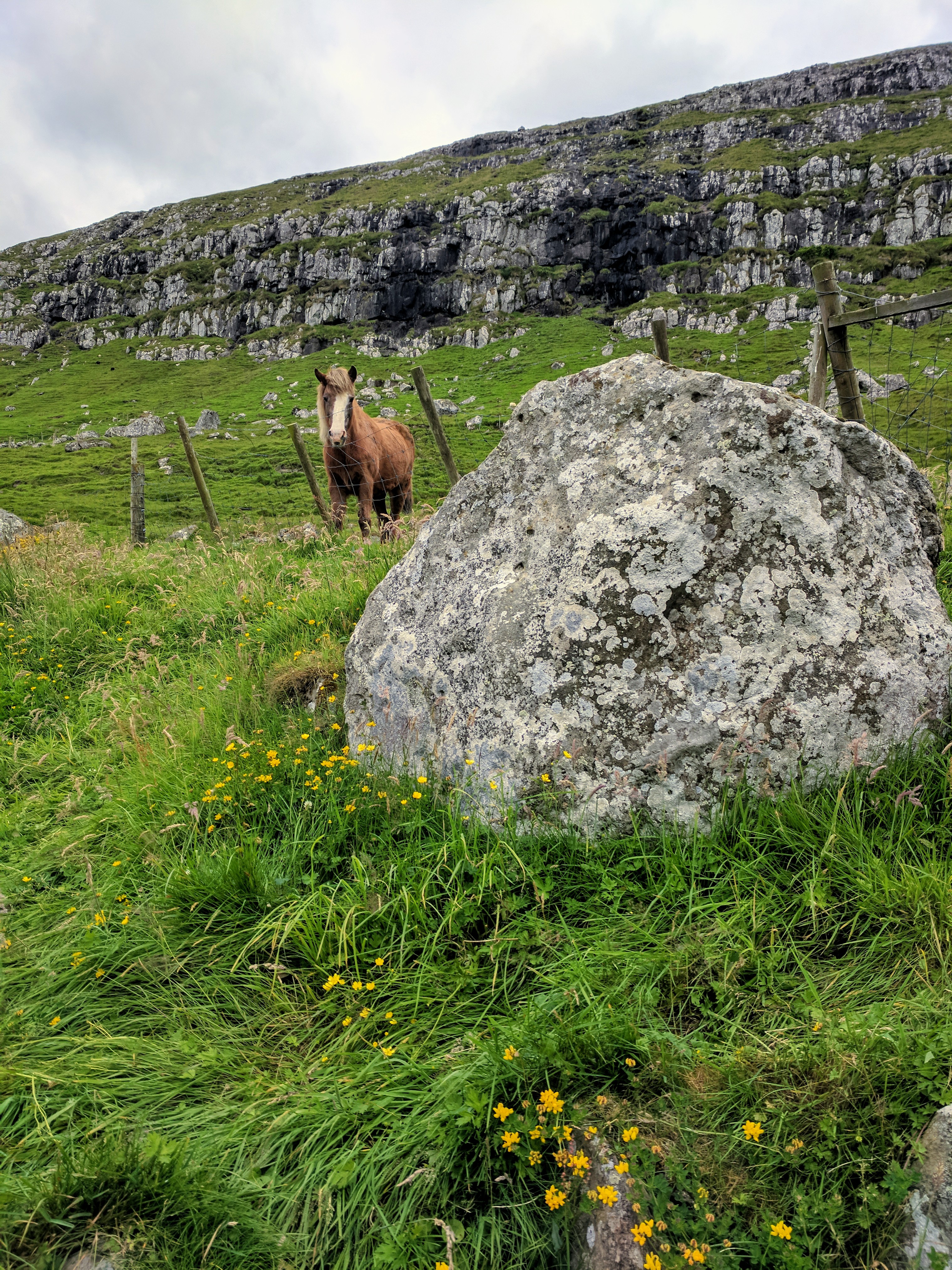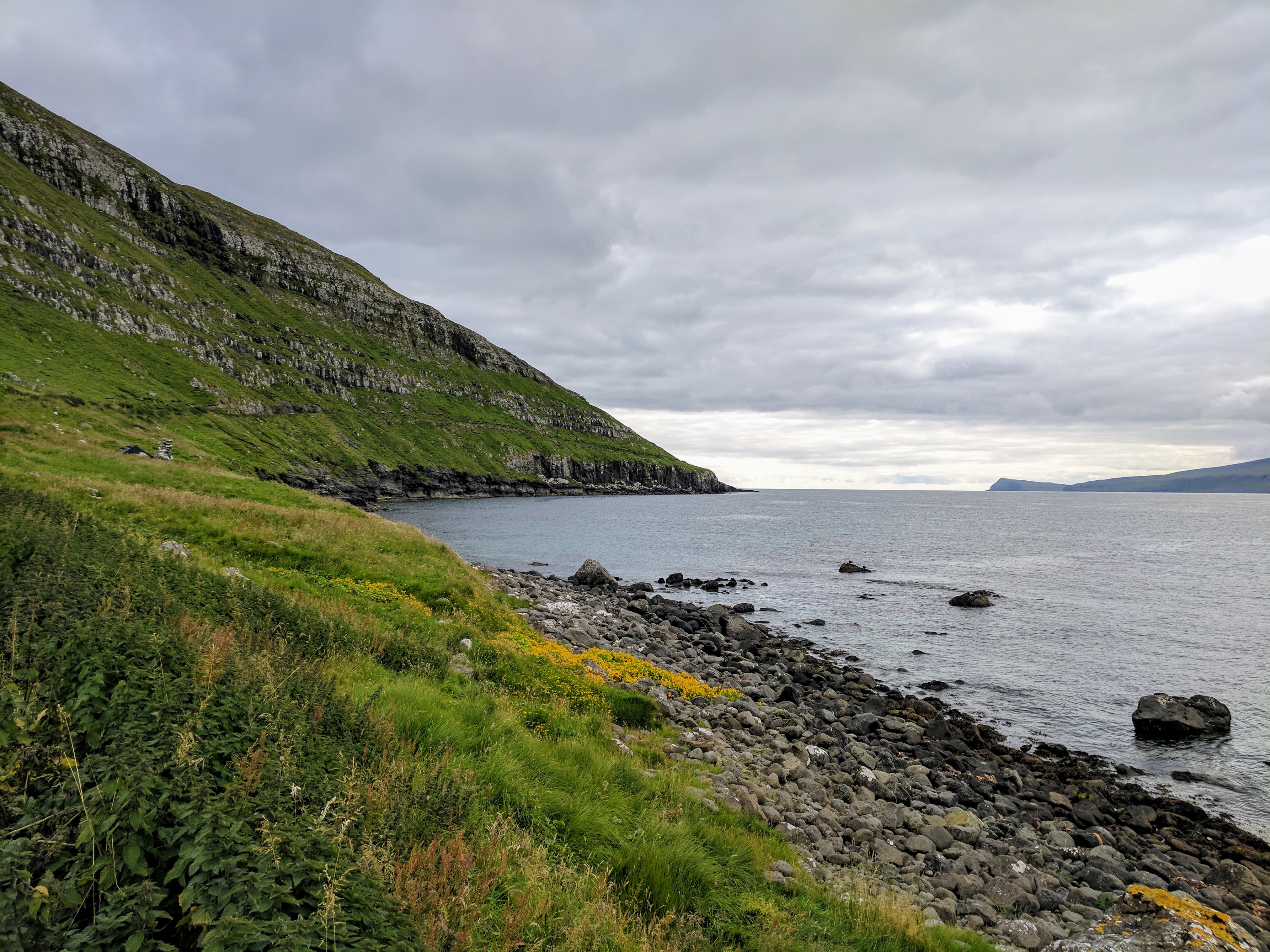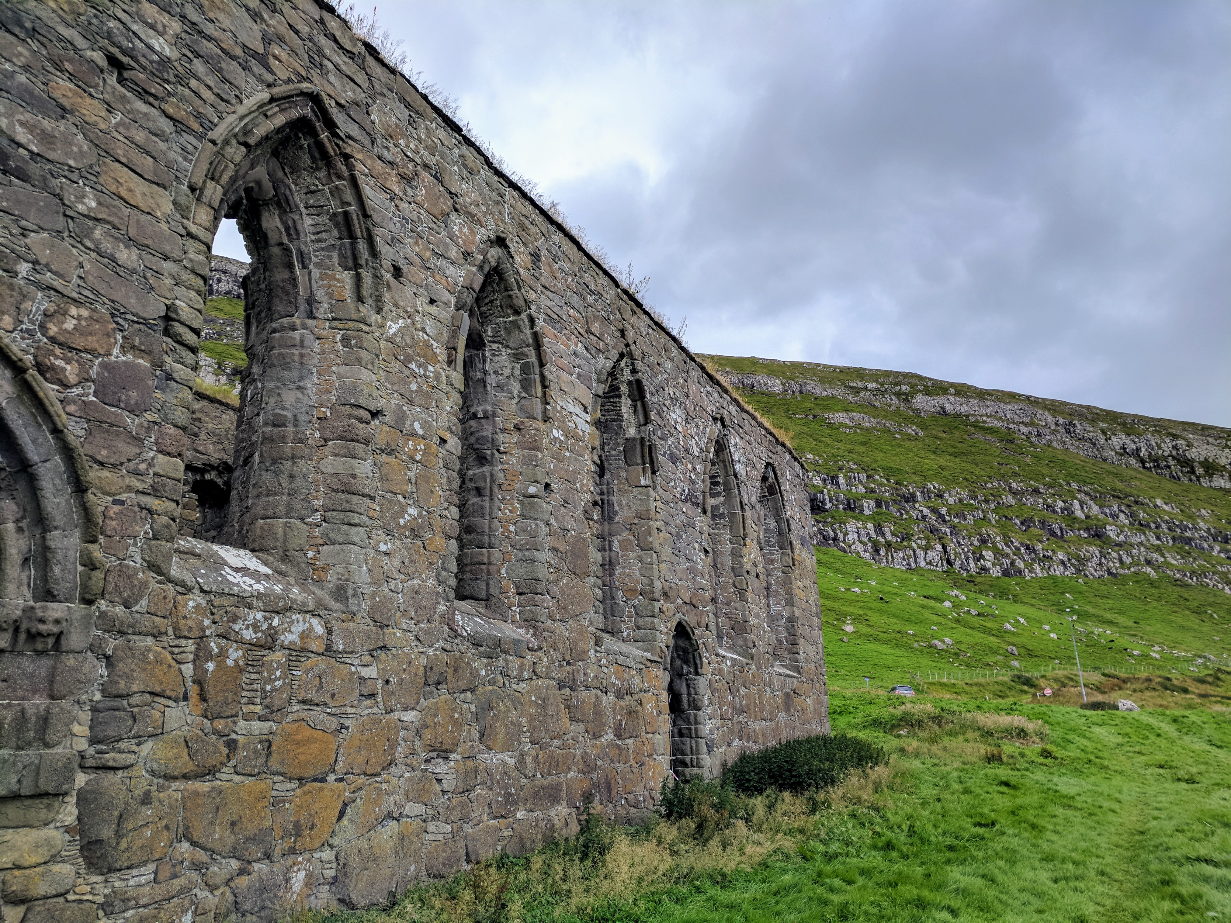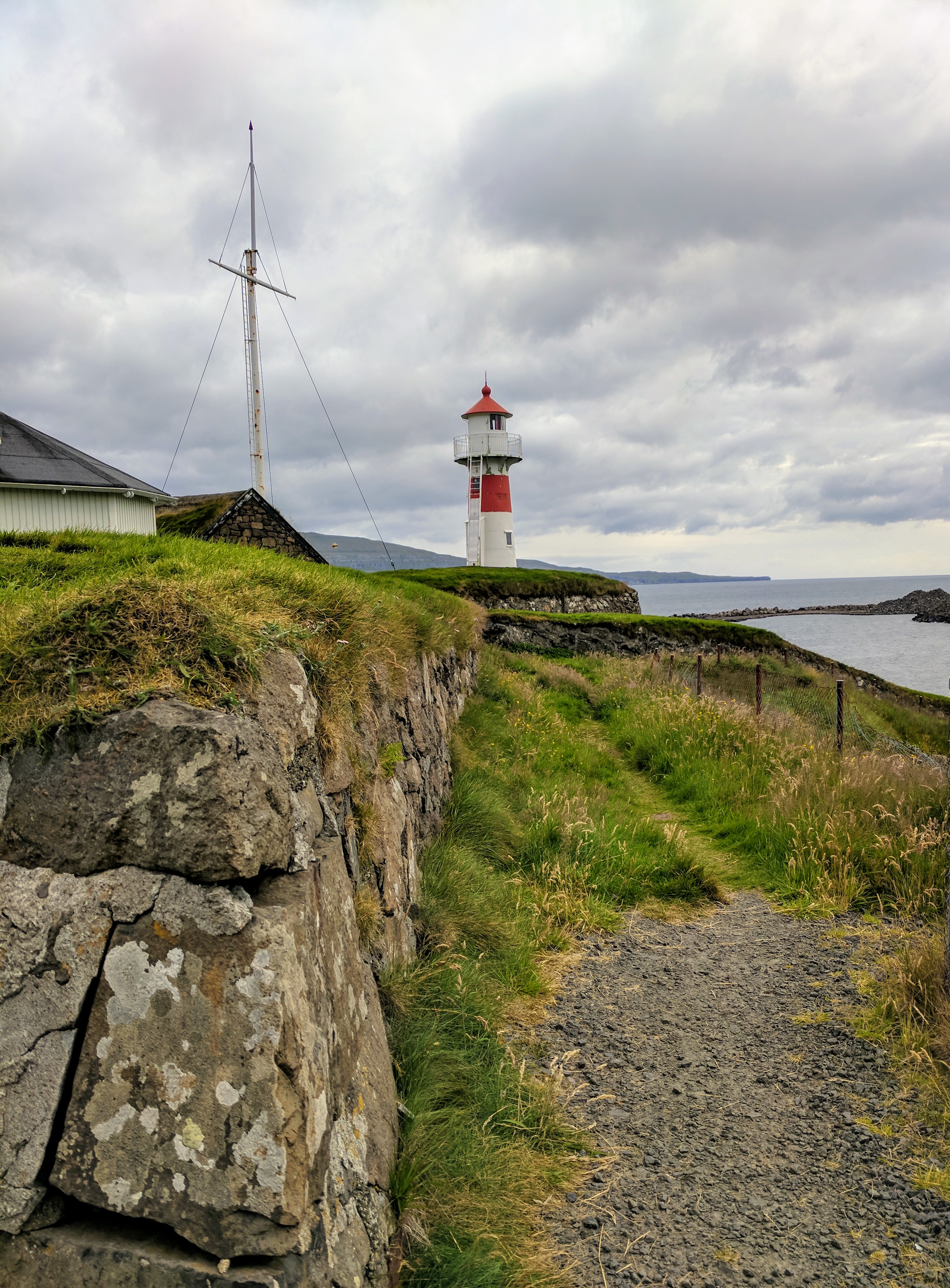 For our first day on Streymoy, we explored the village of Kirkjubøur which is at the southernmost tip of the island. There is a nice hike from Tórshavn to Kirkjubøur that takes about 2 hours, but we drove instead due to weather. Kirkjubøur is one of the most important historic sites in the Faroe Islands. It has an 11th century farmhouse, a church from the 12th century which is still in use, and the 13th century Magnus Cathedral which was never completed but is fiercely protected by conservationists. We saw someone painstakingly restoring a wall while we were there. We took our time strolling along the water, watching oyster catchers take flight with their beautiful white-striped wings.