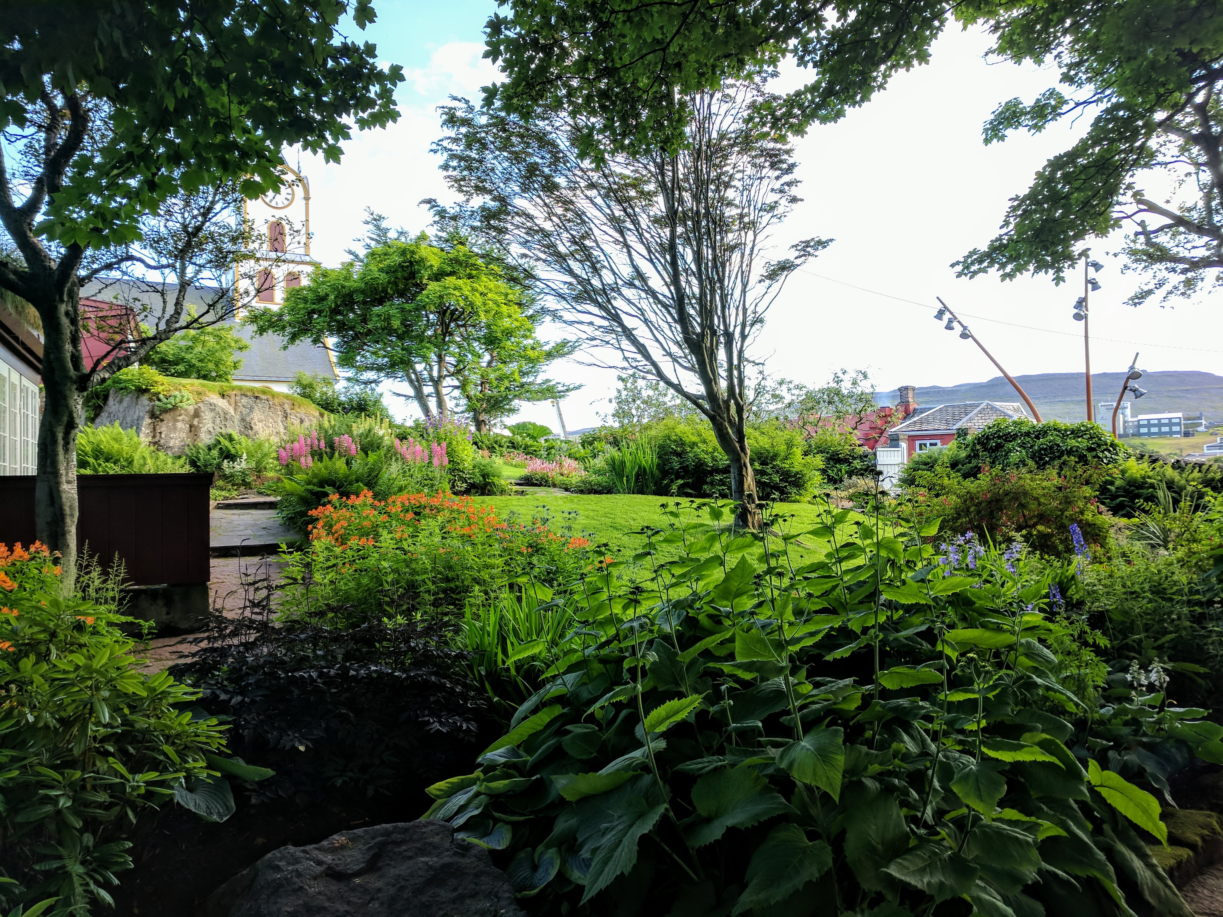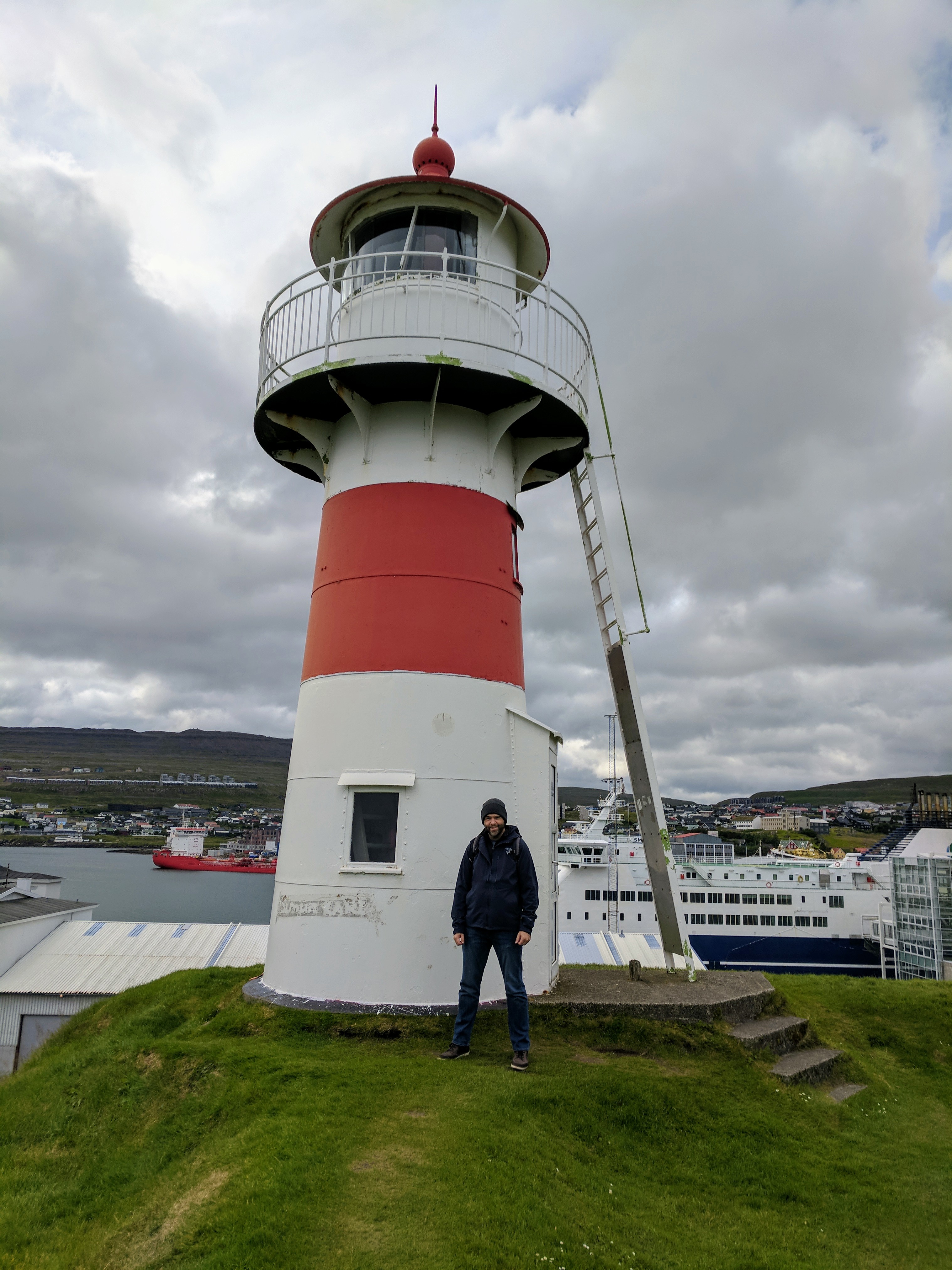 We even managed to slip in a matinee at the cathedral. It was a free concert, performed by local composer Kim Kristensen and percussionist Rogvi a Rogvu. Havnar kirkja, the Tórshavn cathedral, was beautiful and looked like a ship on the inside. Its original foundation was built in 1788 but most of what we saw was from 1865. All of the pews had doors, the ceilings were painted blue with yellow stars, and there were three model ships hanging from the ceiling.