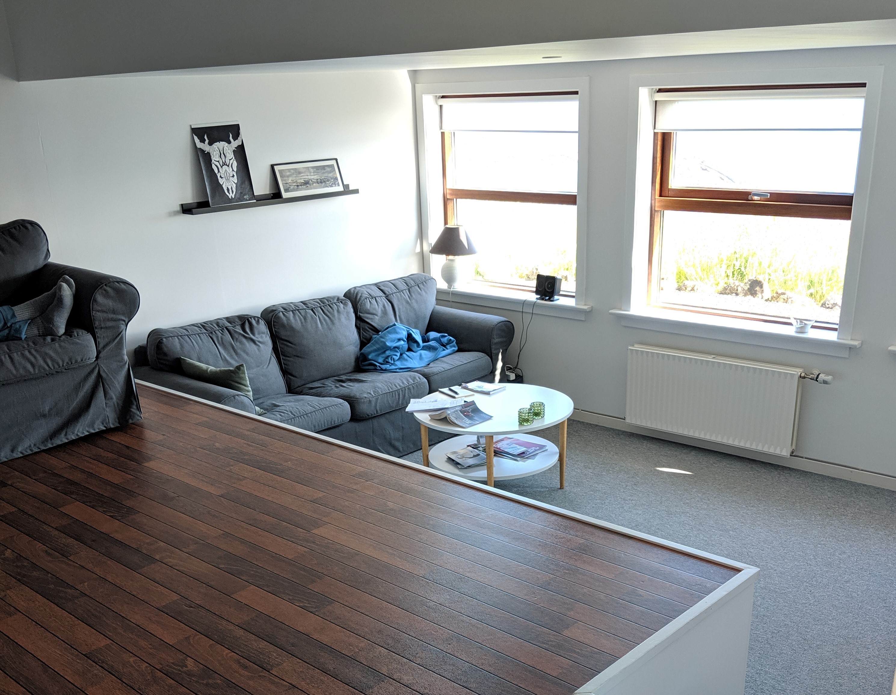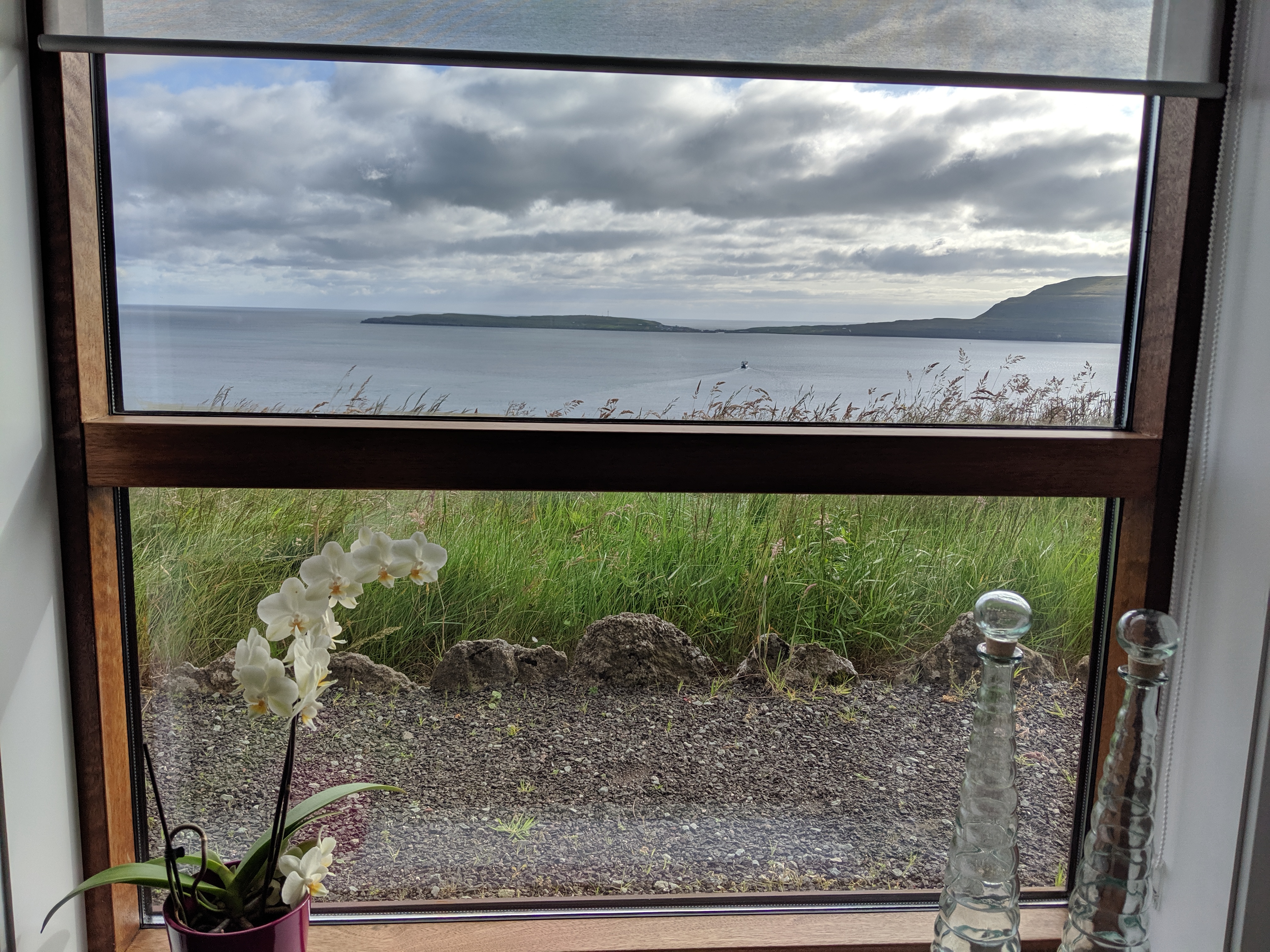 Our AirBnB in Argir, just outside the city limits of Tórshavn, had every comfort we needed: beautiful views, fully stocked kitchen, washing machine, and a comfy living room stocked full of books! I loved looking through the books, many of which were in Danish but were very familiar titles. Besides the lovely ocean view, my favorite memory of this lodging will forever be of me trying to YouTube how to work a European washing machine. All the buttons were in Danish and Google Translate was really not helpful. I’m still not sure what settings I used, but the clothes smelled clean and that’s all that mattered.