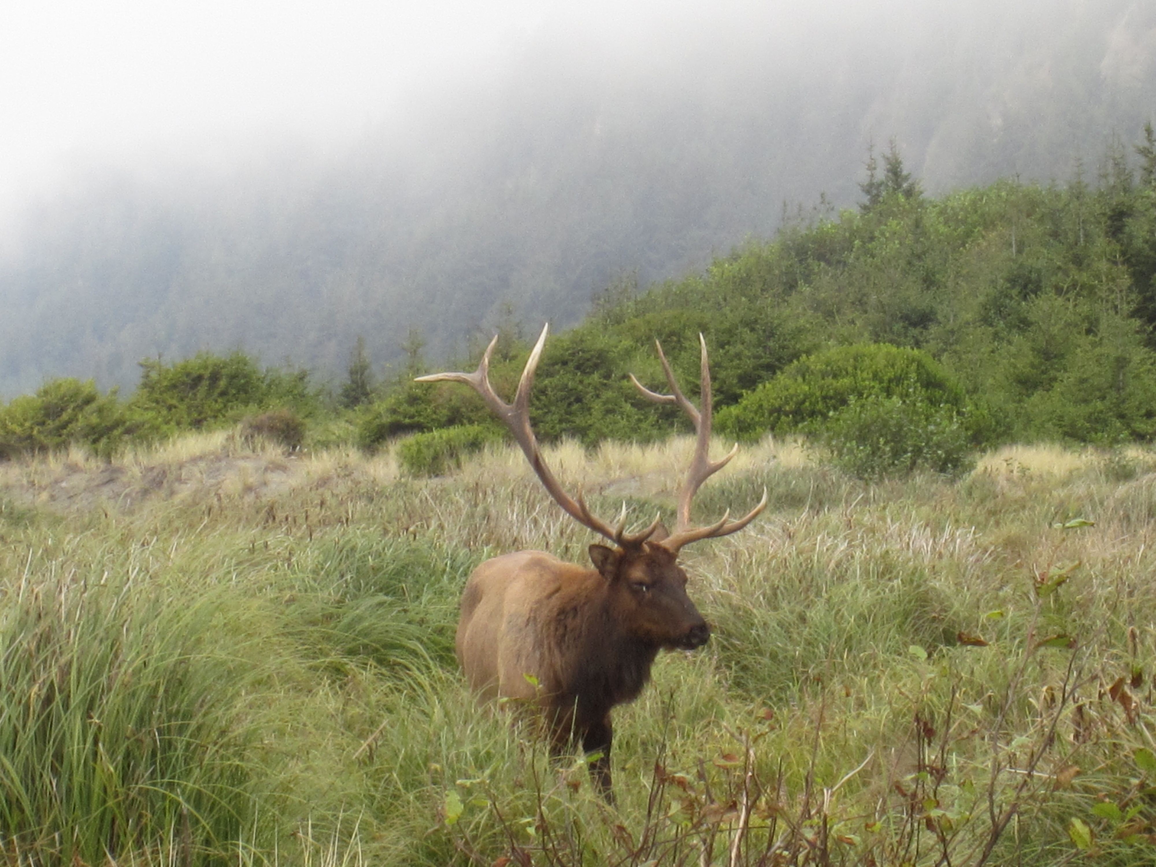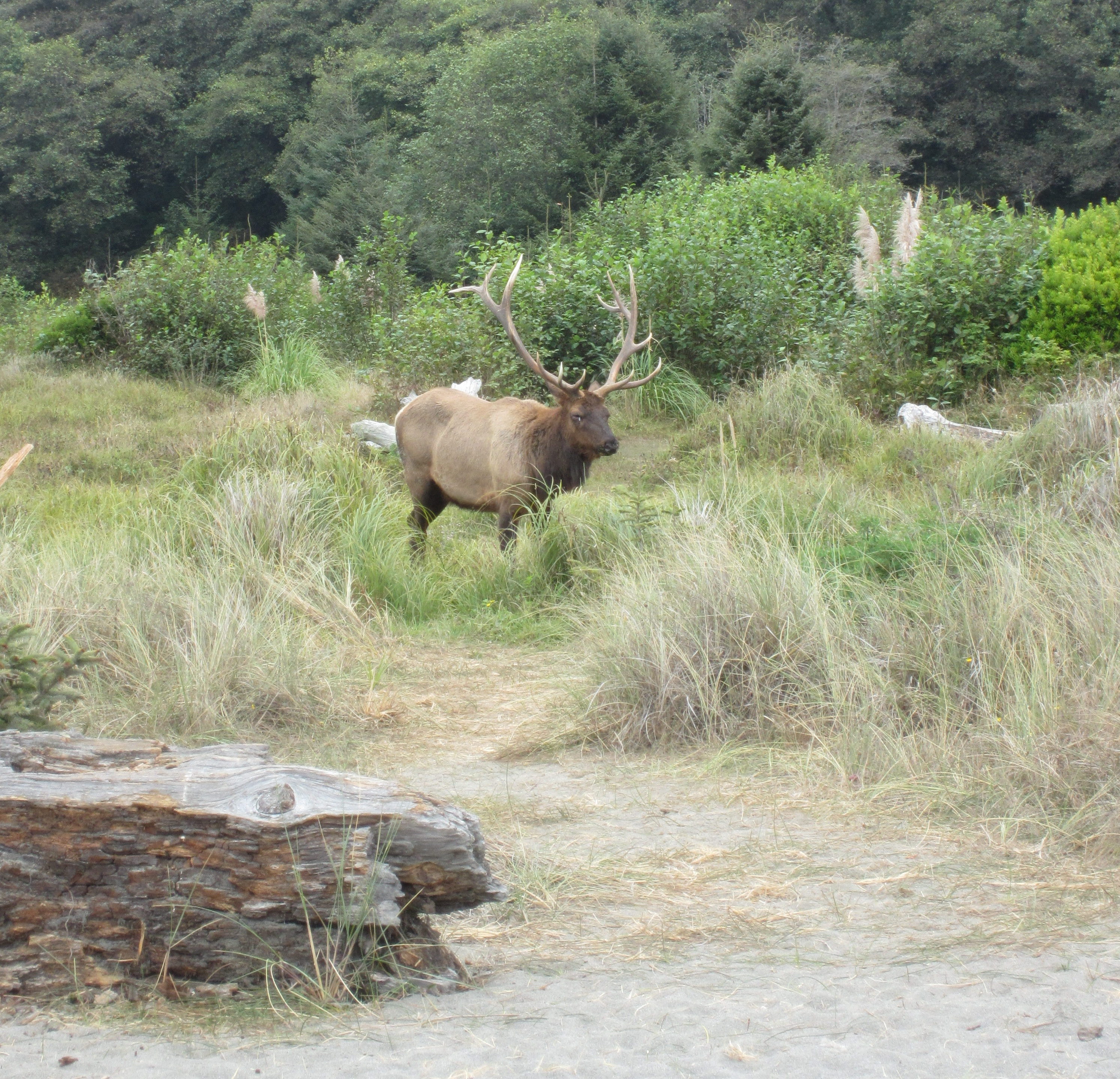 One of our favorite trails was Fern Canyon, which was in Prairie Creek State Park. It’s a popular trail because Jurassic Park 2: Lost World was filmed there, but the trail is so beautiful it’s worth the crowds! We combined it with a portion of the James Irvine Trail & walked along the beach, which is where we literally ran into a bull elk.