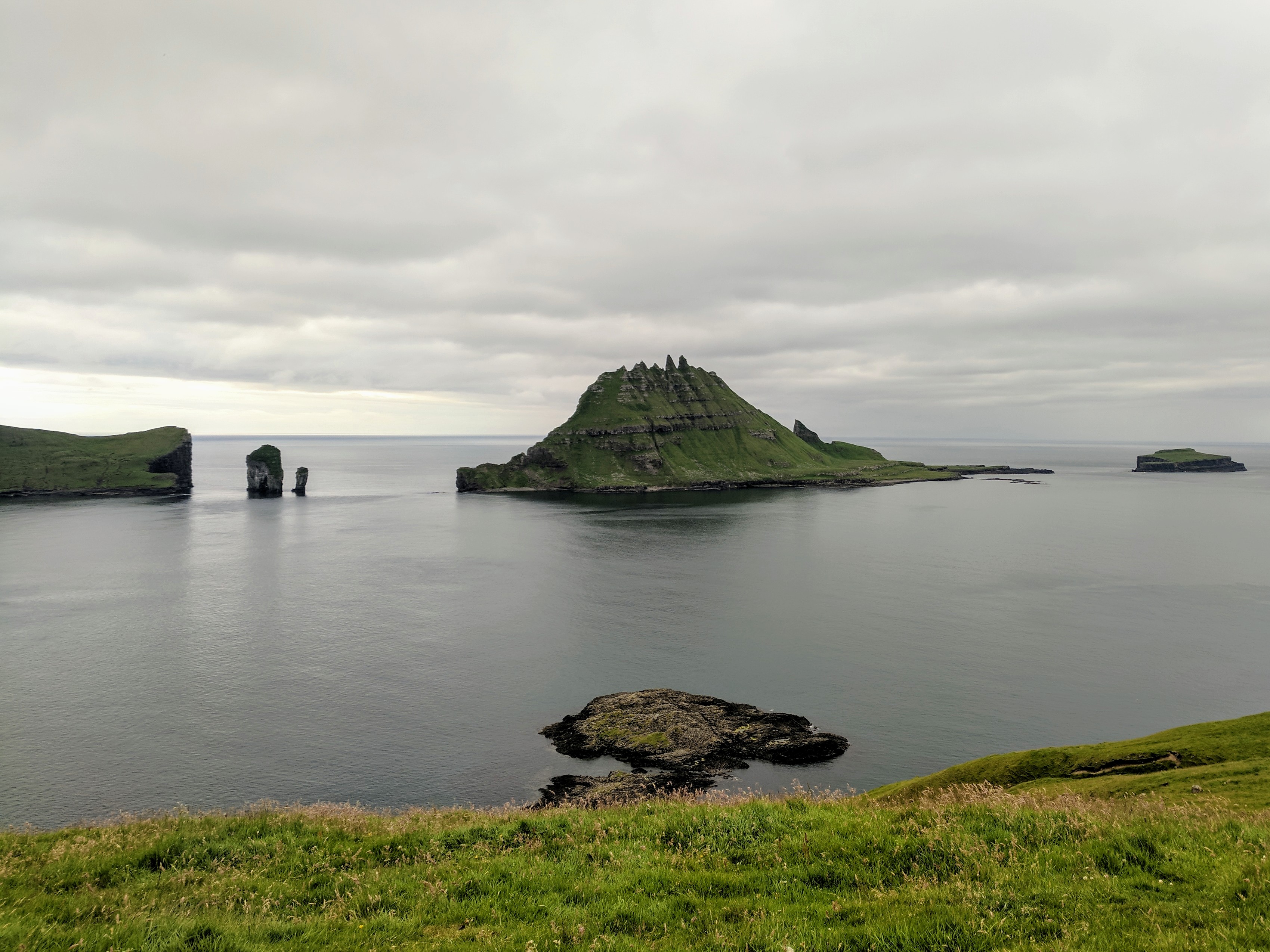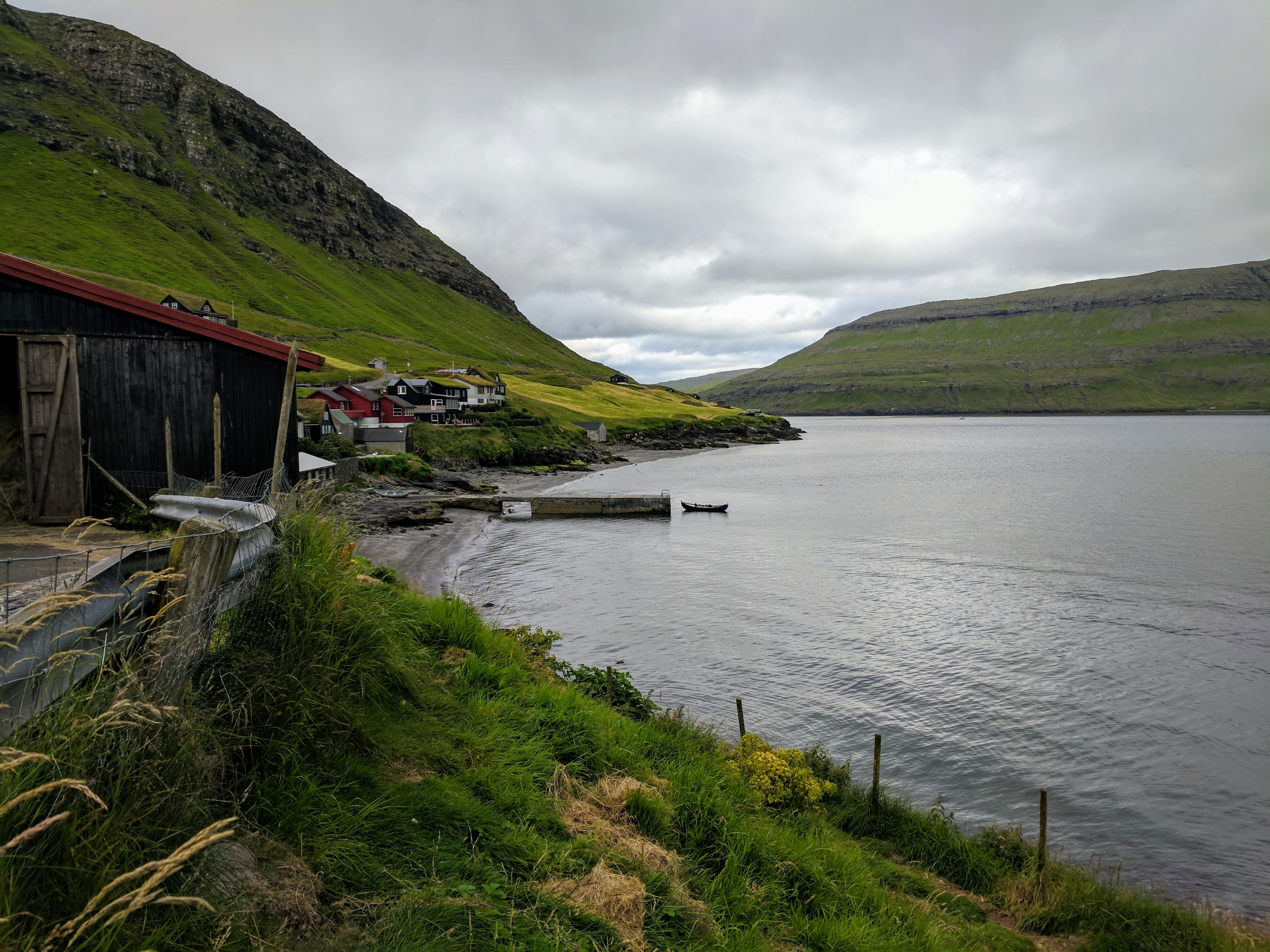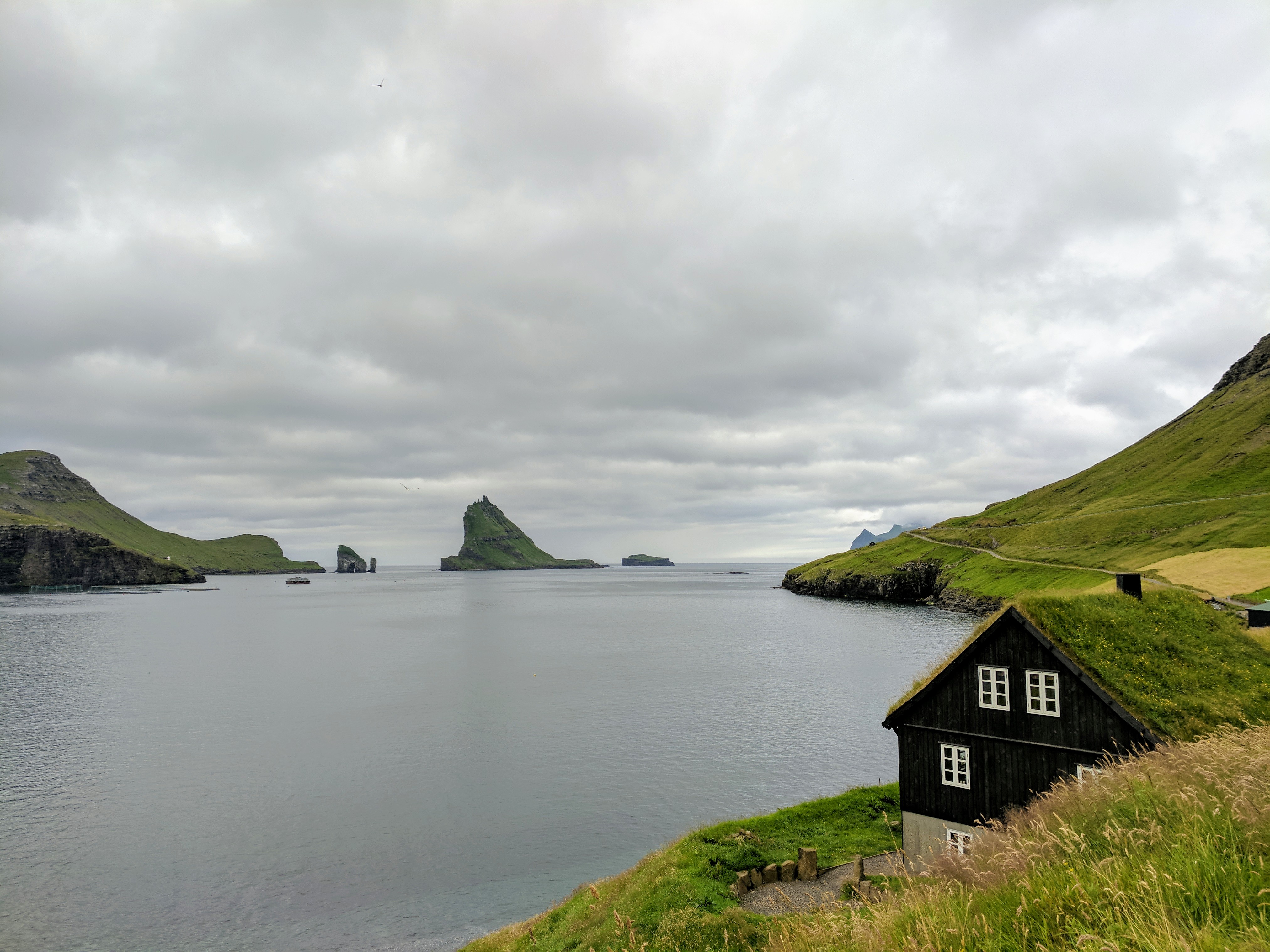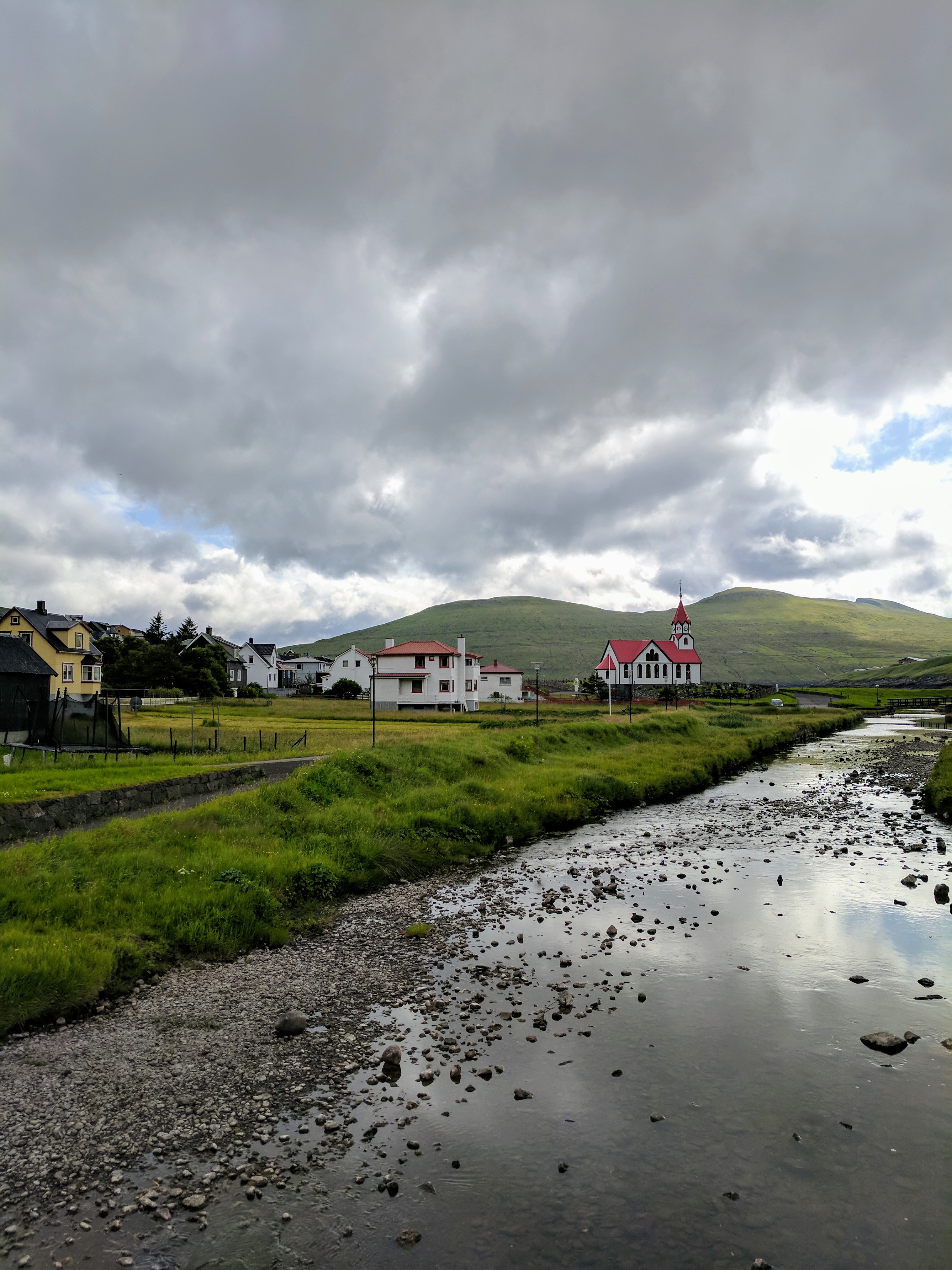 There is literally one main road that connects the six villages on Vágar. You can’t get lost, unless you don’t know your East from your West. So despite this being our first time driving outside the US, we had no issues getting where we needed to be. We spent our first two nights at an AirBnB in Sandavágur, which had a gregarious hostess named Tom. She had a scrapbook of suggested restaurants and things to do on the island, a Spotify playlist of Faroese music, first-aid kits and reflectors (for hiking in fog), movies, books, a fully stocked kitchen, and WASHCLOTHS! We had a beautiful view of the water and village, which had one of the prettiest churches in the Faroes. The church was fairly new (built in 1917) but it had a large rune stone from the year 1200 that translated to “Torkil son of Onundar, man of the East from Rogaland, lived in this place first.” If I ever get to write a Viking romance novel, I think Torkil might just make an appearance.
