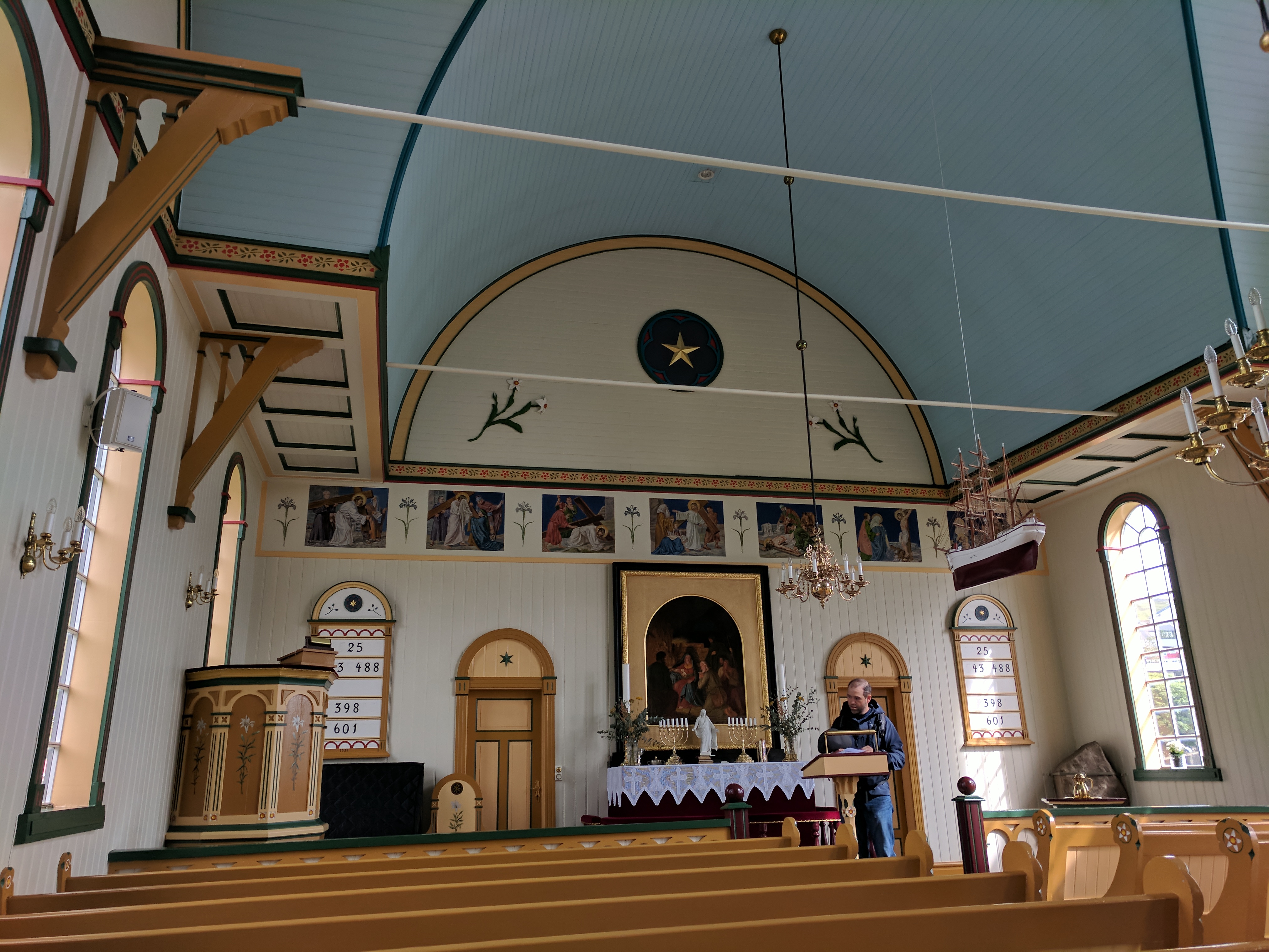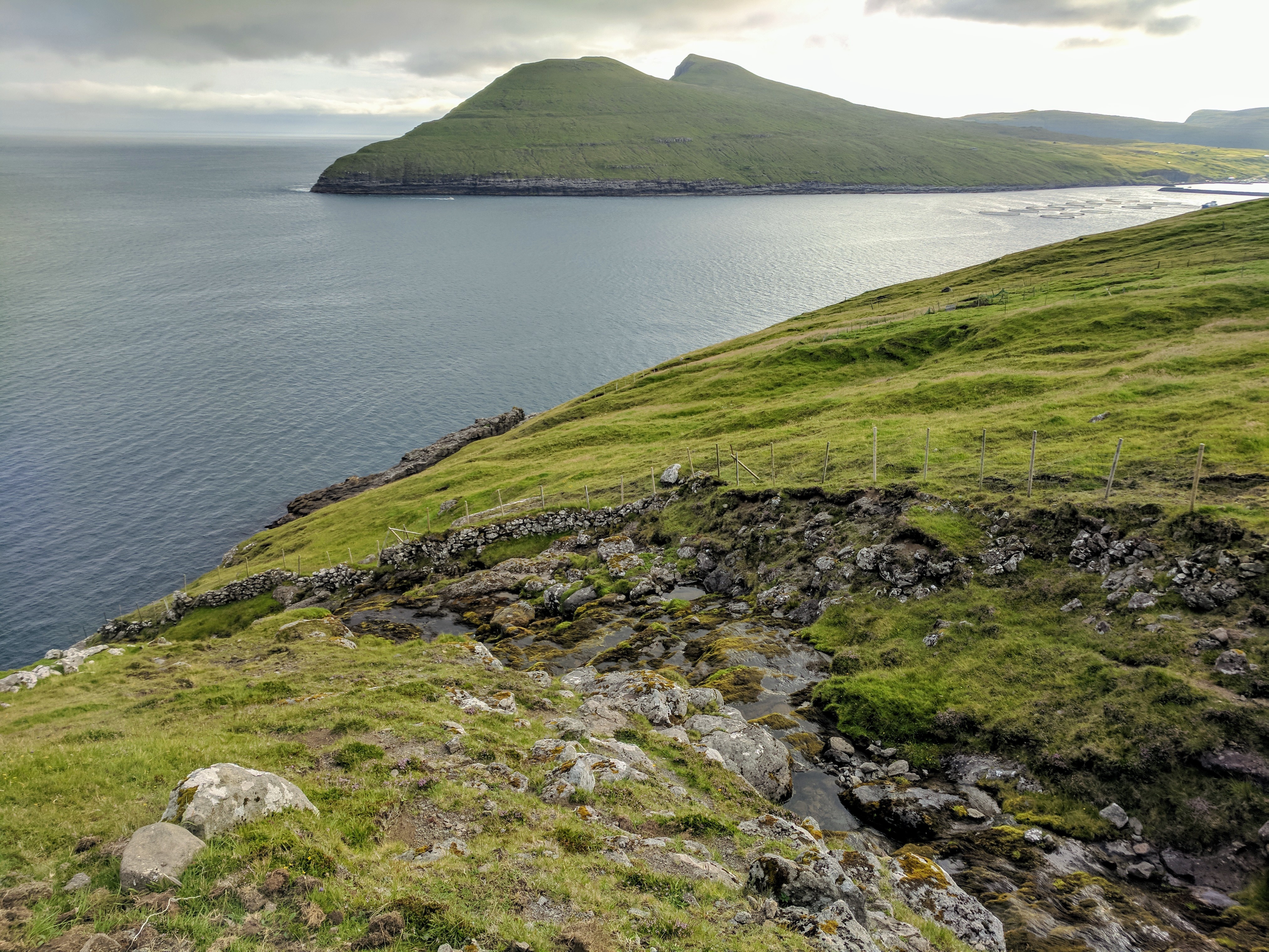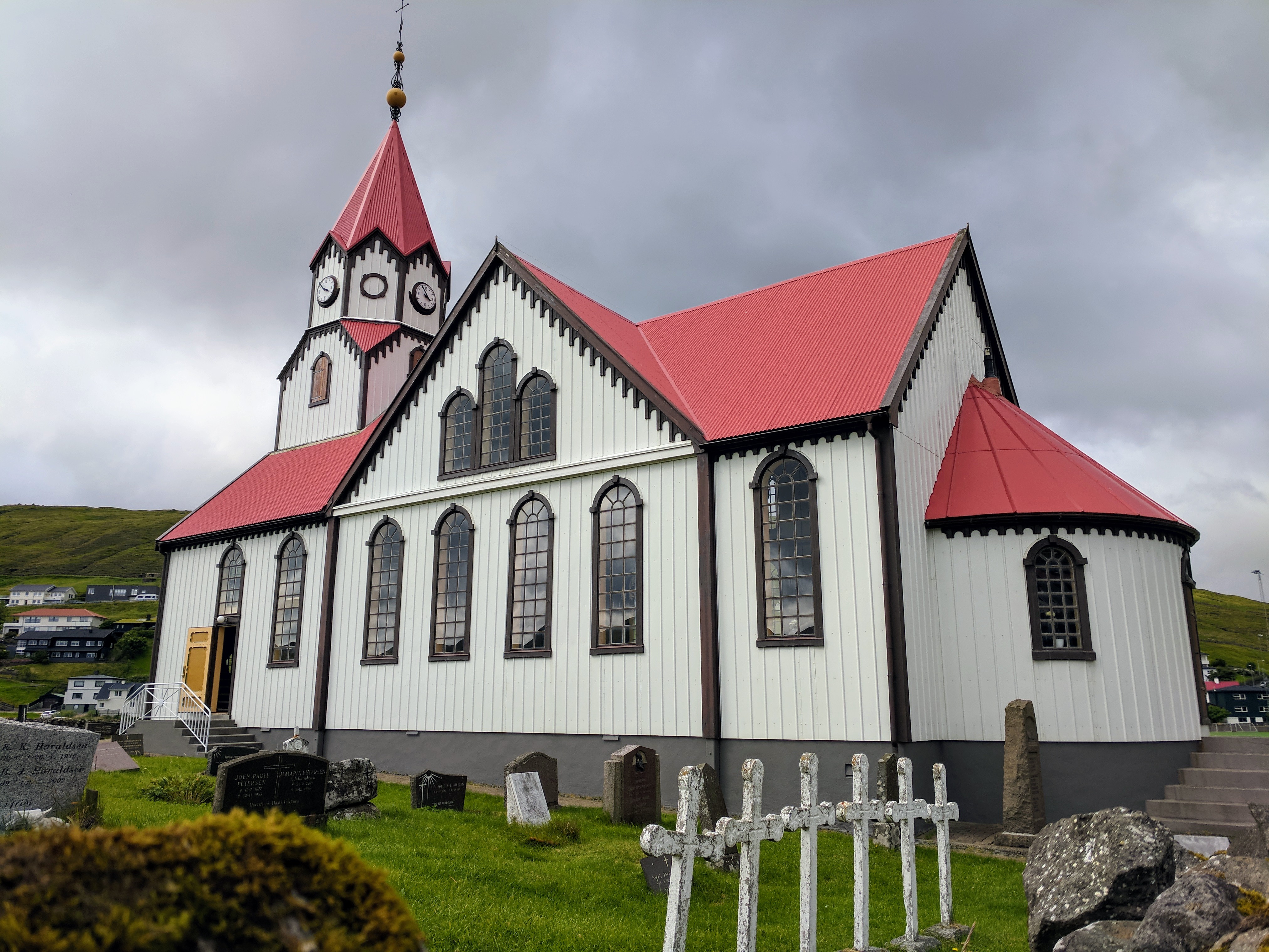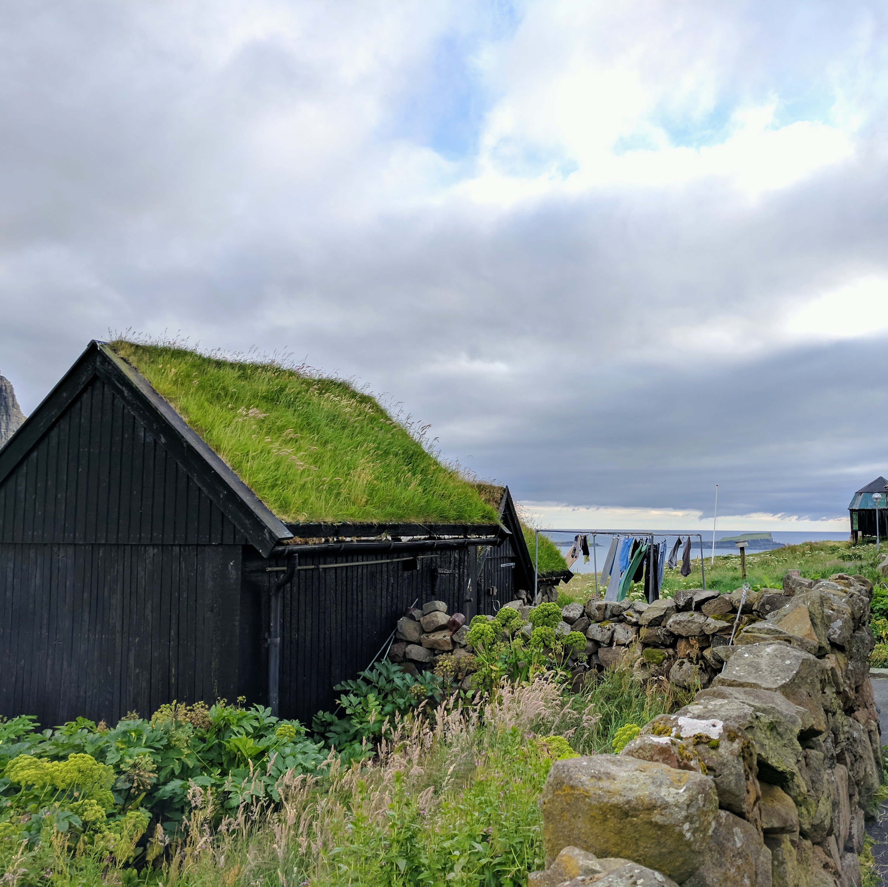 There is literally one main road that connects the six villages on Vágar. You can’t get lost, unless you don’t know your East from your West. So despite this being our first time driving outside the US, we had no issues getting where we needed to be. We spent our first two nights at an AirBnB in Sandavágur, which had a gregarious hostess named Tom. She had a scrapbook of suggested restaurants and things to do on the island, a Spotify playlist of Faroese music, first-aid kits and reflectors (for hiking in fog), movies, books, a fully stocked kitchen, and WASHCLOTHS! We had a beautiful view of the water and village, which had one of the prettiest churches in the Faroes. The church was fairly new (built in 1917) but it had a large rune stone from the year 1200 that translated to “Torkil son of Onundar, man of the East from Rogaland, lived in this place first.” If I ever get to write a Viking romance novel, I think Torkil might just make an appearance.