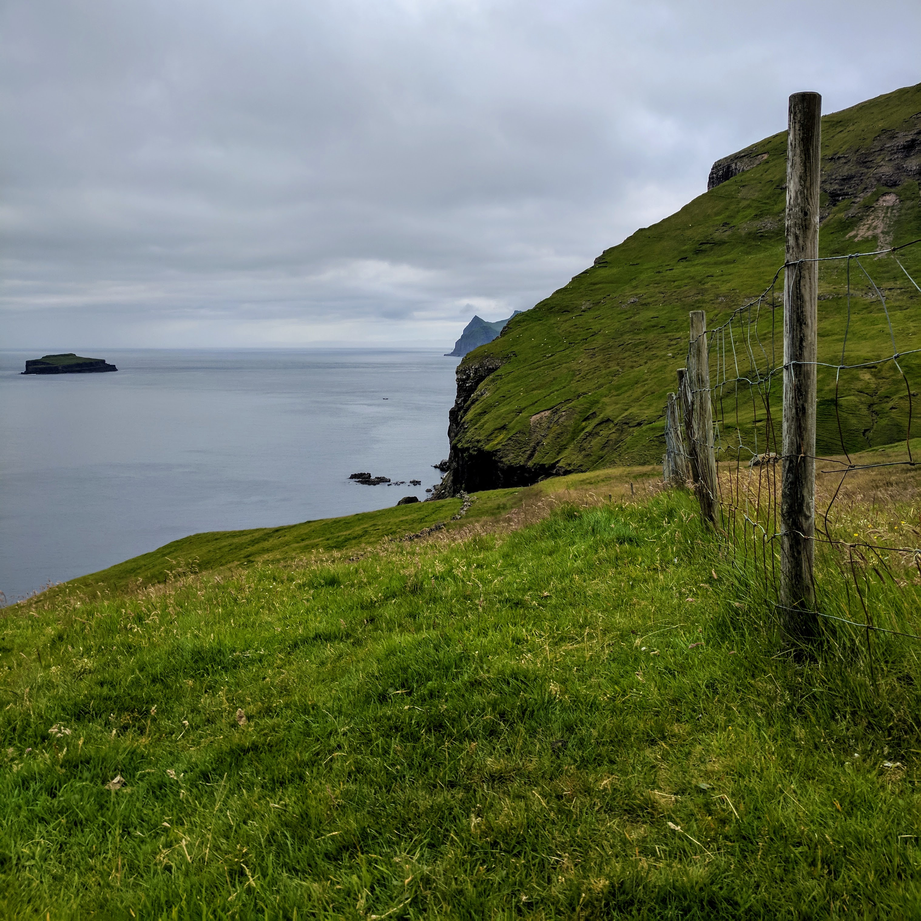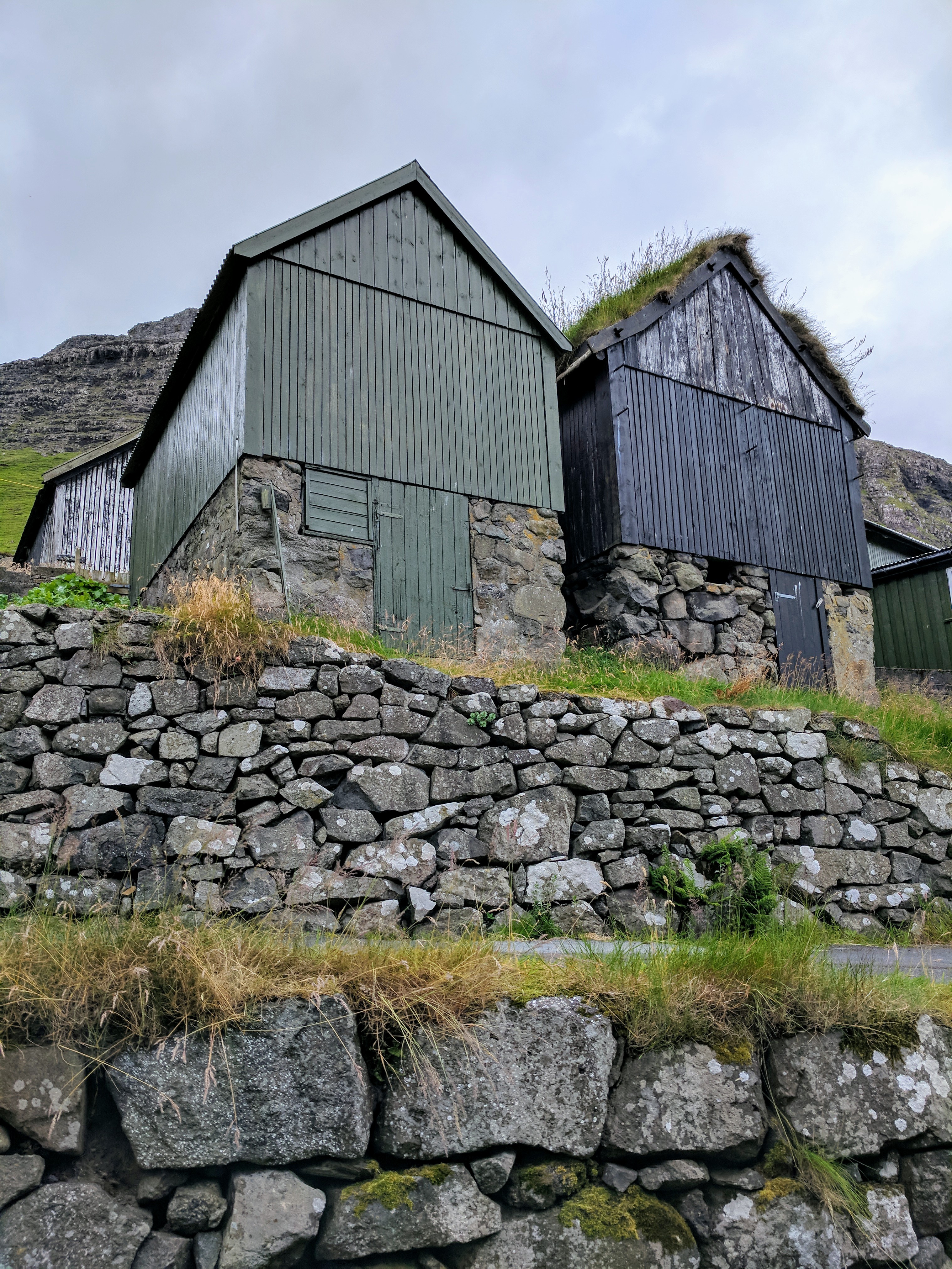 For our second day on Vágar, we attempted to hike from Bøur to Gásadalur. According to the Hiking in the Faroe Islands guidebook, which is freely available online, this hike was only supposed to be 3.5km and was described as “Moderate to Difficult” and “steep and difficult to climb.” The Faroese are apparently not prone to exaggeration, because that was truly an apt description. We didn’t realize just how difficult it would be, and in our naivete we added an additional 4.5km by starting our walk from town (rather than the trailhead). In hindsight, I’m glad we did because the walk from Bøur offered magnificent views of the islands Tindhólmur and Gáshólmur and the Drangarnir sea stacks. Plus, the town of Bøur was beautiful and deserved a leisurely stroll.