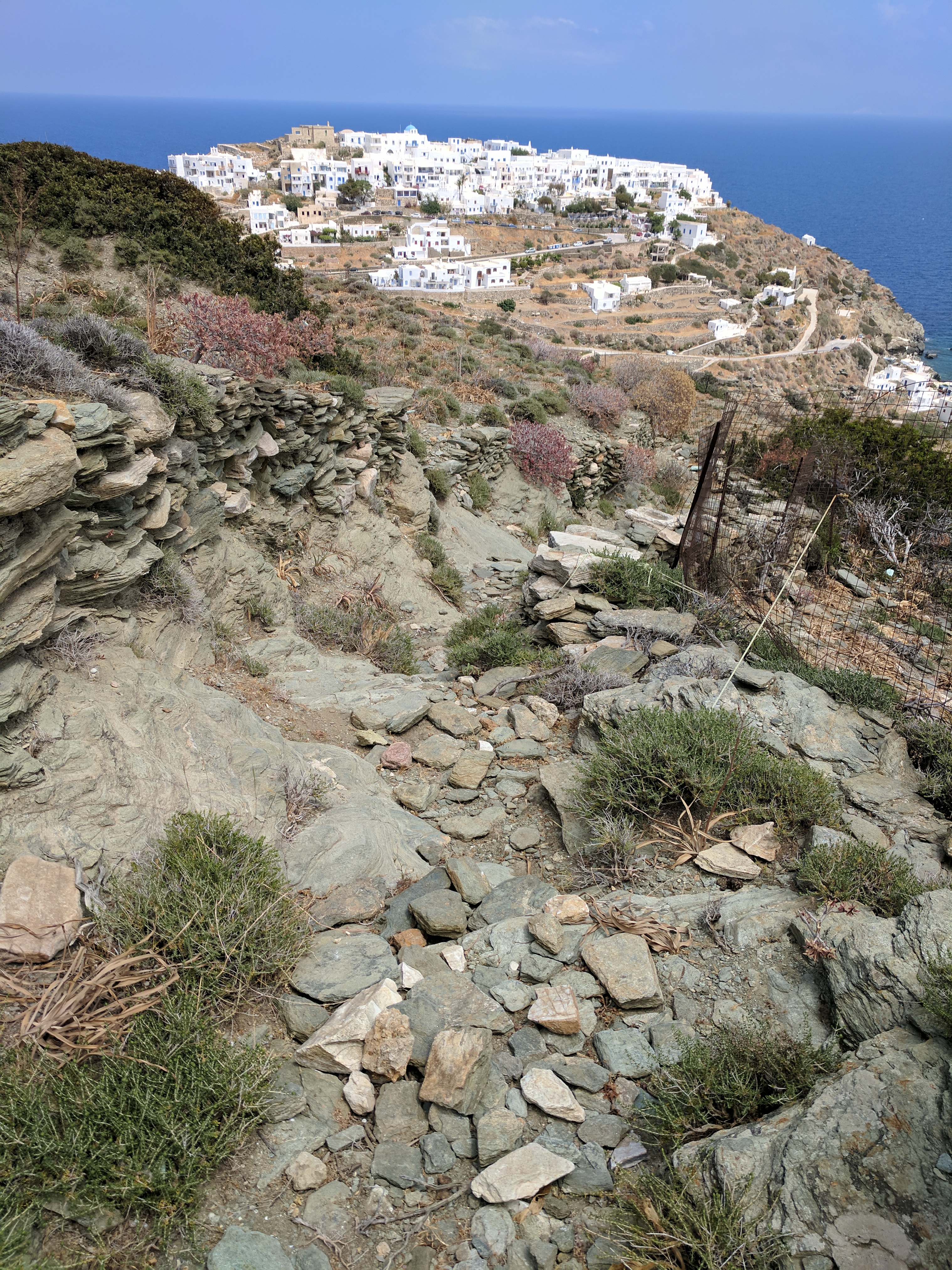 As mentioned in a previous post, the Sifnos Trails app makes it easy to navigate these well-maintained trails. Each trail has waymarkers & if you download the trail data while you still have WiFi, the app will follow along with you on the trail (might want to bring a portable phone charger if you plan on using the app all day). We rarely used the app, & when we did it was usually out of curiosity as to how much further we had. The trails are so well marked you really don’t need the app if you have a good sense of direction and a map. There are also plenty of unmarked paths to explore & maps at the local bookstore to help you discover them. Our lodging provided a topographical map, so you may want to ask before purchasing one. With over 100km of trails & only six days on the island, we didn’t have time to walk all of the trails but what we DID walk left us speechless. The next few posts will be about the trails we walked…