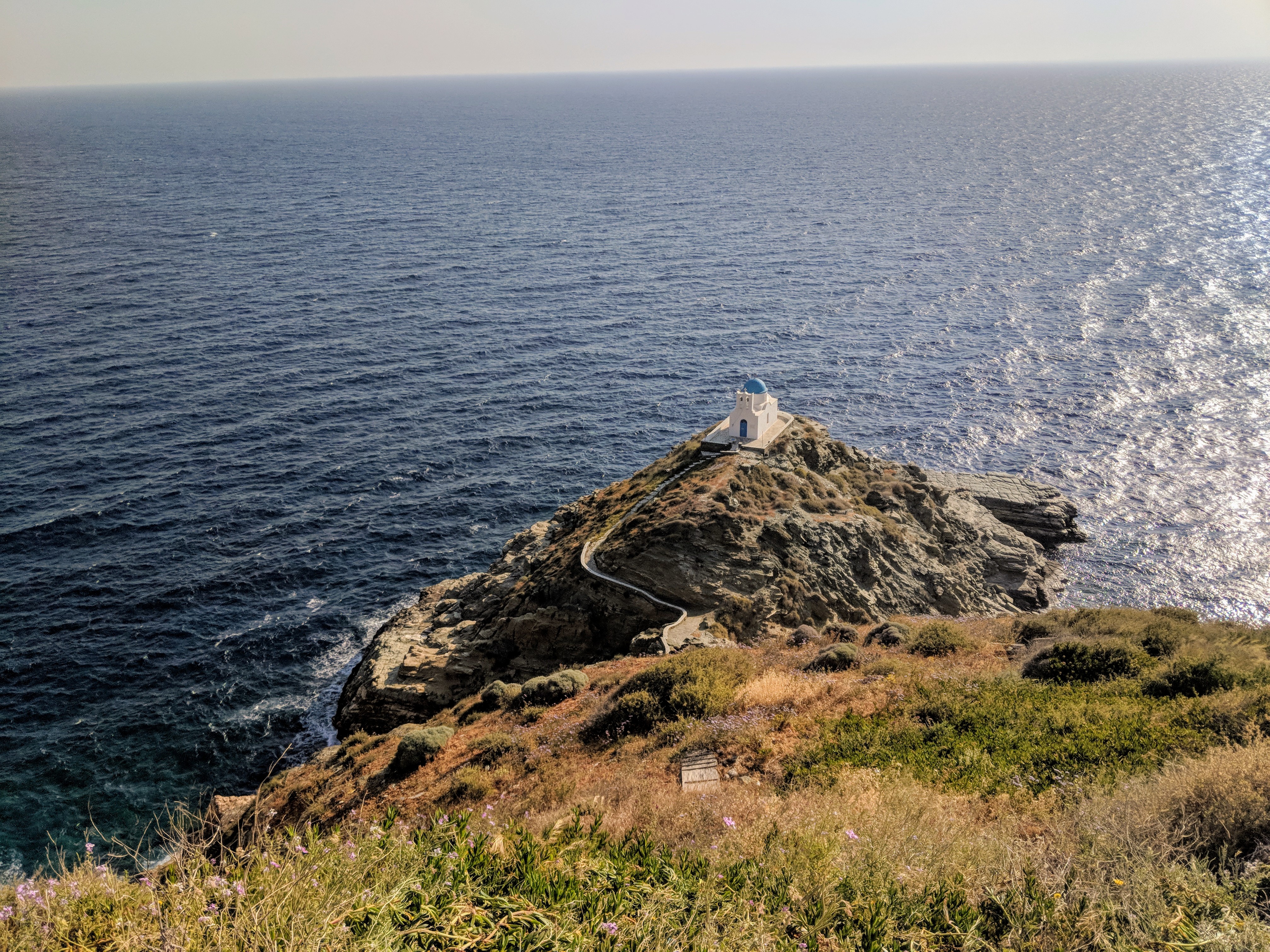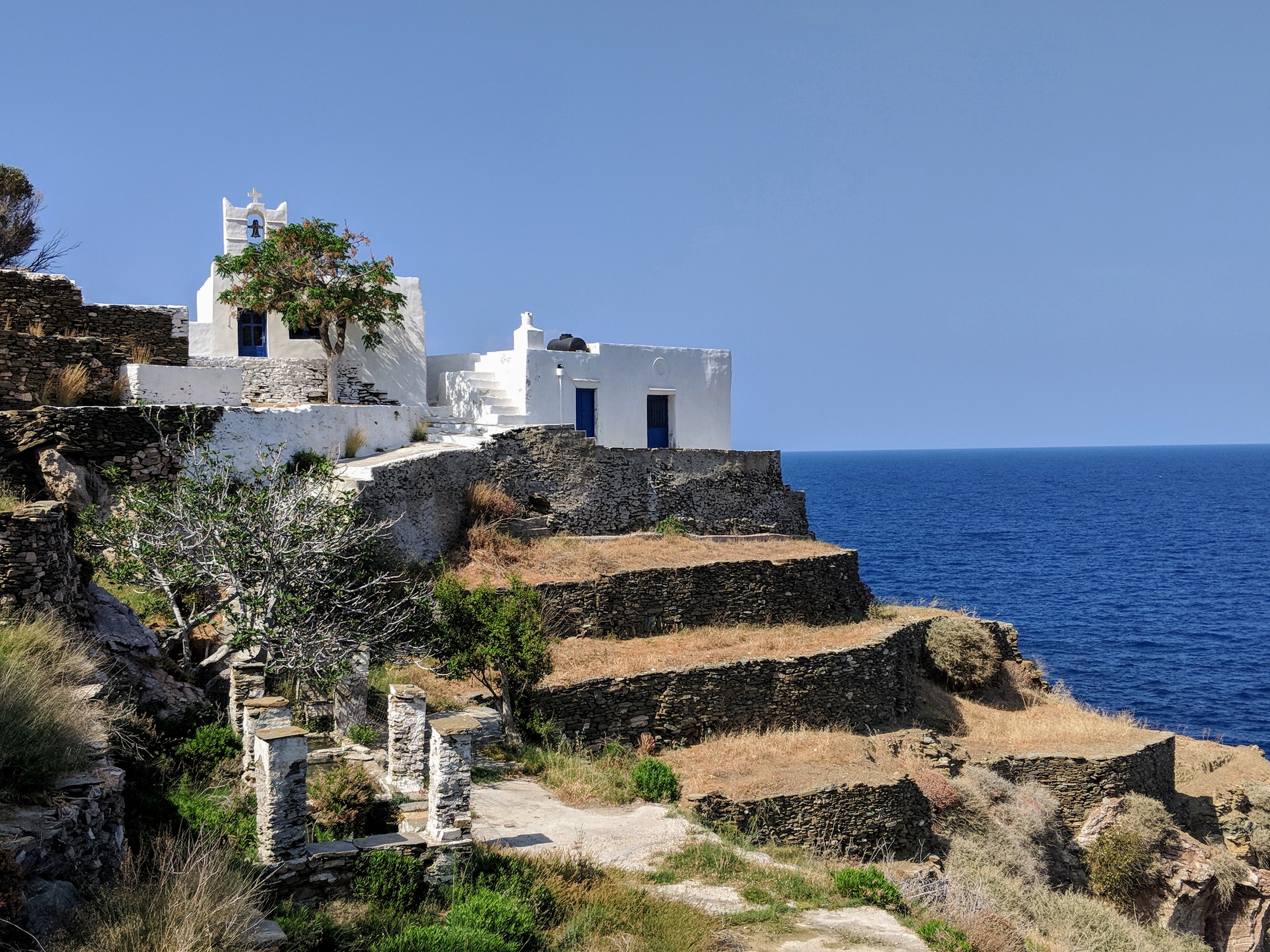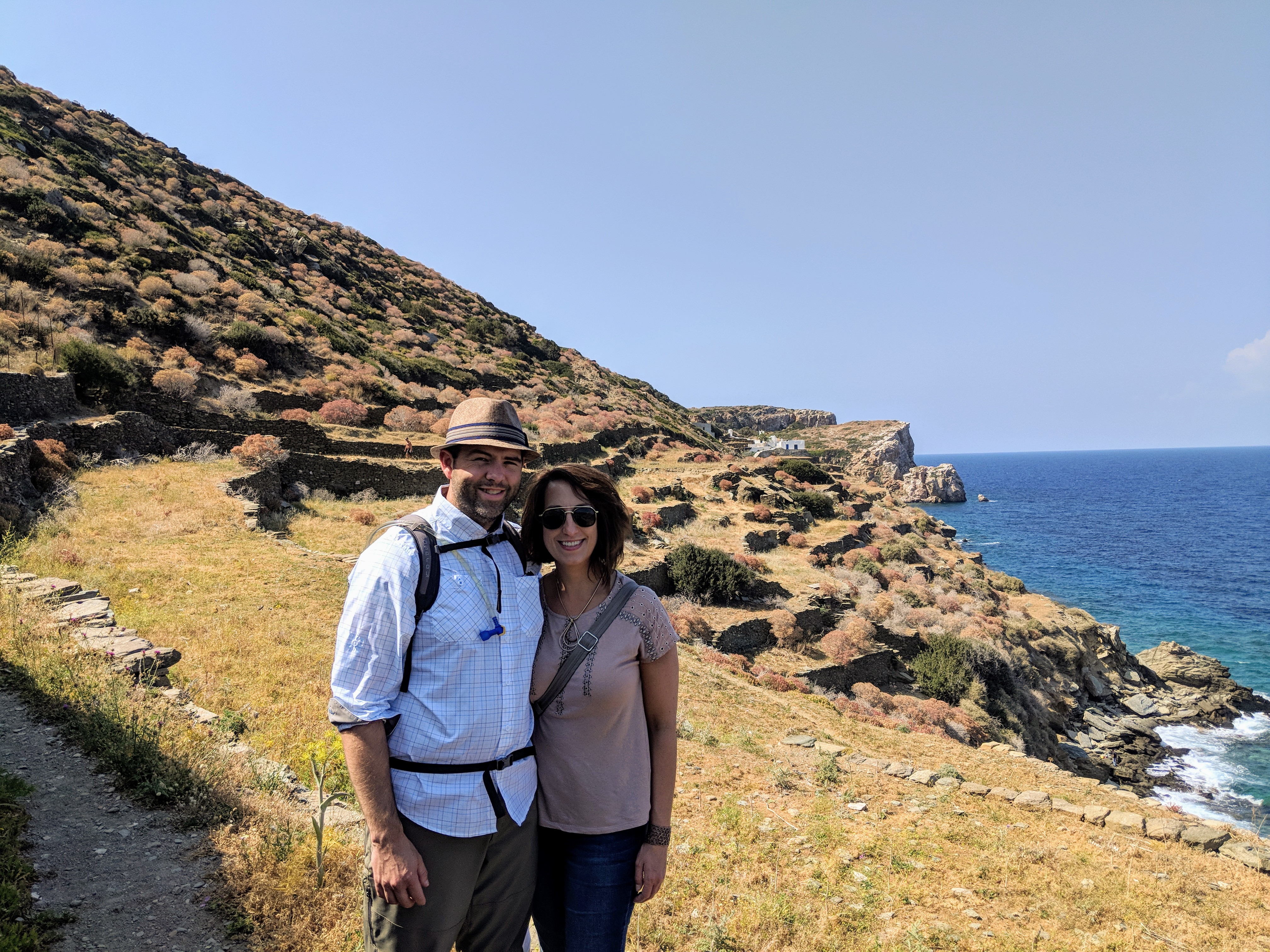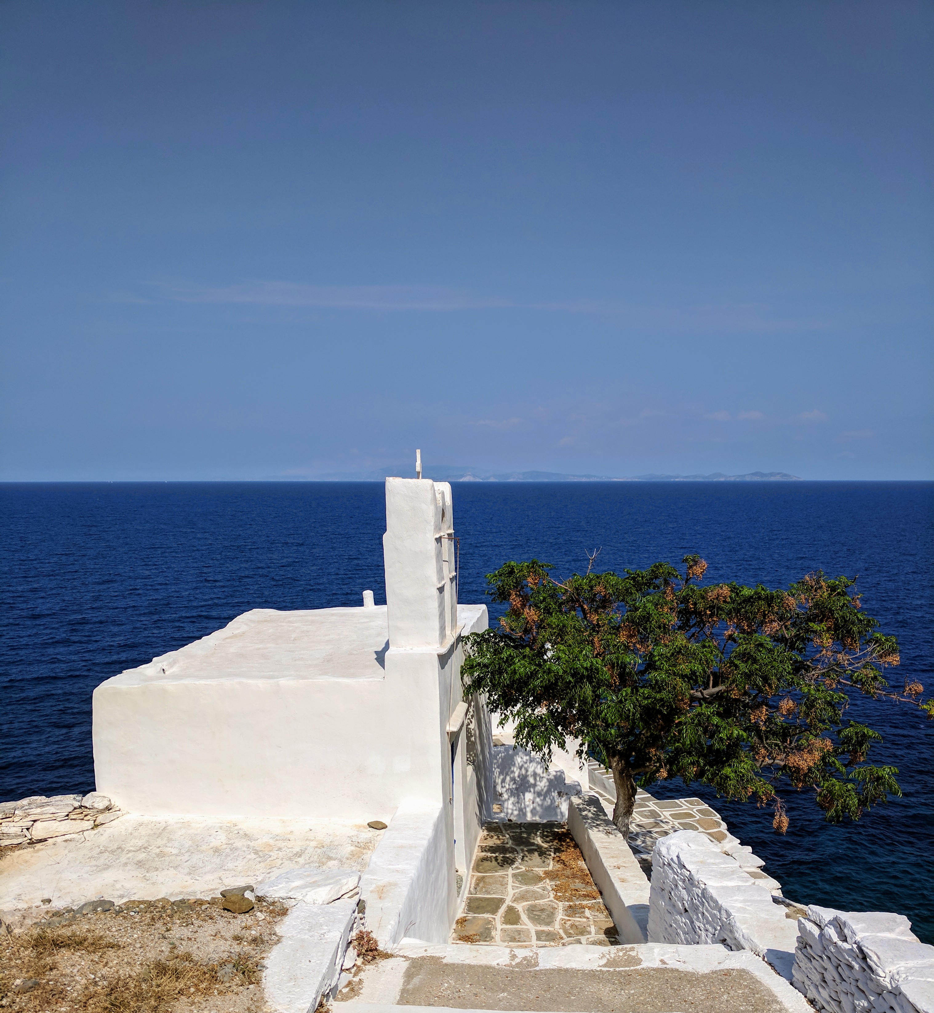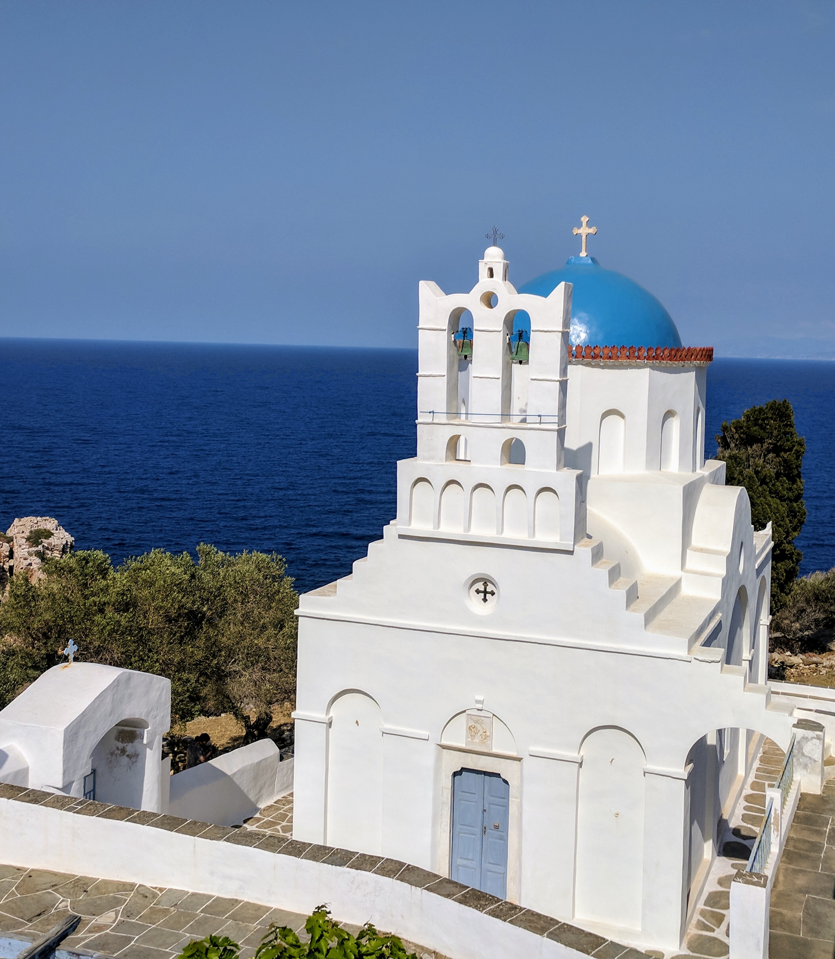 From Kastro, we began walking north along the coastline (still on Trail 1). The views were beautiful, the path was relatively easy, & the Panagia Poulati monastery (which marked the endpoint of the coastal portion) was lovely. Our favorite part of the hike was the secluded cove just past the monastery — a steep walk down but well worth the views!