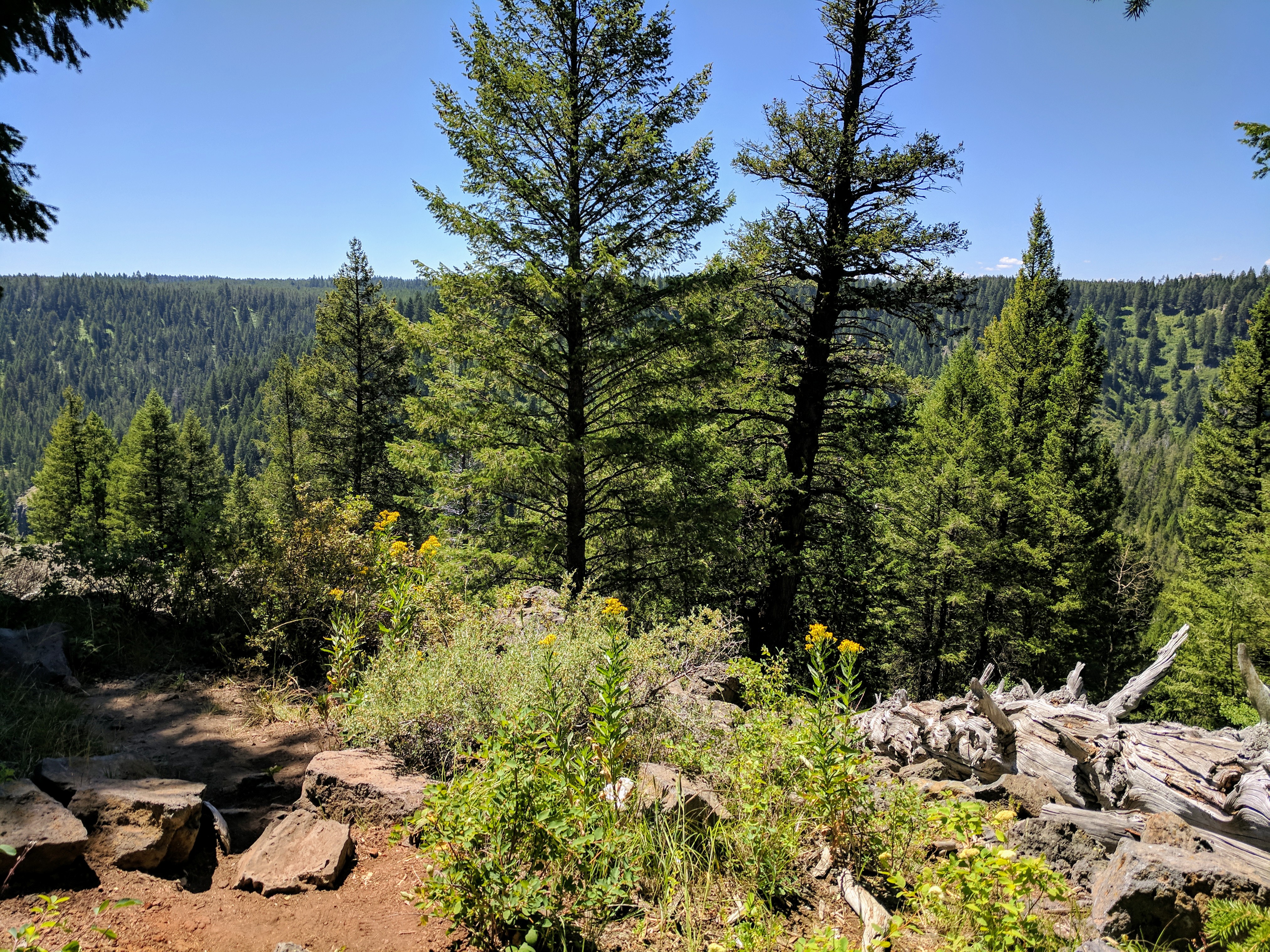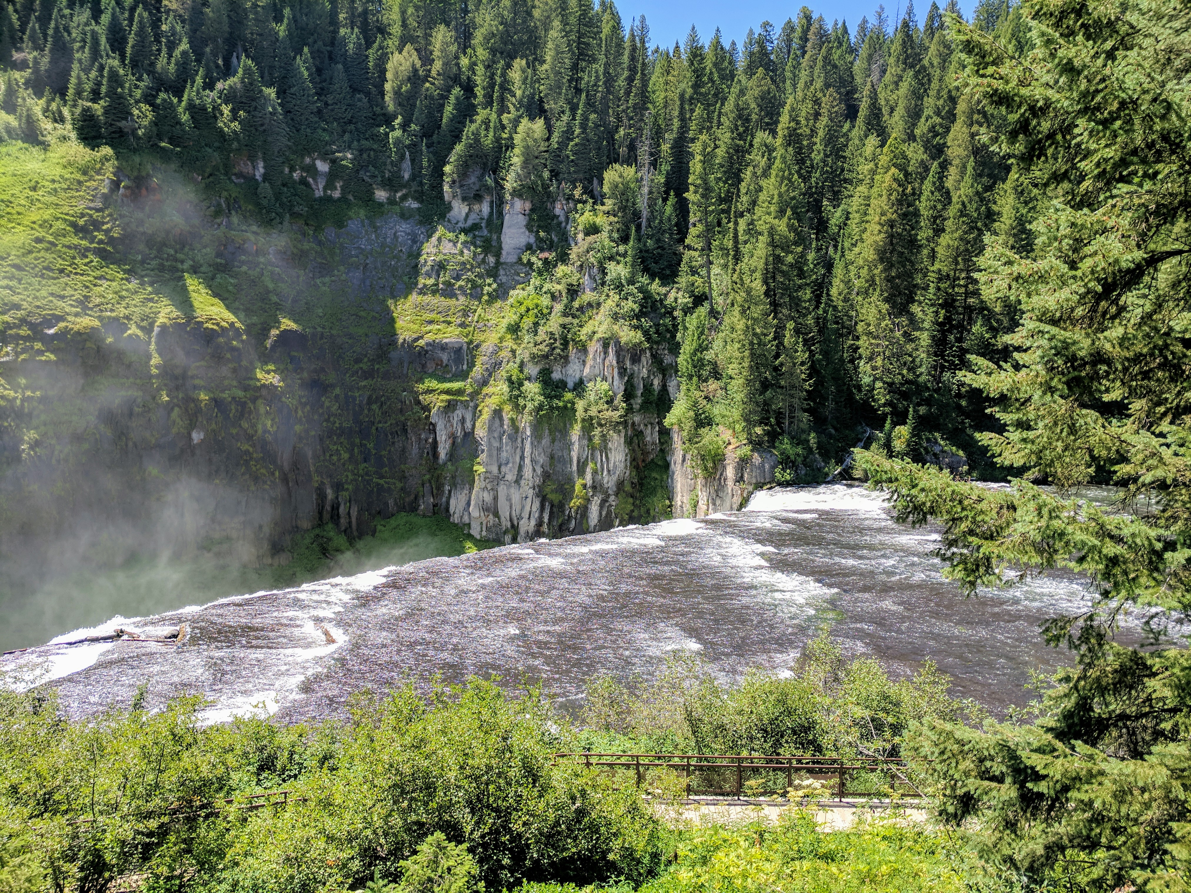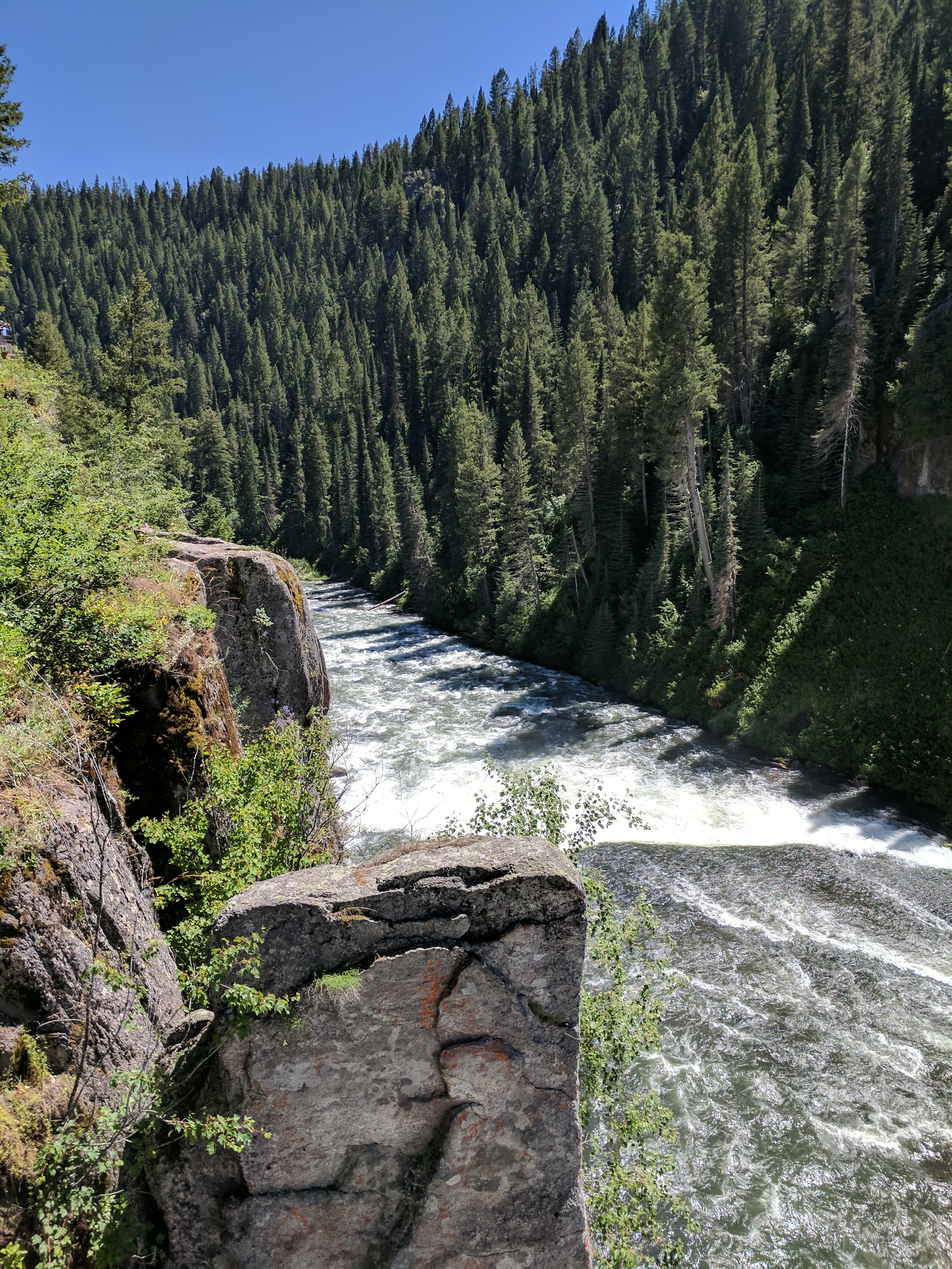 We continued heading north & took scenic byway Highway 47 from Ashton to Mesa Falls. If we had more time, I would have loved to stop in Idaho Falls, which looked like a beautiful town with plenty of great dining options & walking paths along the Snake River. But Mesa Falls was our top priority & was well worth the detour. It’s part of the Caribou-Targhee National Forest ($5 fee). This was a family trip, so we did very little hiking. Instead of taking the Mesa Falls Nature Trail (a 2.2mi route from Upper Falls to Lower Falls), we opted for the Upper Mesa Falls Boardwalk Trail. The boardwalk trail was a .6mi handicap accessible route with GORGEOUS views of the falls! We also stopped at a neat little junction called Warm River to feed trout & watch people fly fish.