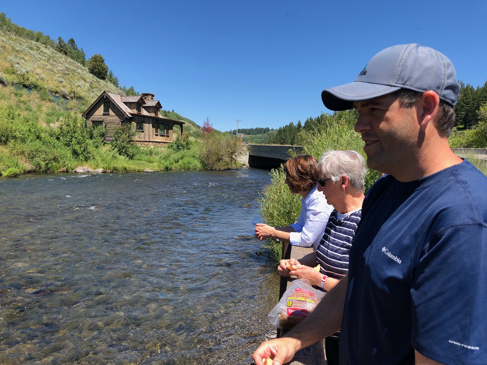 Feeding fish at Warm River