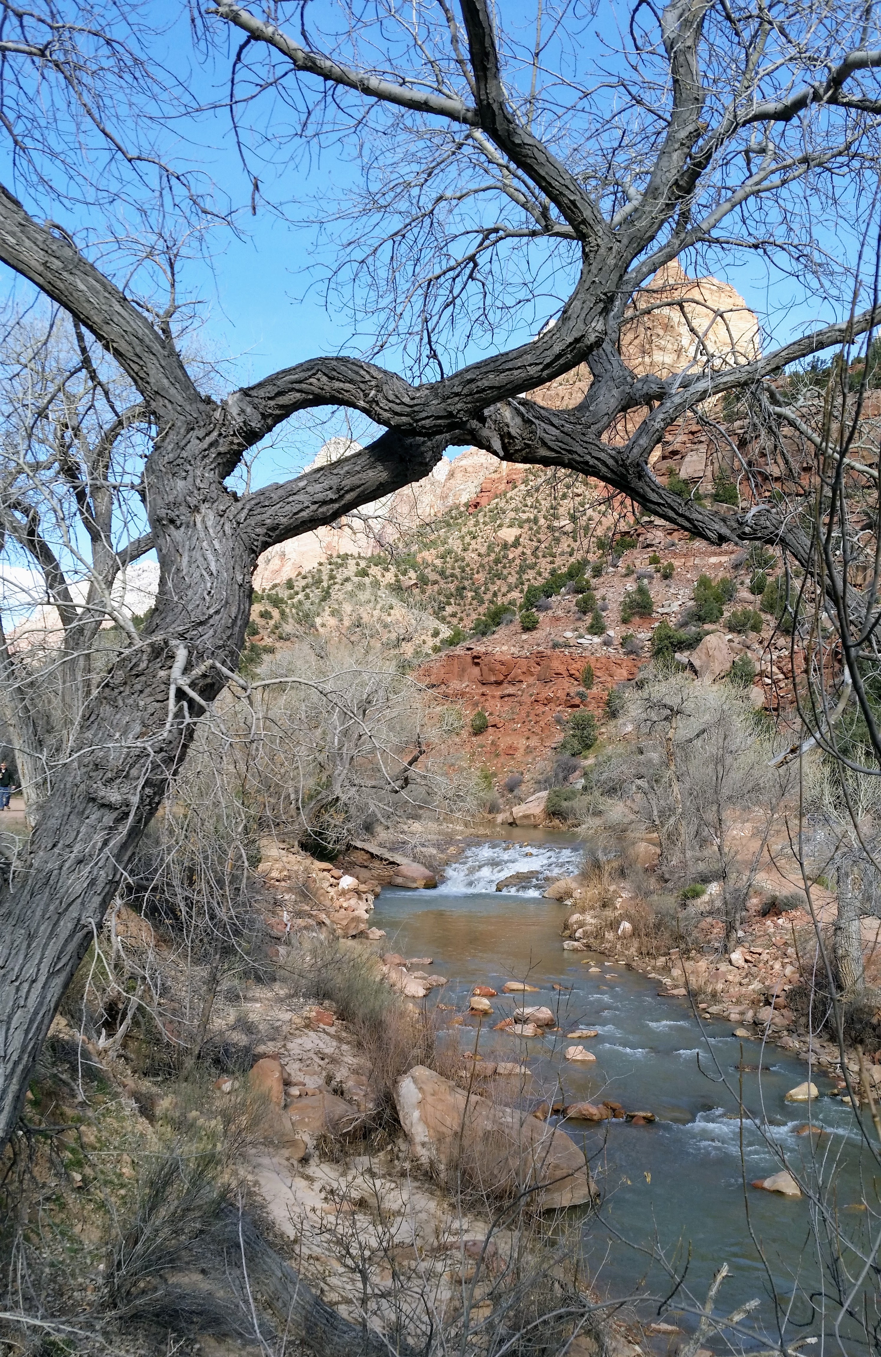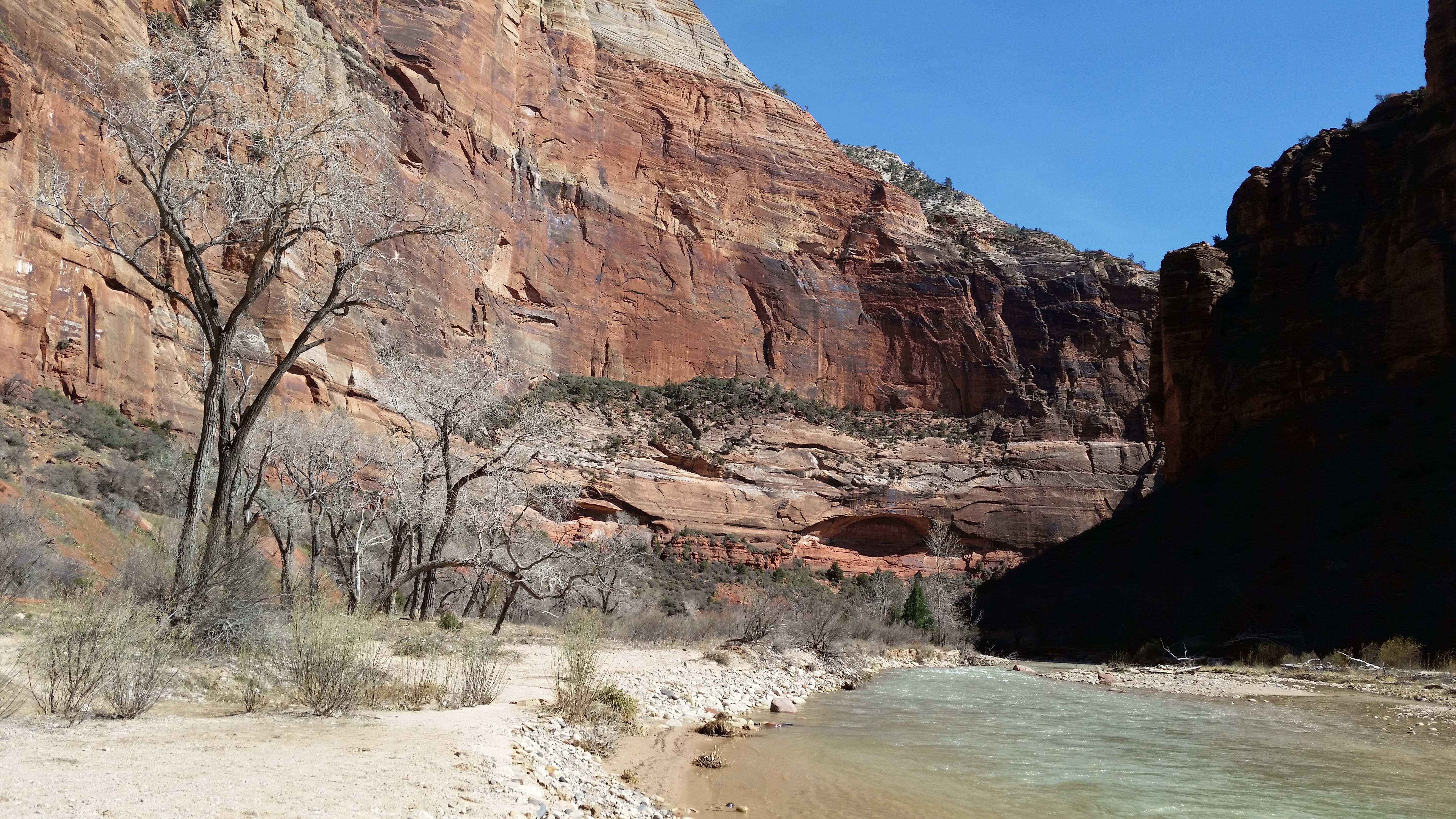 This was a very short trip so we only had two days for hiking. In retrospect, I wish we had saved this park until we had a full week to enjoy it. A weekly pass to Zion National Park was $30/vehicle so we would have gotten more bang for our buck and there was certainly enough there to keep us busy for seven days! What I loved most about Zion (besides the natural beauty) was the free shuttle bus. In summer, the shuttles actually stop at Driftwood Lodge but I’m not sure I’d want to hike with the heat and the crowds. March was perfect and the shuttles still ran inside the park. I would definitely recommend going during the week, however. Even in March, the buses filled up by mid-afternoon on the weekend.